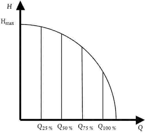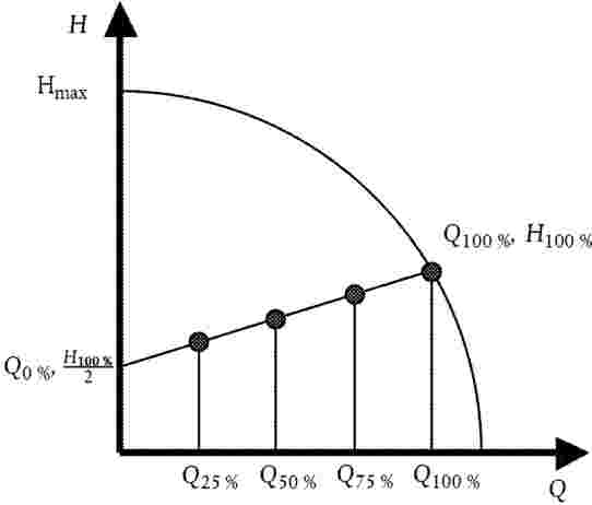 3. Határozzuk meg azt a pontot, amelyben Q·H maximális, és jelöljük az ebben a pontban érvényes térfogatáram- és szállítómagasság-értéket a következőképpen: Q100% és H100% .