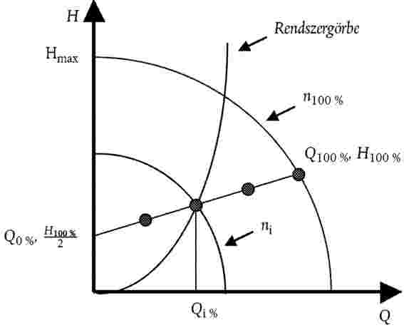 ahol Href a különböző térfogatáram-értékek mellett a szabályozási referenciagörbéről leolvasható szállítómagasság.