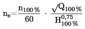 n100 % az adott üzemi körülmények között Q 100 % és H 100 % mellett érvényesülő percenkénti fordulatszám [rpm].