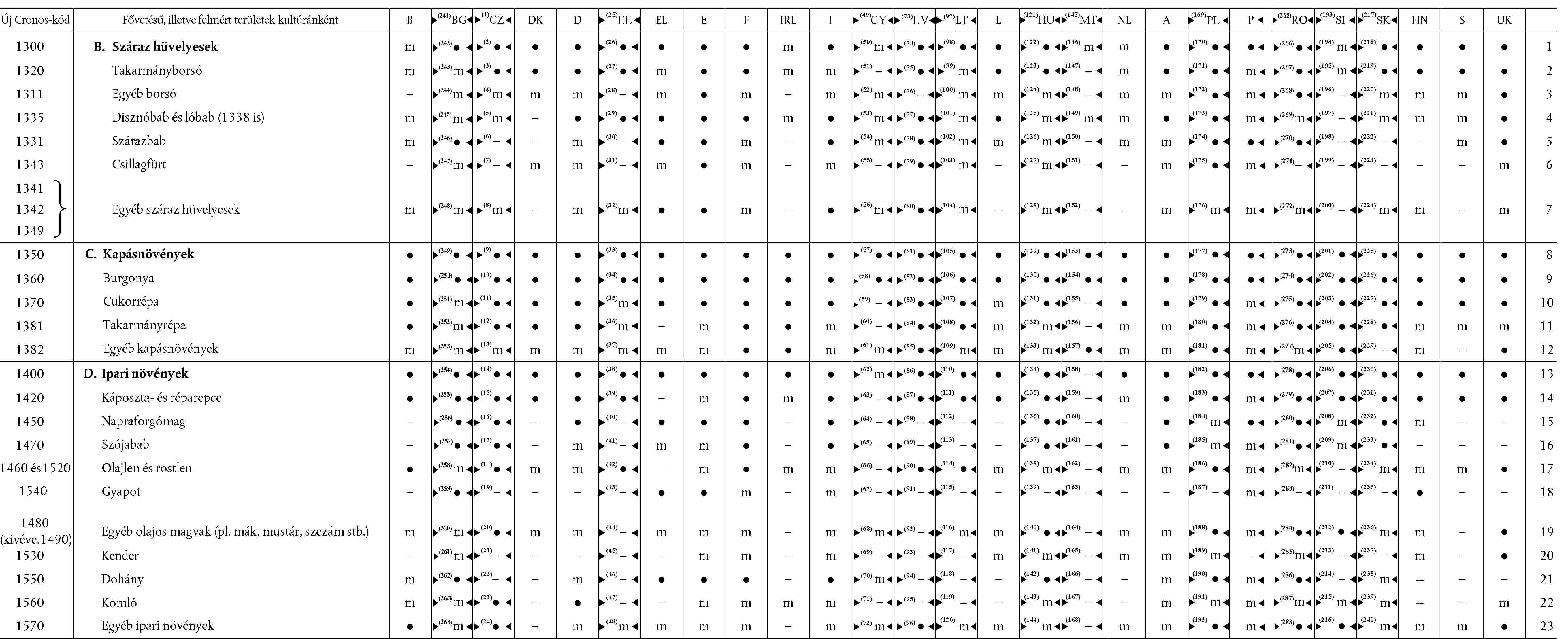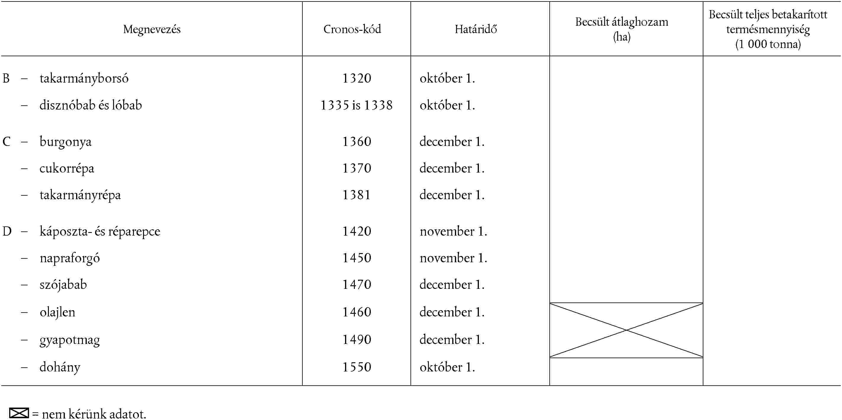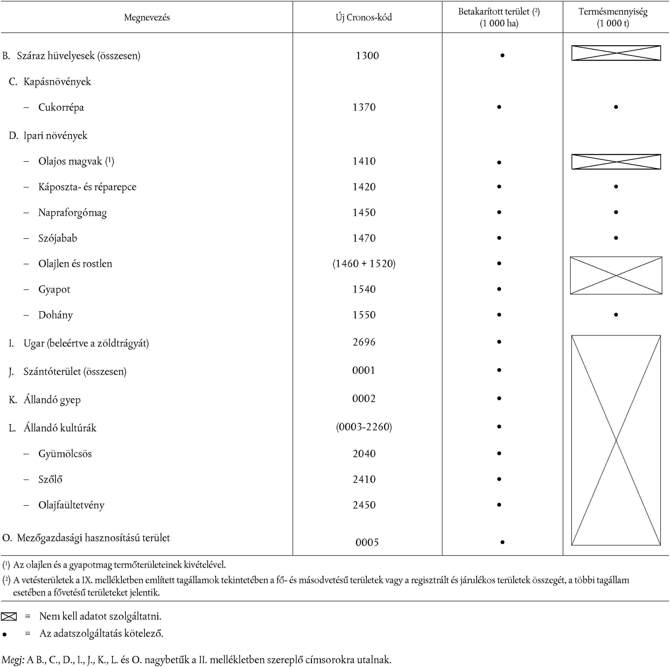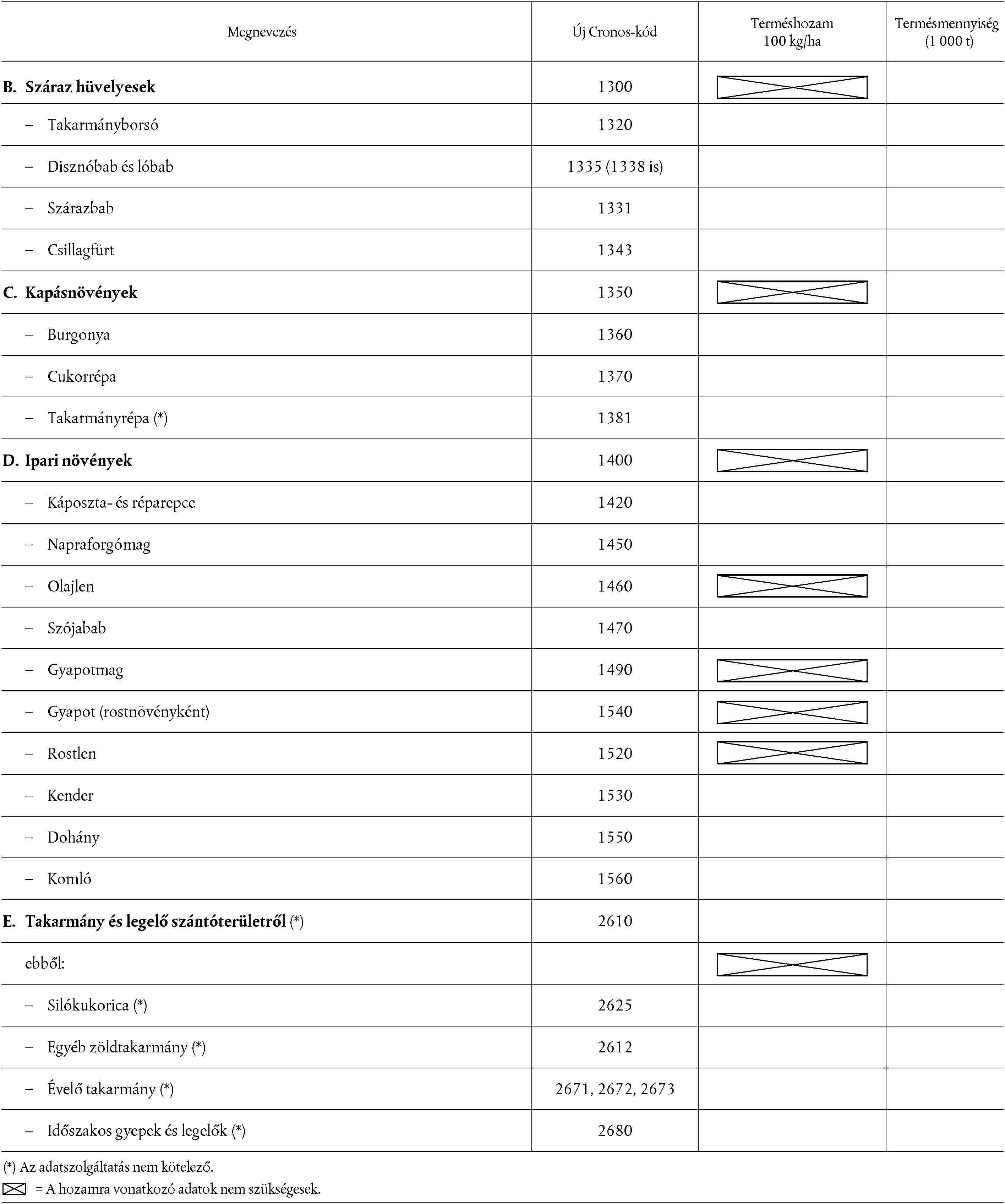 Megj.: A gabonafélékre és rizsre vonatkozó adatok már begyűjtésre kerülnek az 1990. március 26-i 837/90/EGK tanácsi rendelet szerint.