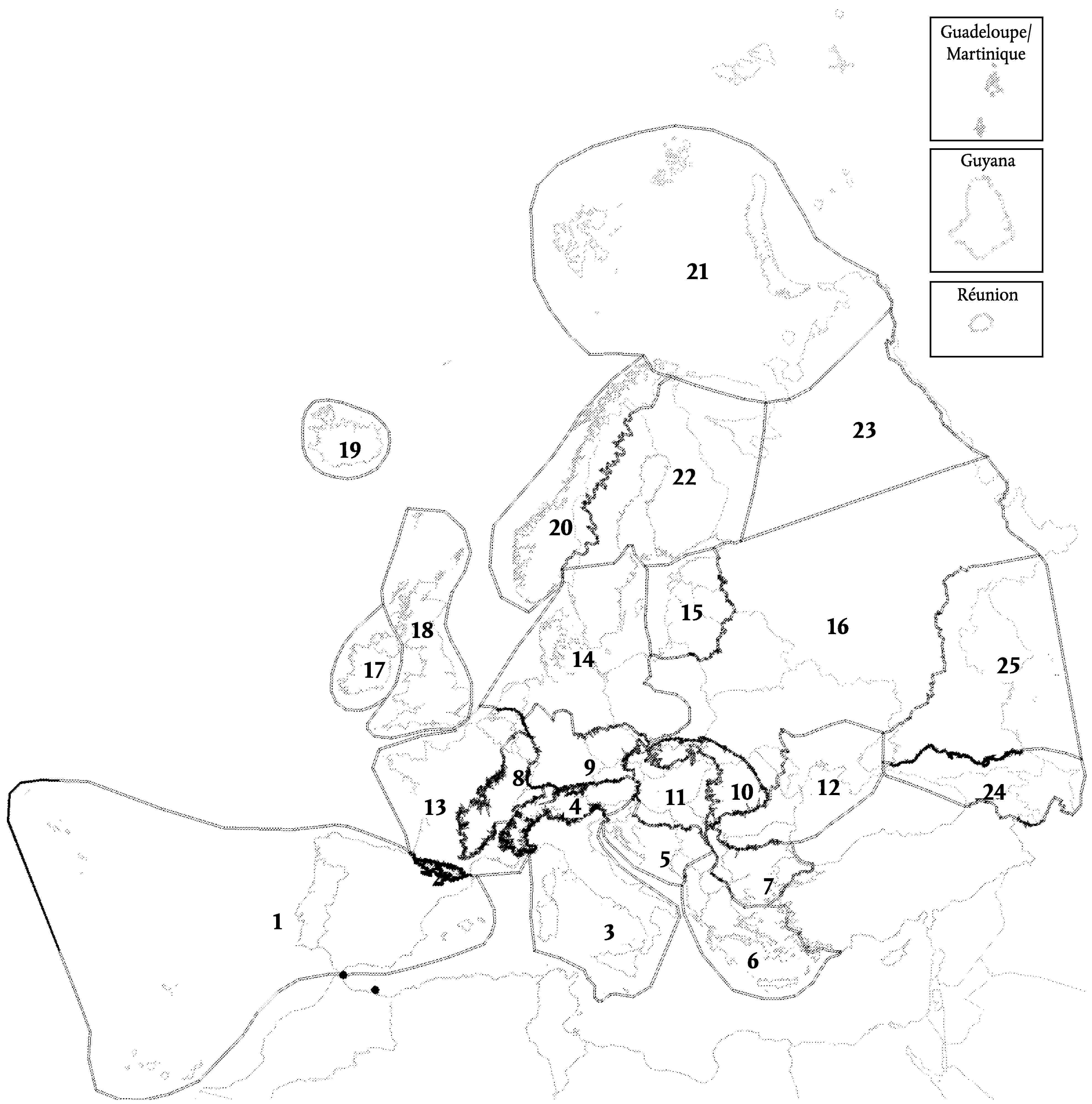 A. rendszer: az átmeneti vizek és a parti tengervizek ökorégiói