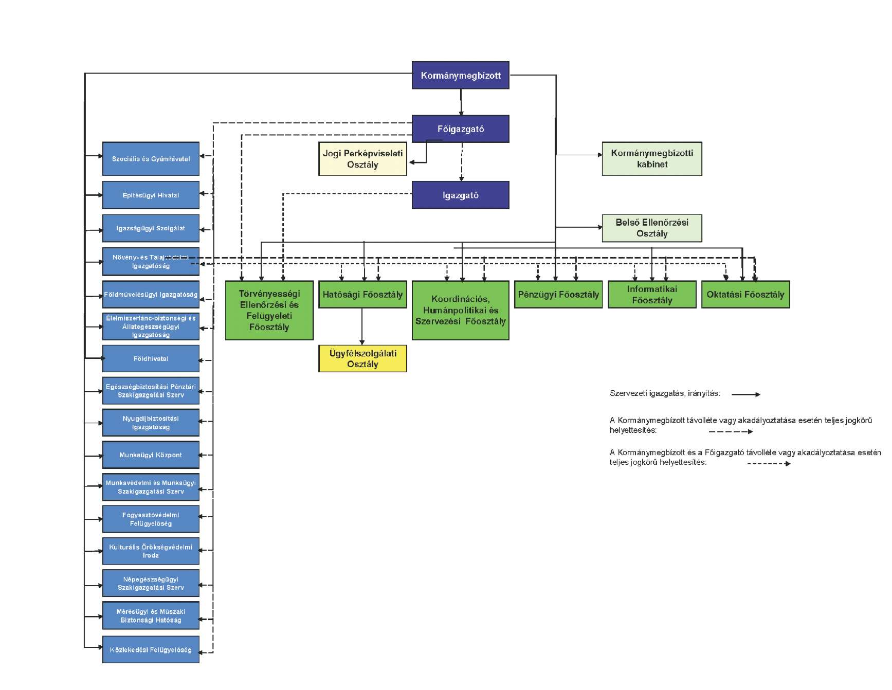 (2) A törzshivatal szervezeti egységei: a főosztályok, valamint az osztály jogállású Kormánymegbízotti Kabinet, a Jogi Perképviseleti Osztály, és a Belső Ellenőrzési Osztály. A főosztályok osztályokra tagozódhatnak.