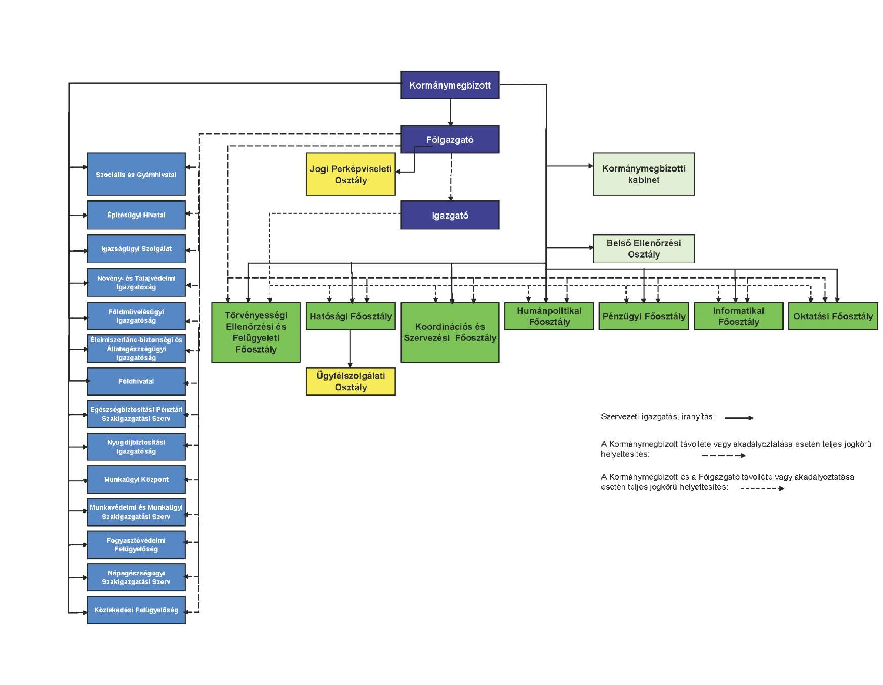 (2) A törzshivatal szervezeti egységei: a főosztályok, valamint az osztály jogállású Kormánymegbízotti Kabinet, a Jogi Perképviseleti Osztály és a Belső Ellenőrzési Osztály. A főosztályok osztályokra tagozódhatnak.