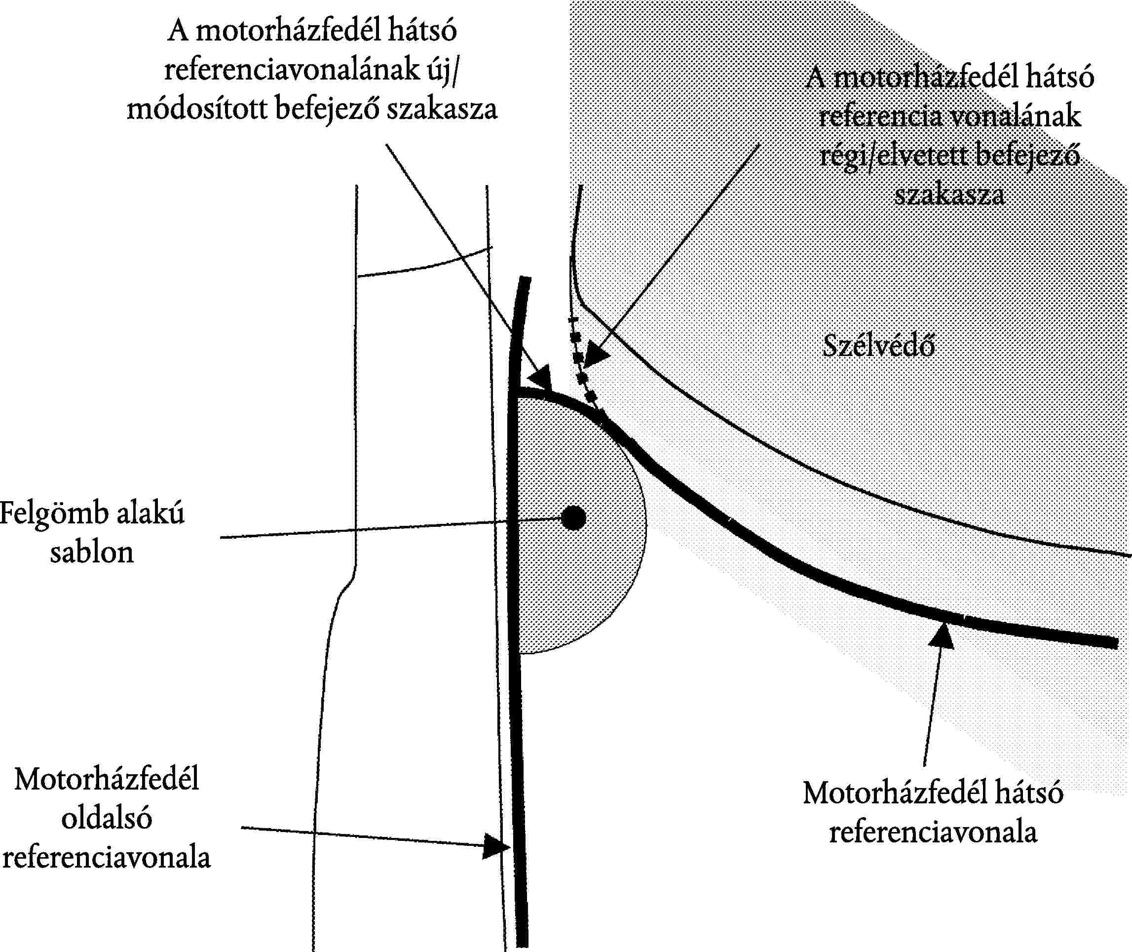 Ha a motorházfedél hátsó referenciavonalát újra meghatározták, e referenciavonal az összes vizsgálat alapjául szolgál, és az eredeti vonalat nem kell figyelembe venni.