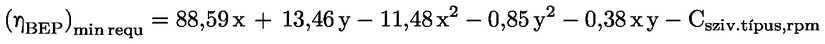 A normálponthoz (BEP) tartozó előírt minimális hatásfokot a következő összefüggés segítségével kell meghatározni: