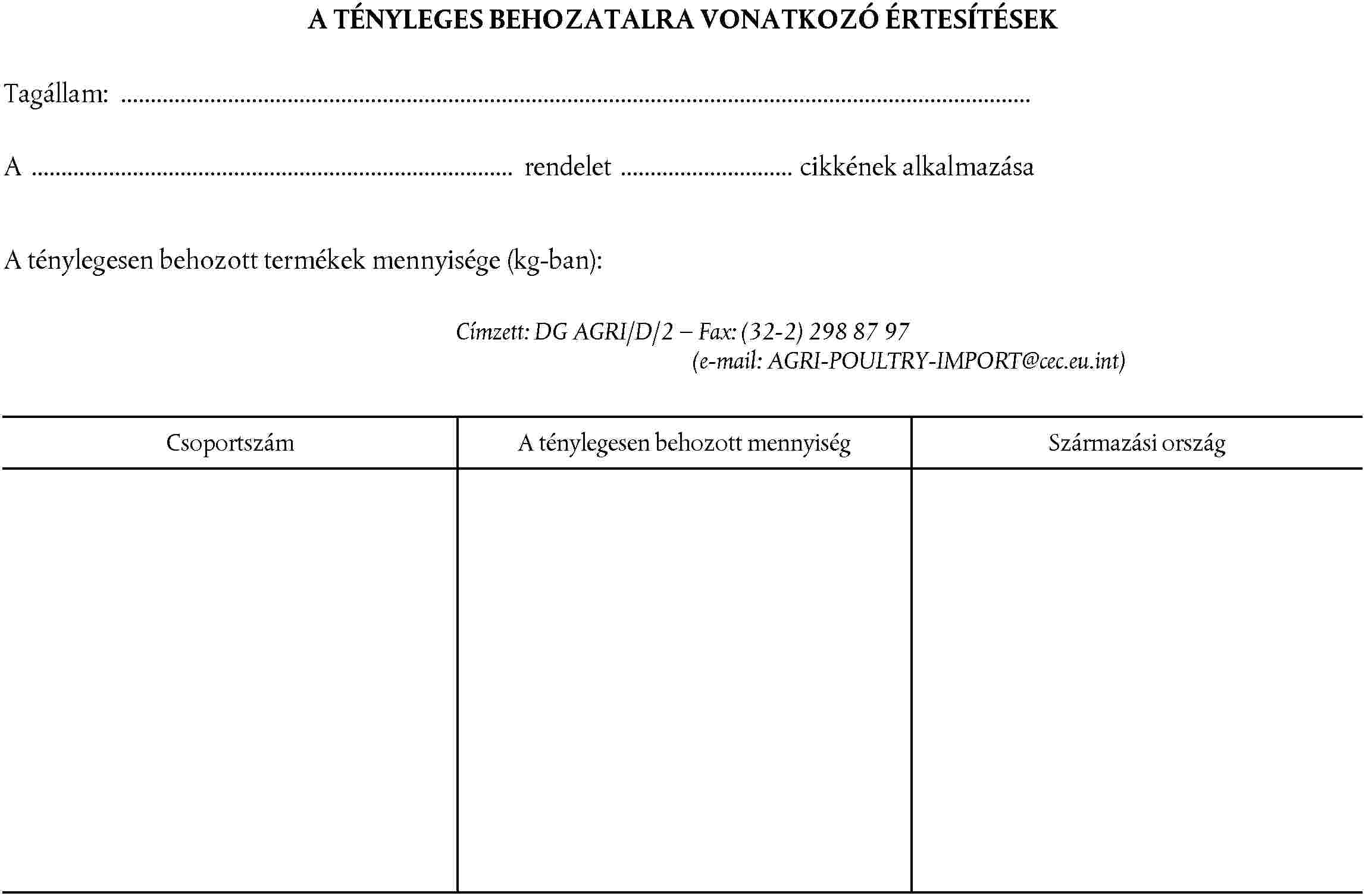 (8) A behozatali szabályok megfelelő alkalmazásának biztosítása érdekében a Bizottságnak rendelkeznie kell a tagállamok által a ténylegesen behozott mennyiségekre vonatkozóan szolgáltatott információval. Az érthetőség érdekében a tagállamoknak egységes mintát kell használniuk, amikor a Bizottságot tájékoztatják a mennyiségekről.