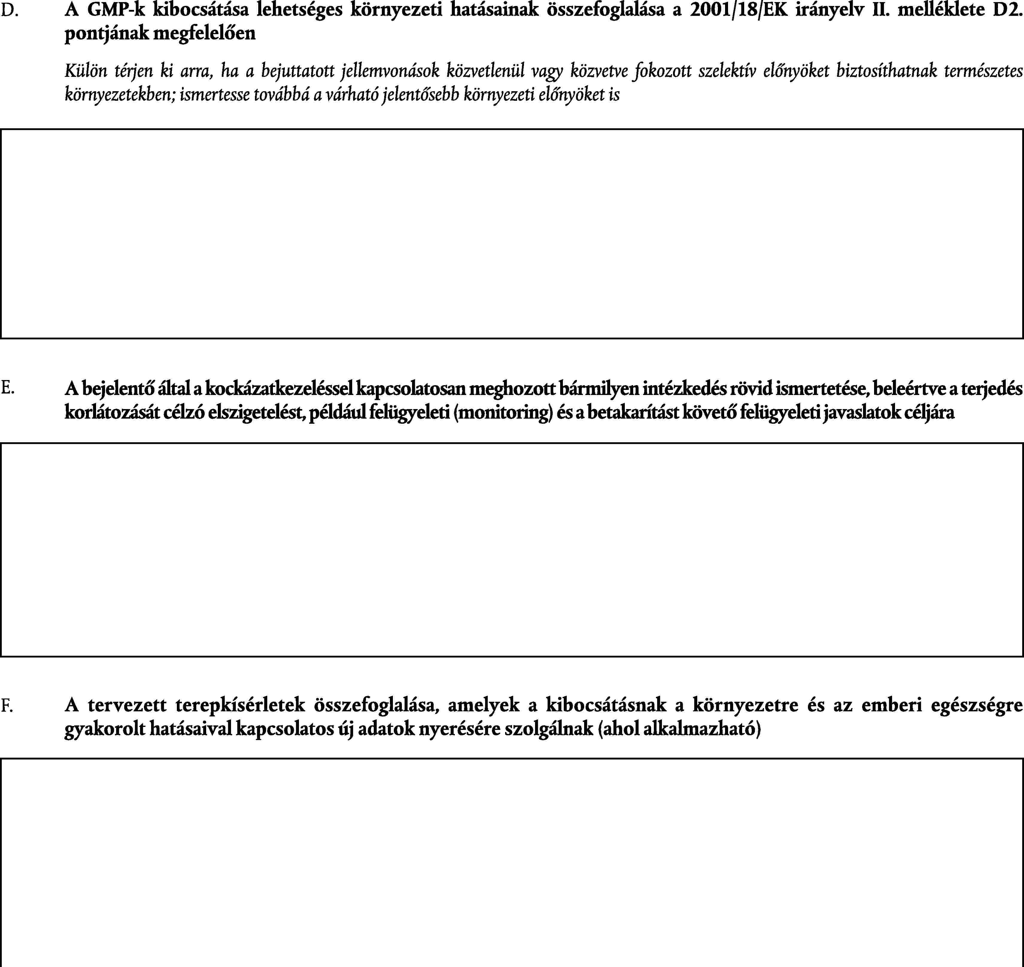 A GMO-KNAK ÉS A GMO-KOMBINÁCIÓKNAK A KERESKEDELMI FORGALOMBA HOZATALTÓL ELTÉRŐ BÁRMILYEN EGYÉB CÉLBÓL A KÖRNYEZETBE TÖRTÉNŐ SZÁNDÉKOS KIBOCSÁTÁSÁVAL KAPCSOLATOS BEJELENTÉSEK ÖSSZEFOGLALÓ BEJELENTÉSI FORMANYOMTATVÁNYA