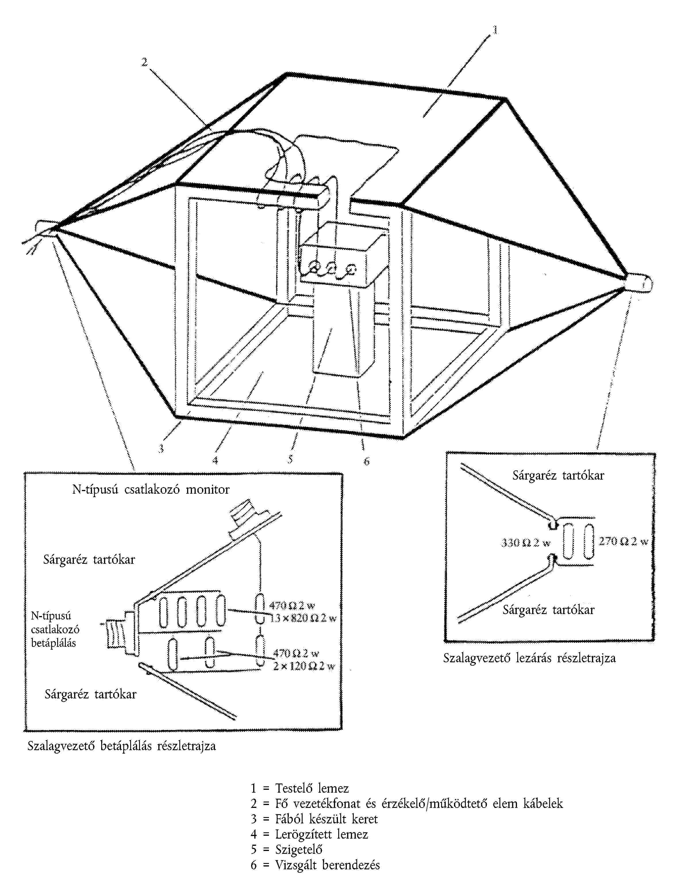 A szalagvezető két párhuzamos fémlemezből áll, amelyek 800 mm-re vannak egymástól elválasztva. A vizsgálat alatt álló berendezést a két lemez között központosan helyezik el, és elektromágneses térnek vetik alá (lásd az e melléklet 1. függelékét).
