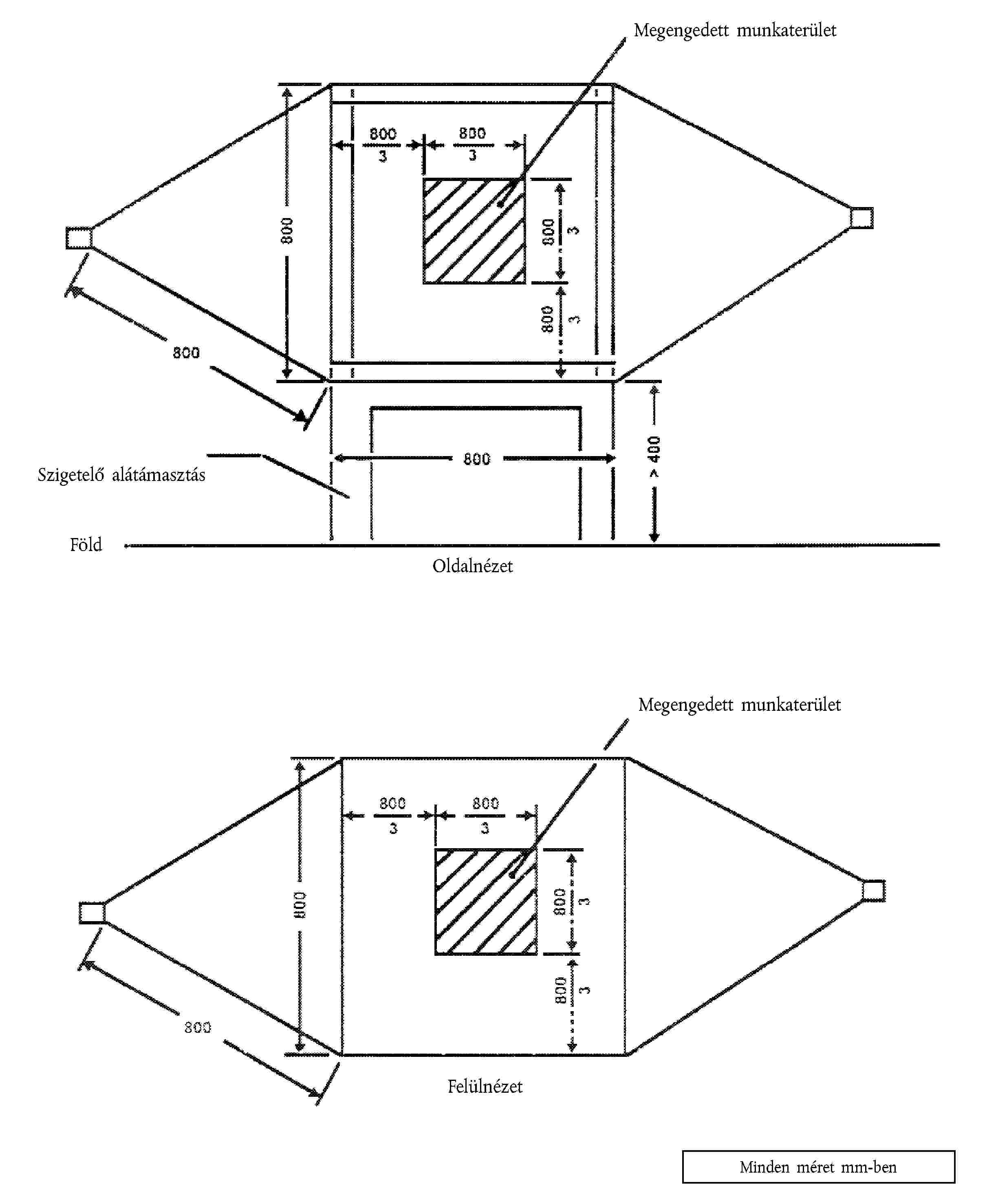 A betápláló szondát 150 mm távolságban kell elhelyezni a vizsgálandó elektromos/elektronikus részegységtől.