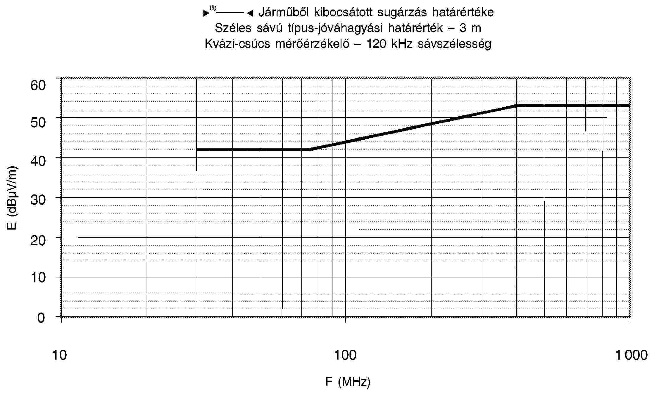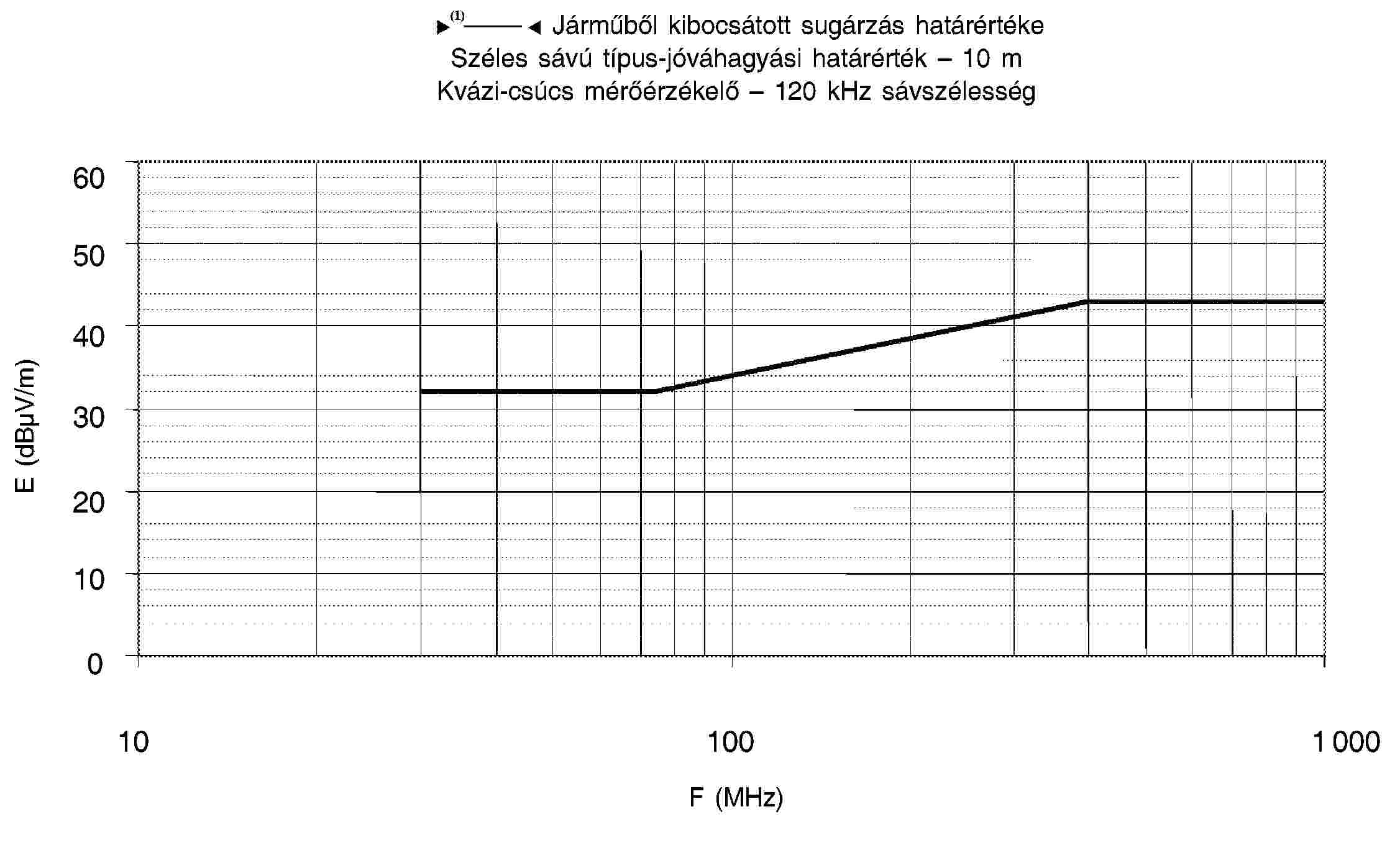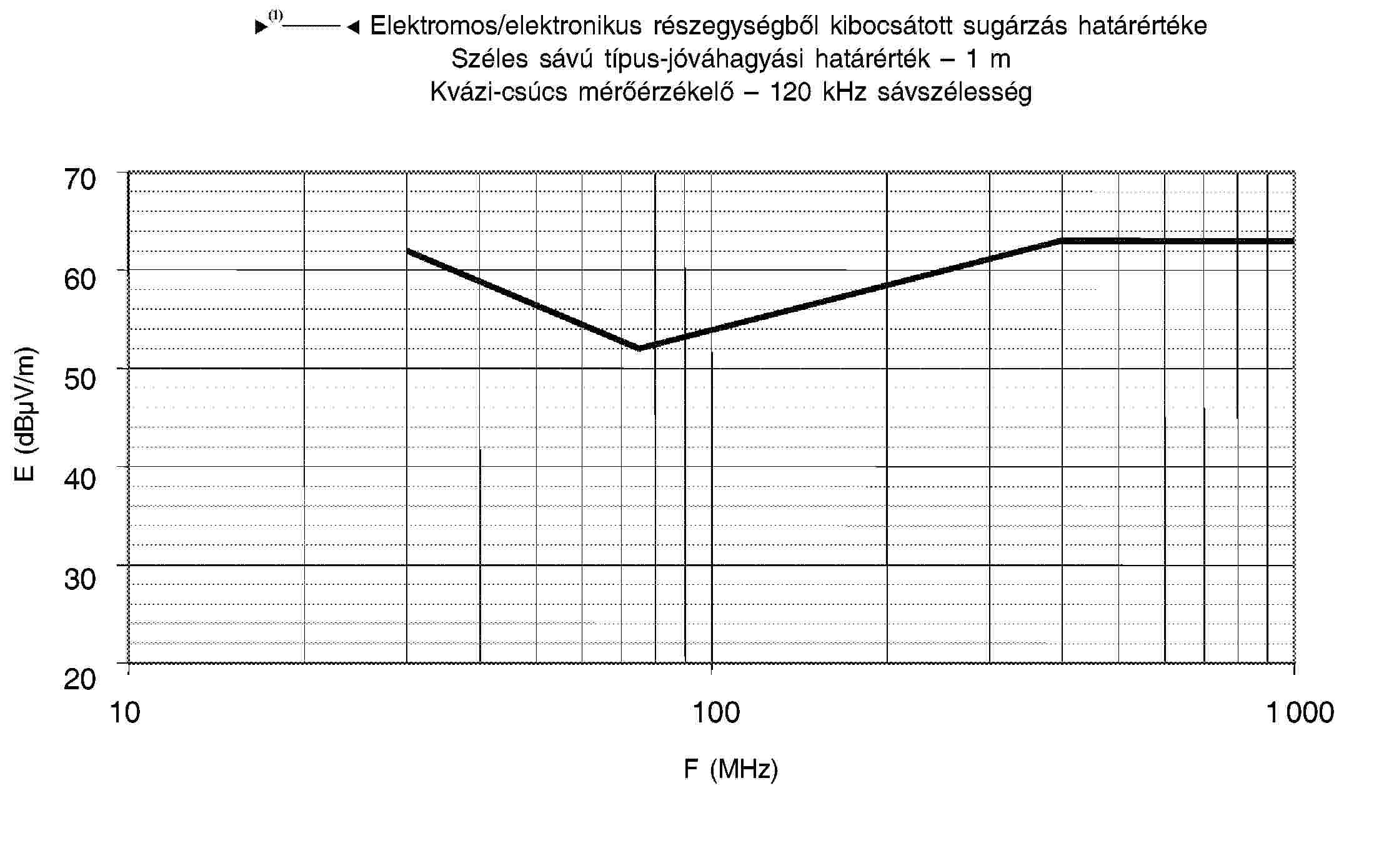 4.1. A határértékek a teljes 30-1 000 MHz frekvenciatartományra vonatkoznak a félsüketszobában vagy szabadtéri vizsgálati helyszínen végzett mérésekhez.