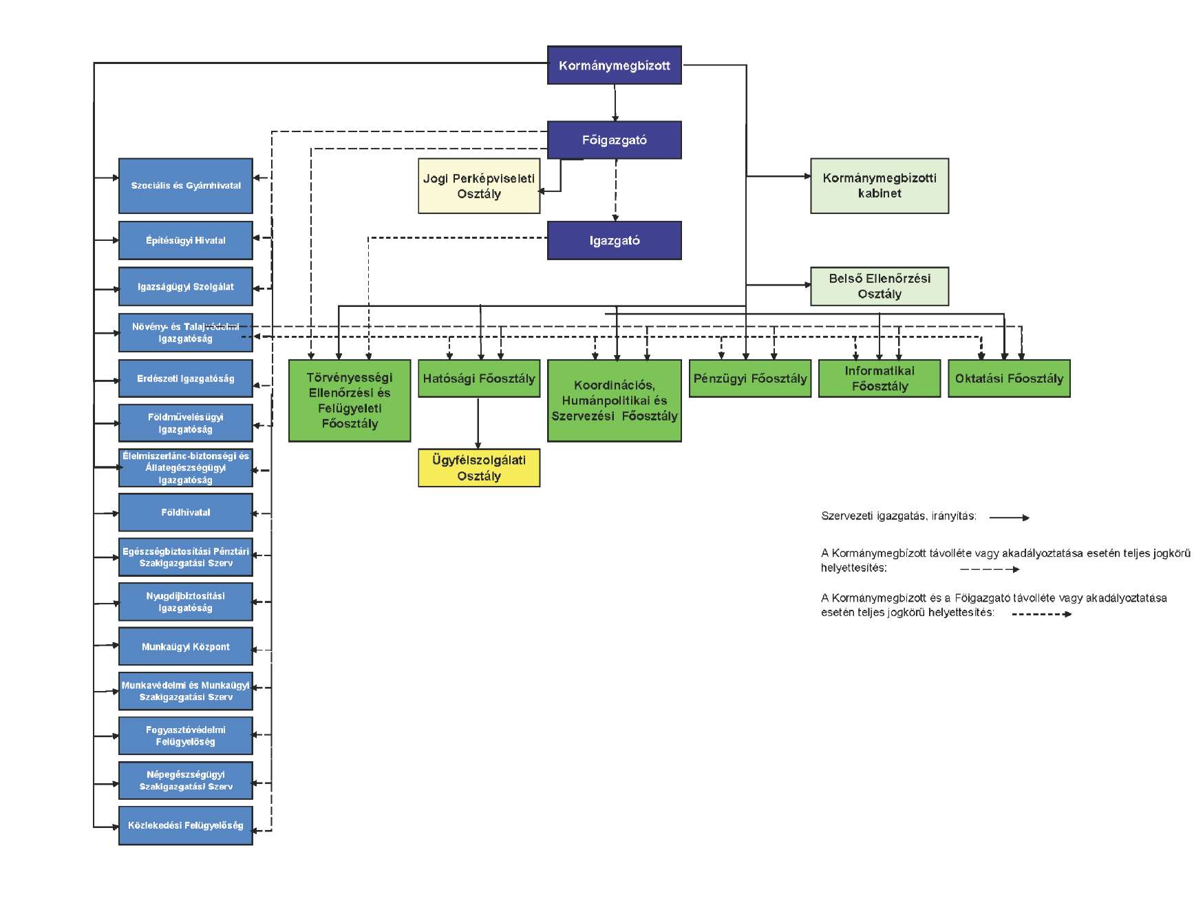 (2) A törzshivatal szervezeti egységei: a főosztályok, valamint az osztály jogállású Kormánymegbízotti Kabinet, a Jogi Perképviseleti Osztály és a Belső Ellenőrzési Osztály. A főosztályok osztályokra tagozódhatnak.