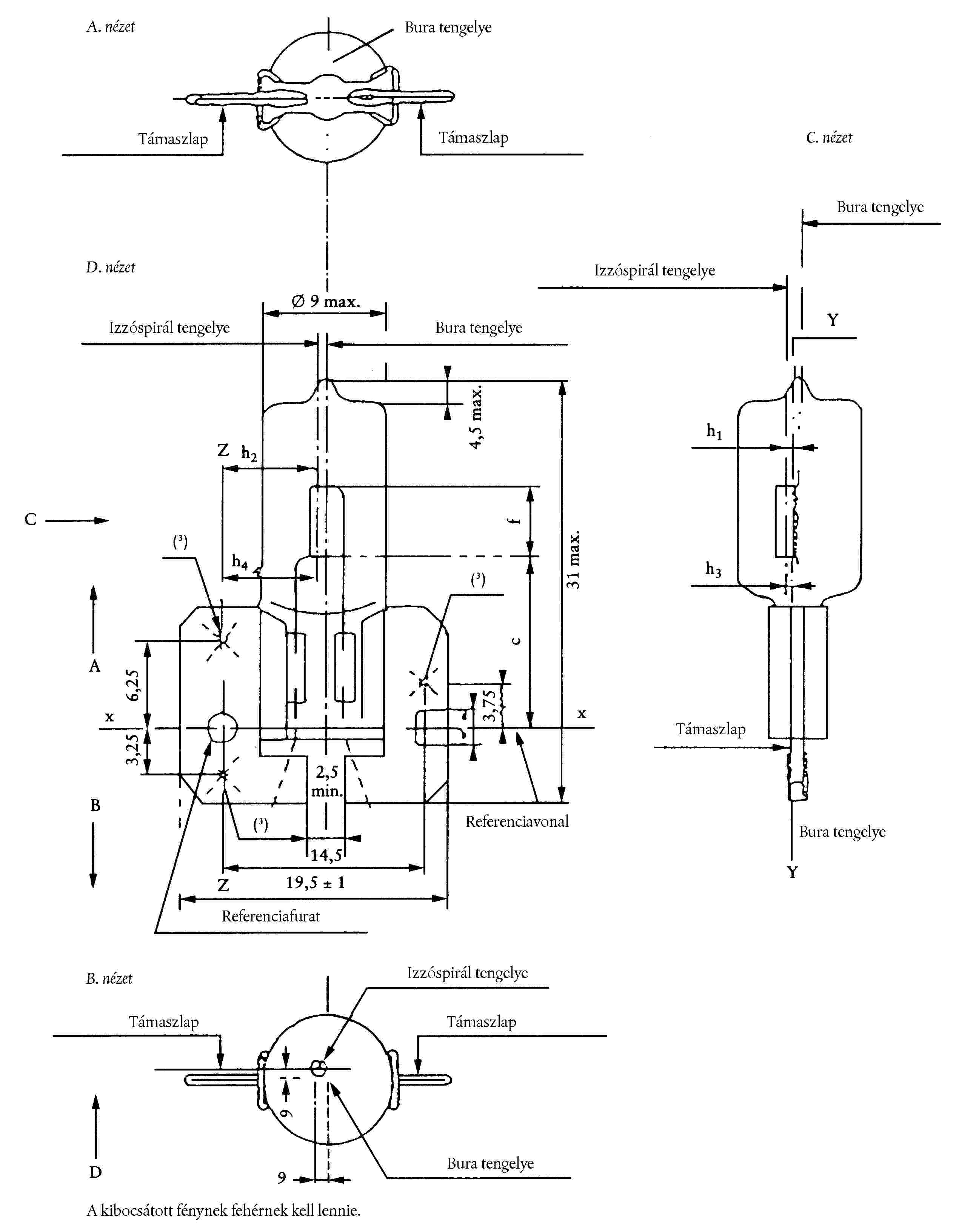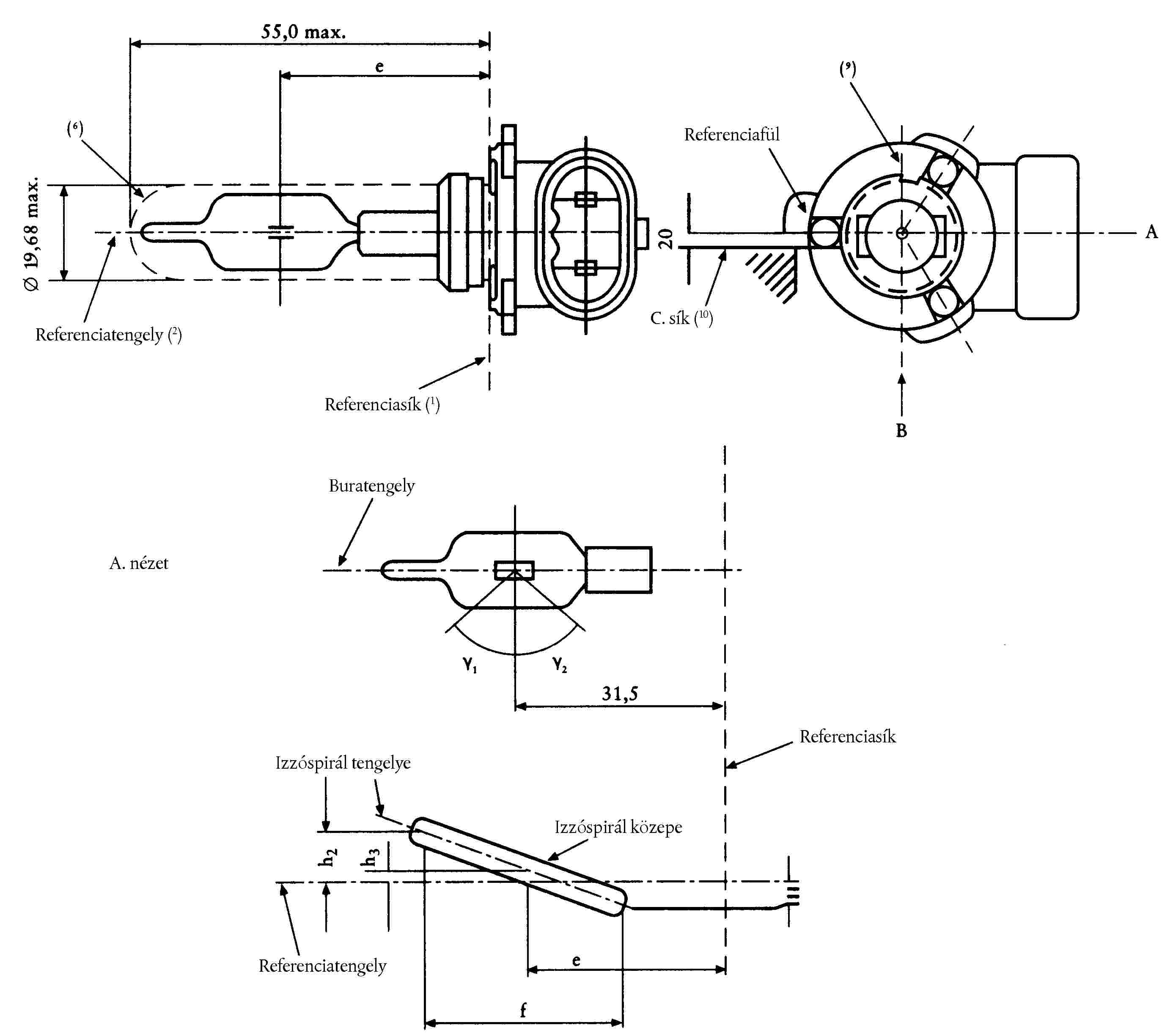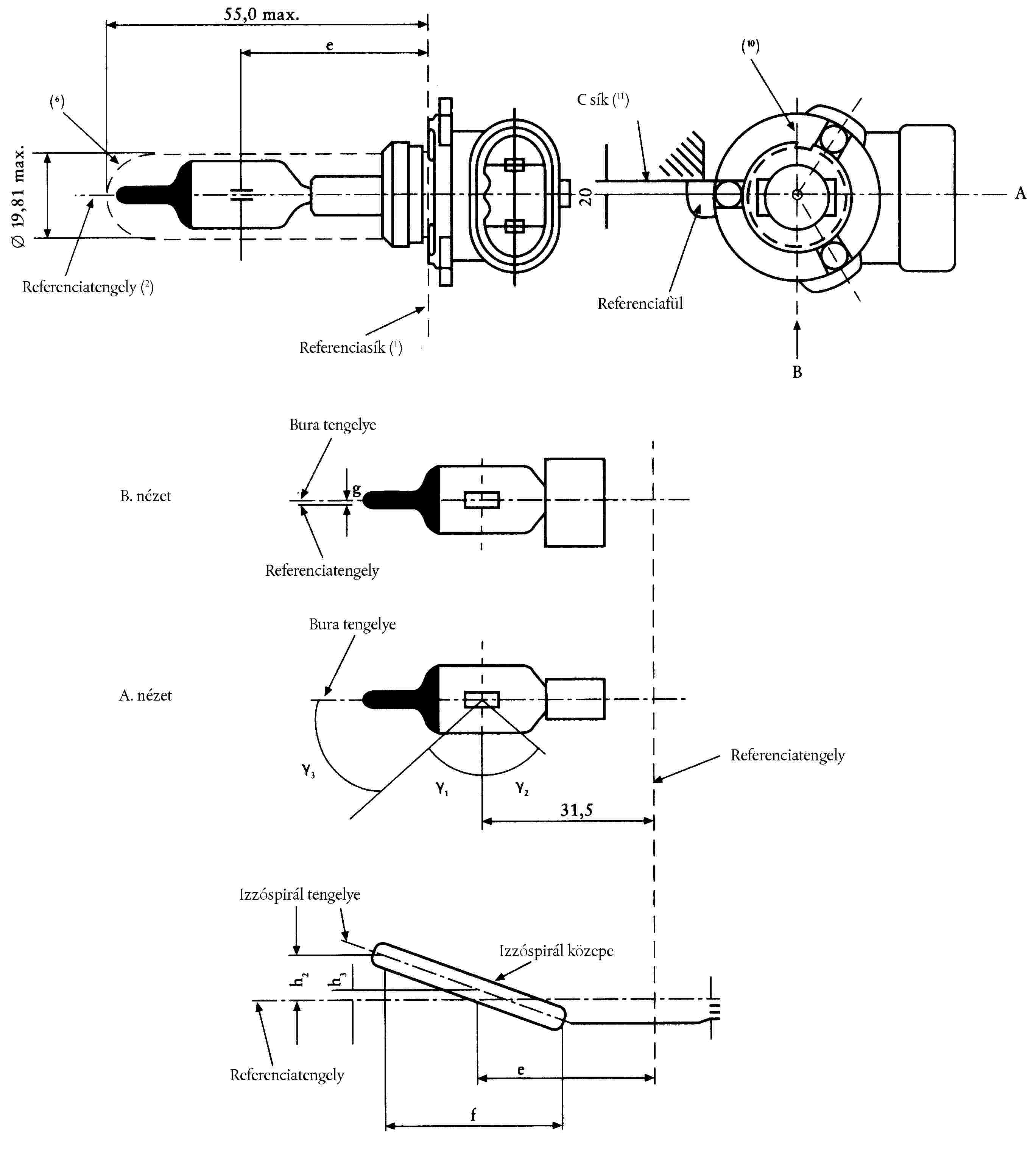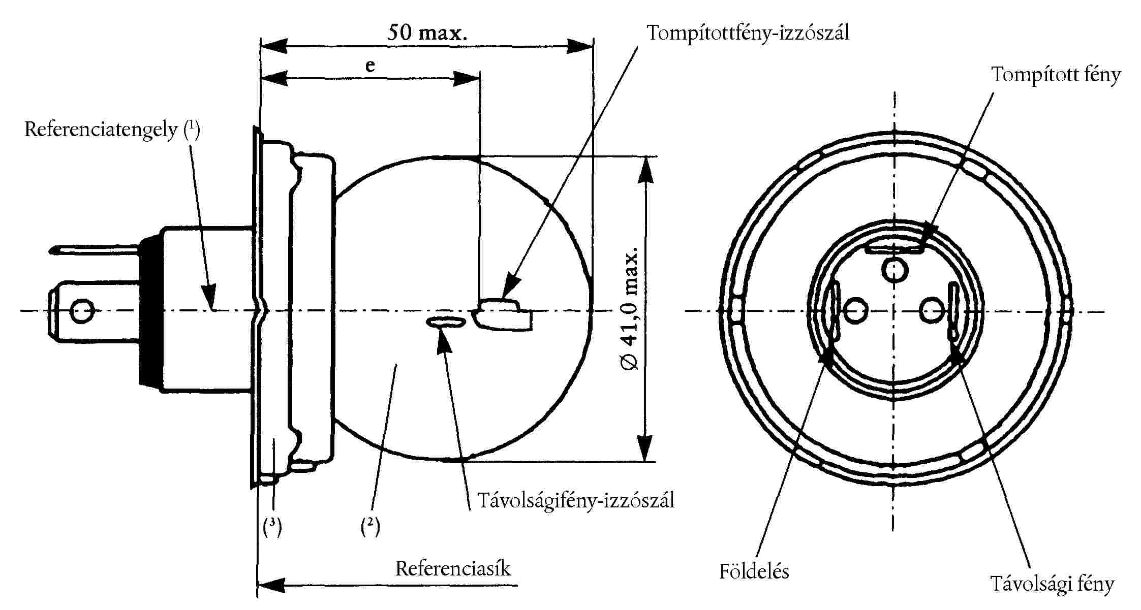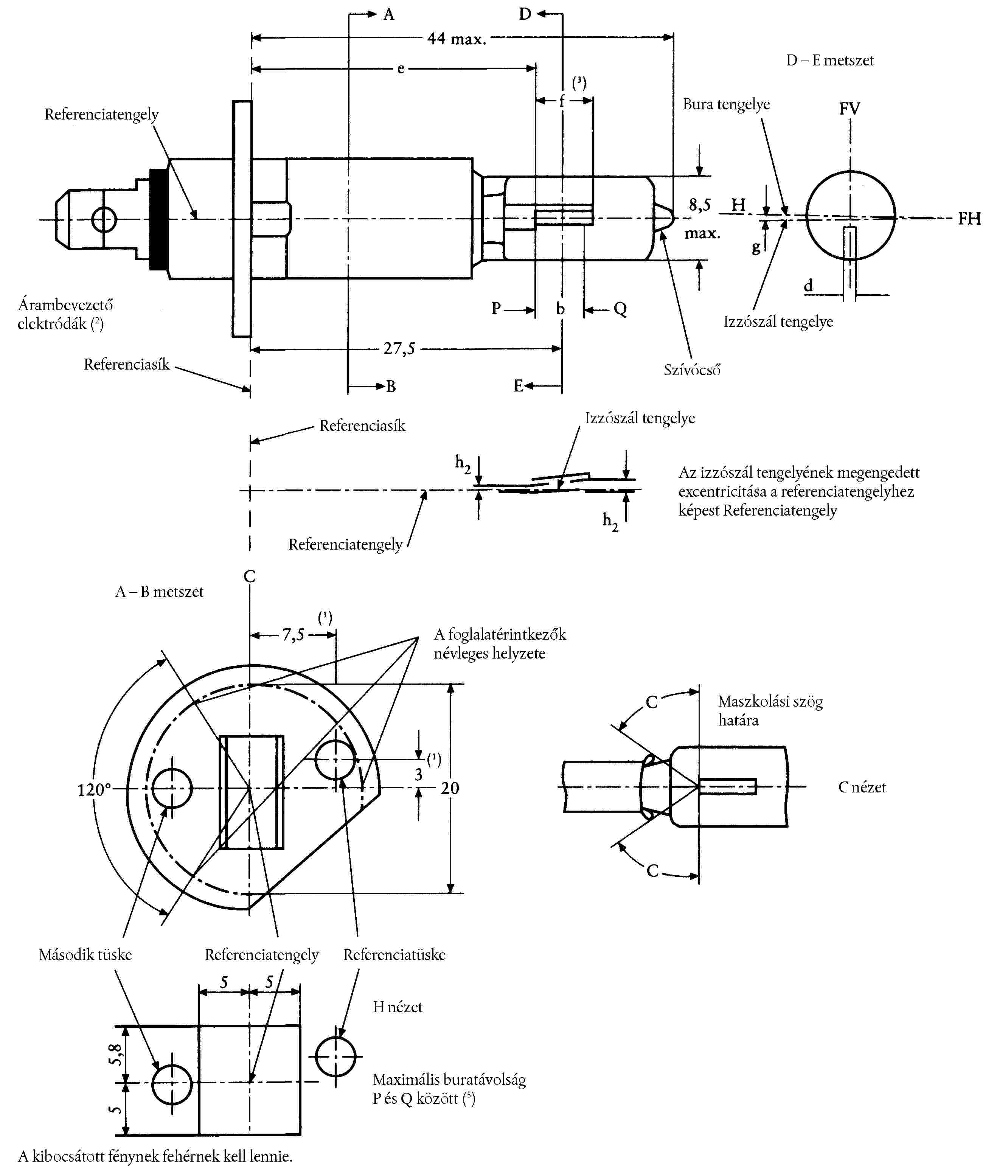 ( 52 ) Az izzóspirál vége a H2/3 lapon van meghatározva.