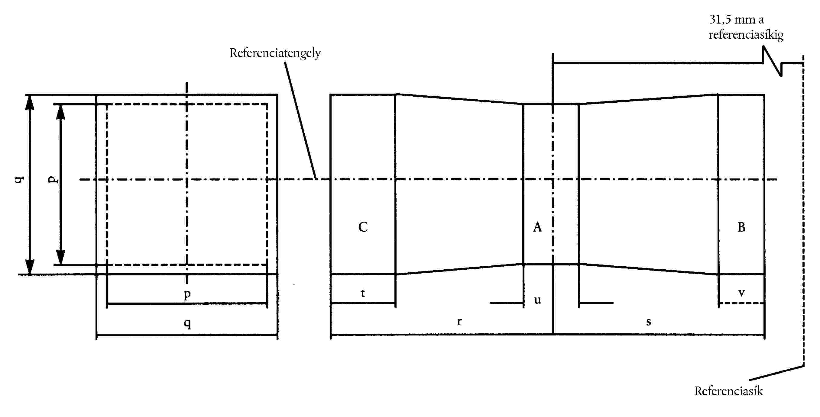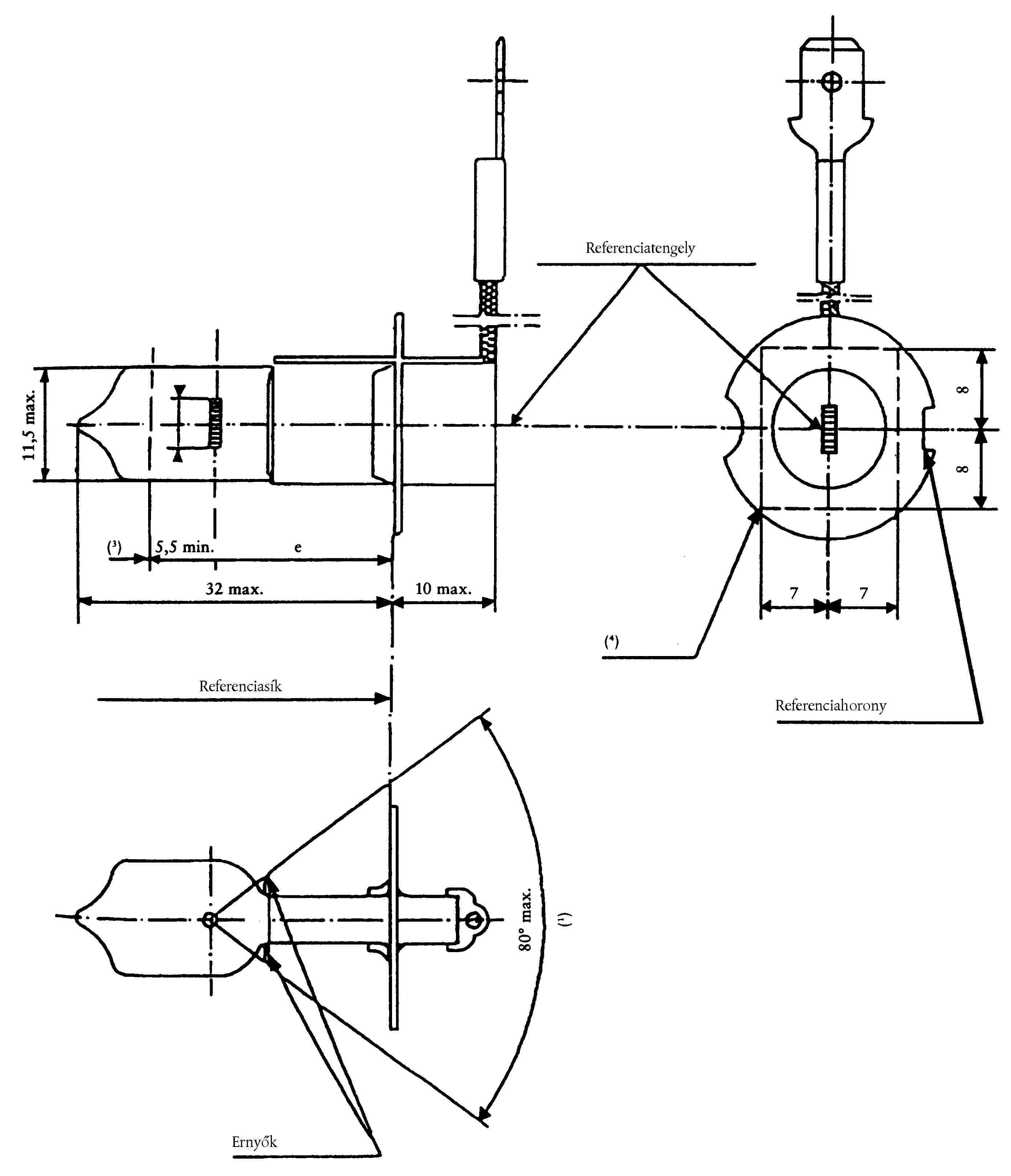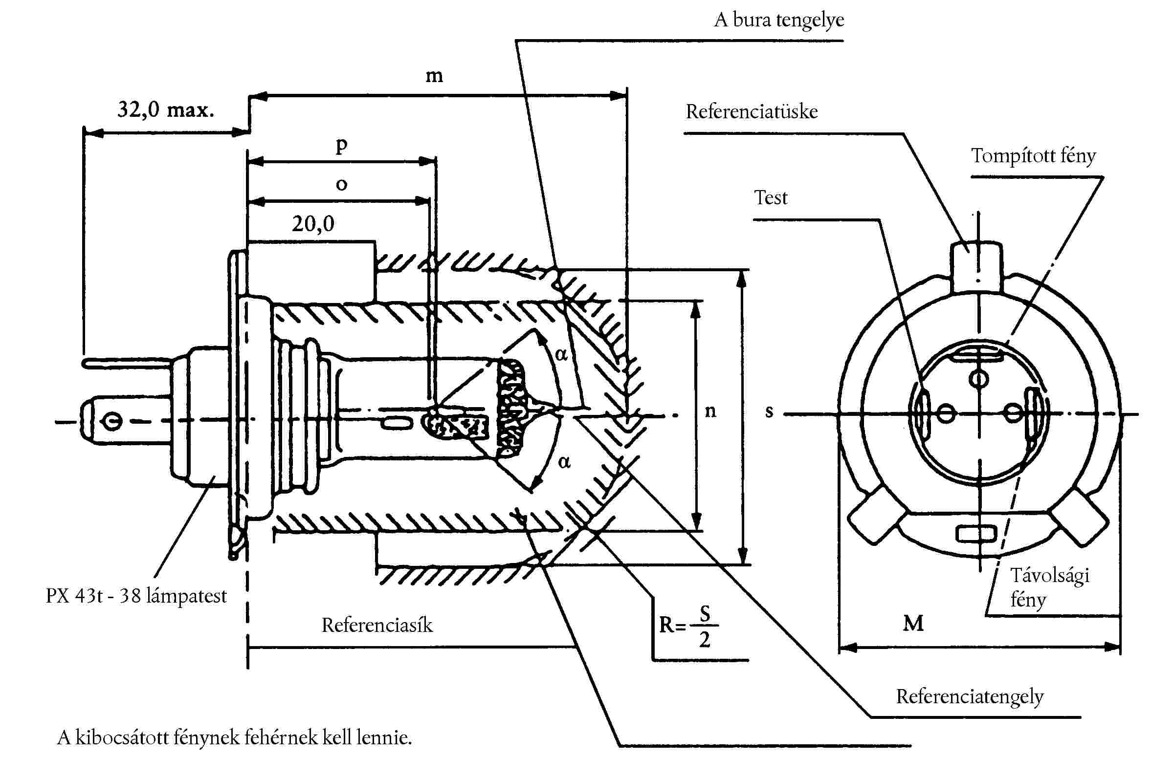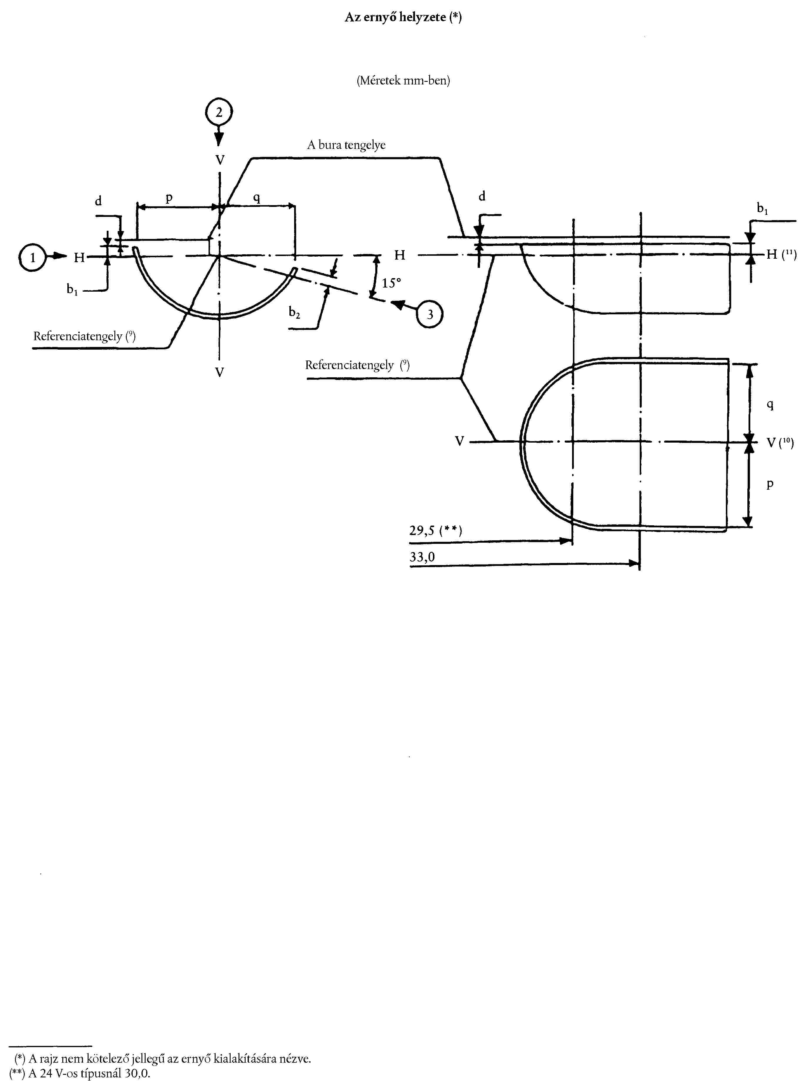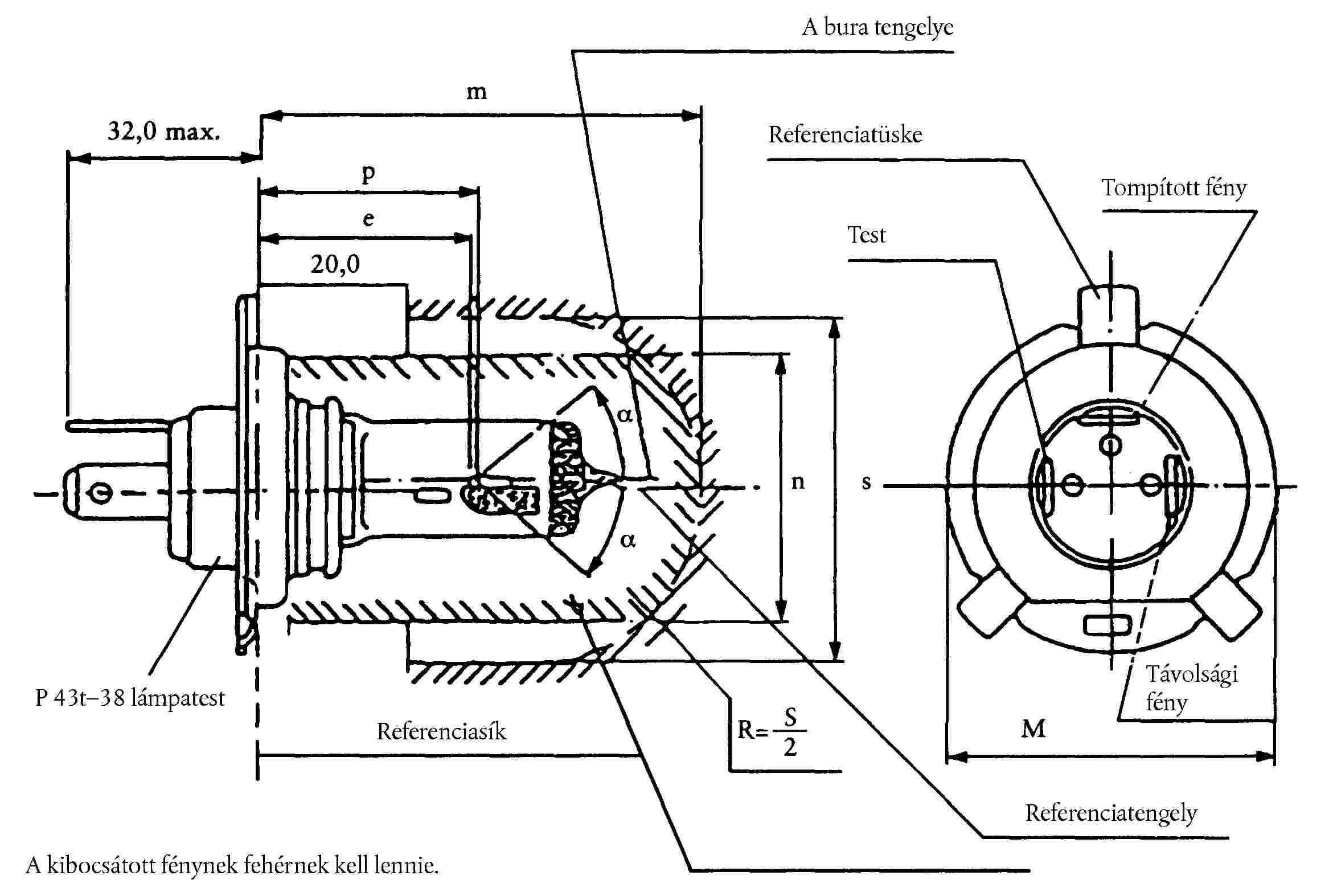 ( 46 ) A referenciatengely merőleges a referenciasíkra és a 45 mm-es lámpafej-átmérő közepén halad át.