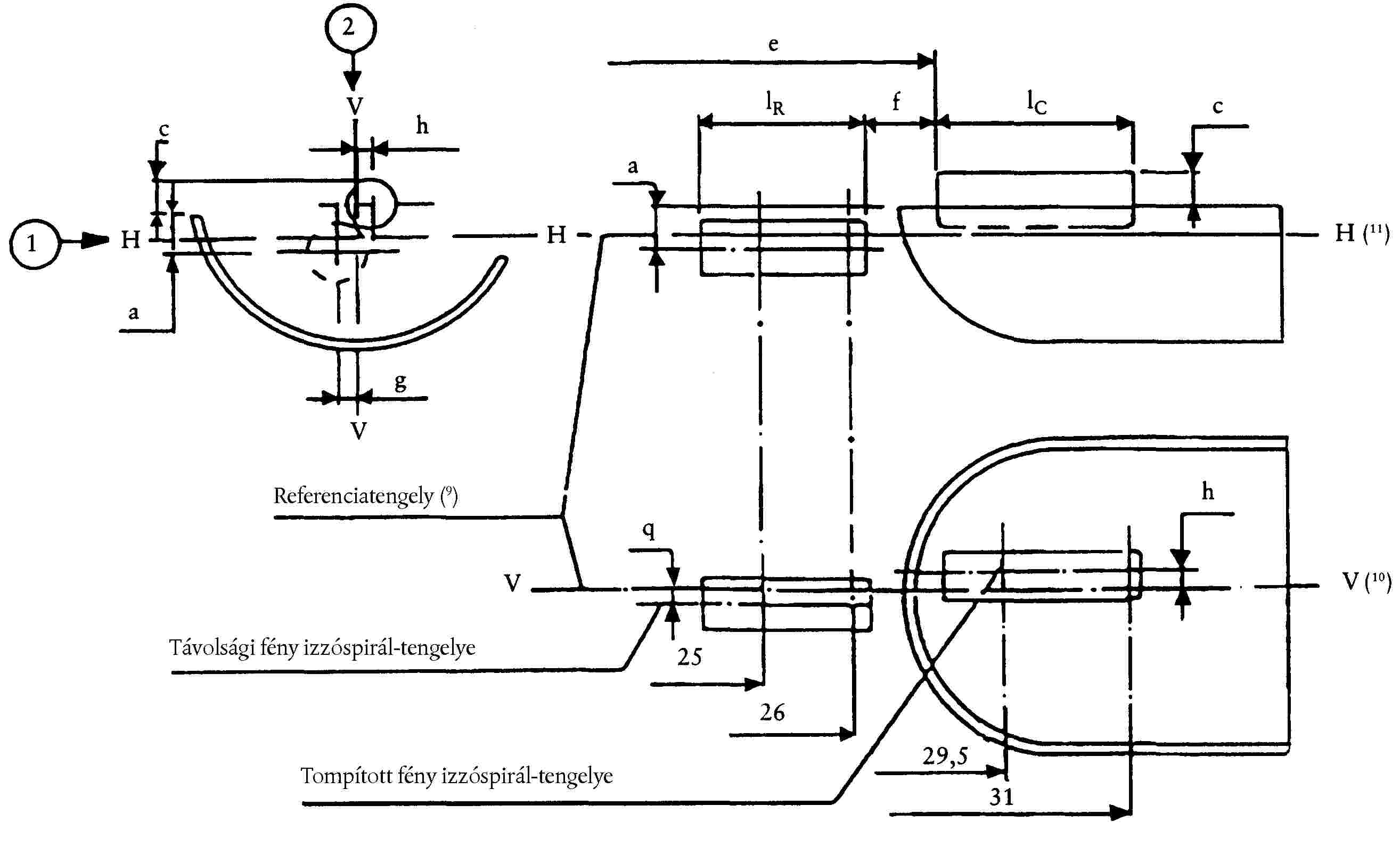 ( 49 ) A mérendő pontok azok, amelyeknél a lámpafejhez legközelebbi vagy a lámpafejtől legtávolabbi utolsó menet külseje metszi az izzóspirál tengelyét.