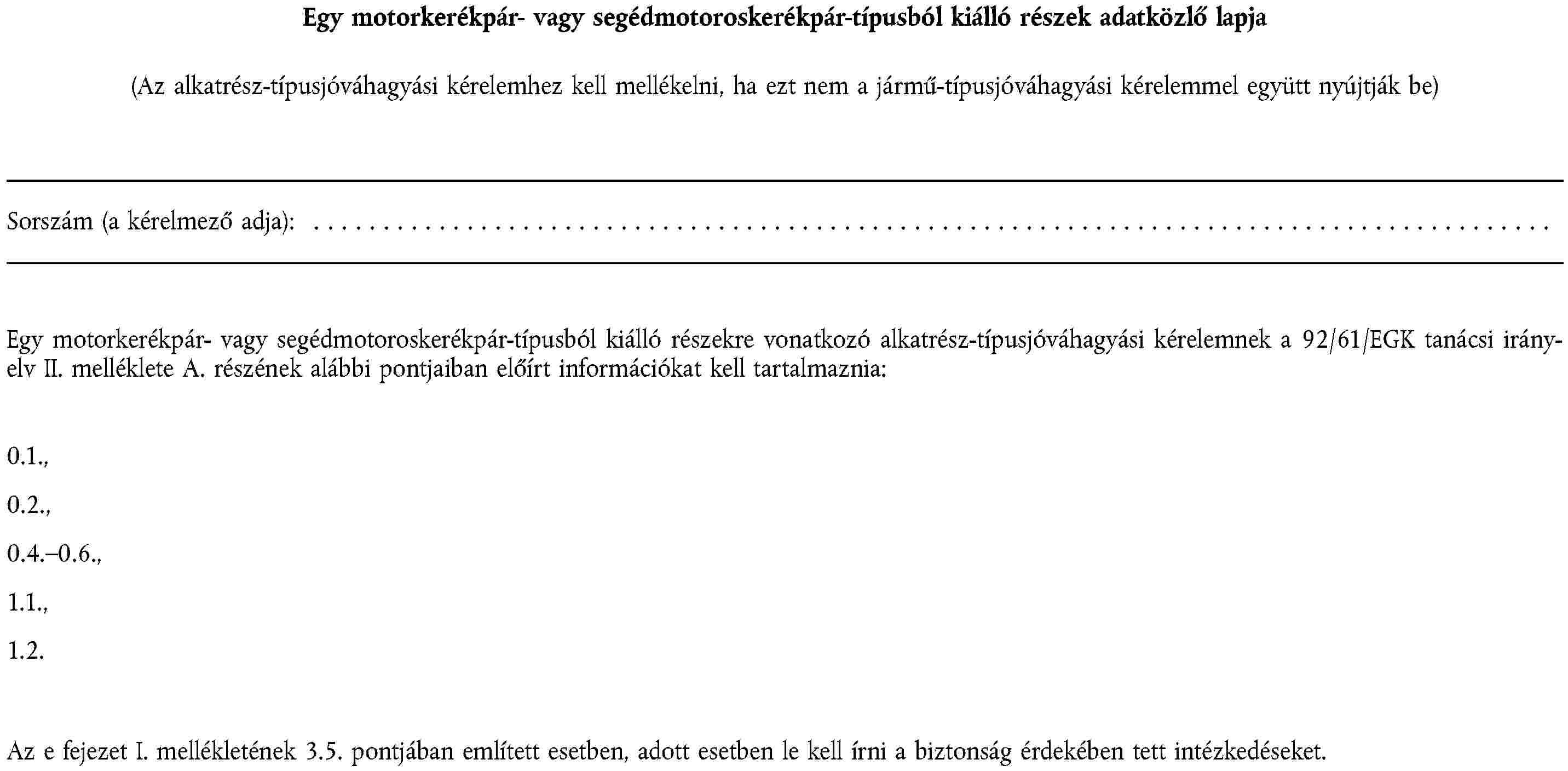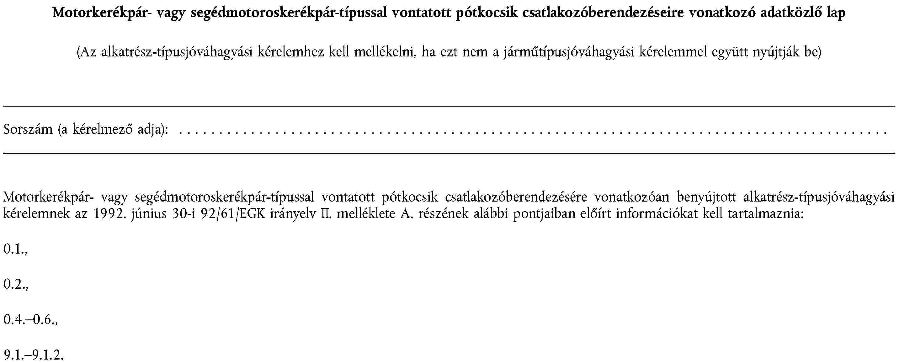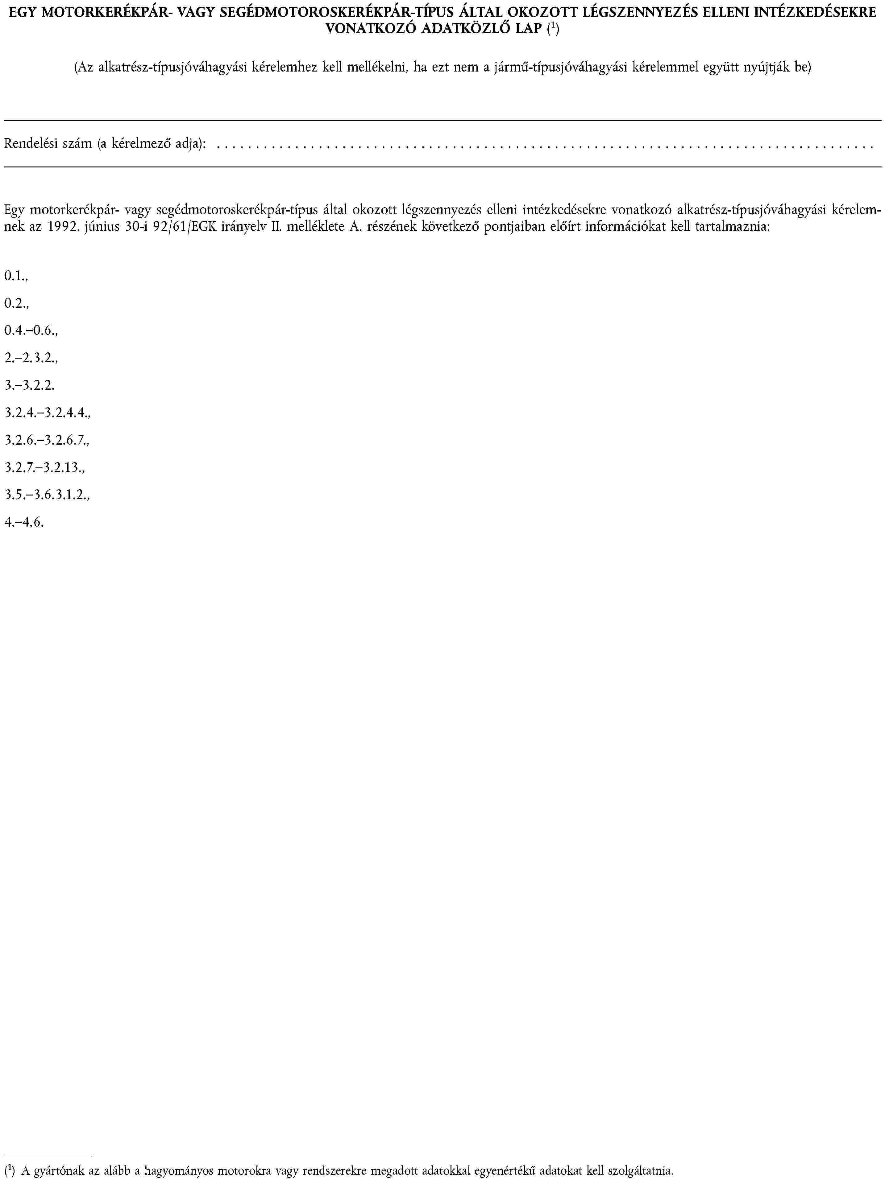 1. függelék | Egy motorkerékpárra vagy segédmotoros kerékpárra szánt gumiabroncs-típus felszerelésére vonatkozó adatközlő lap |