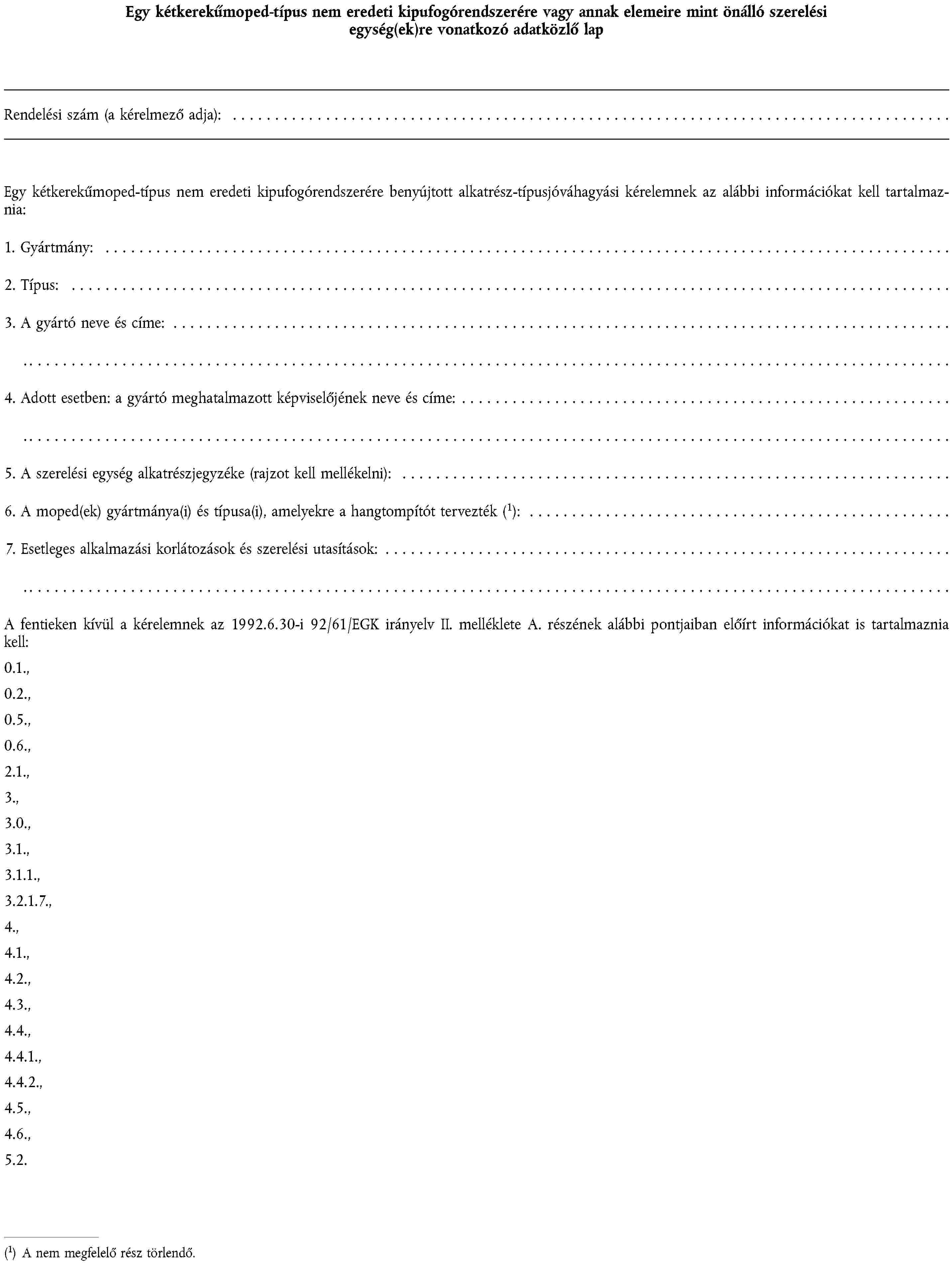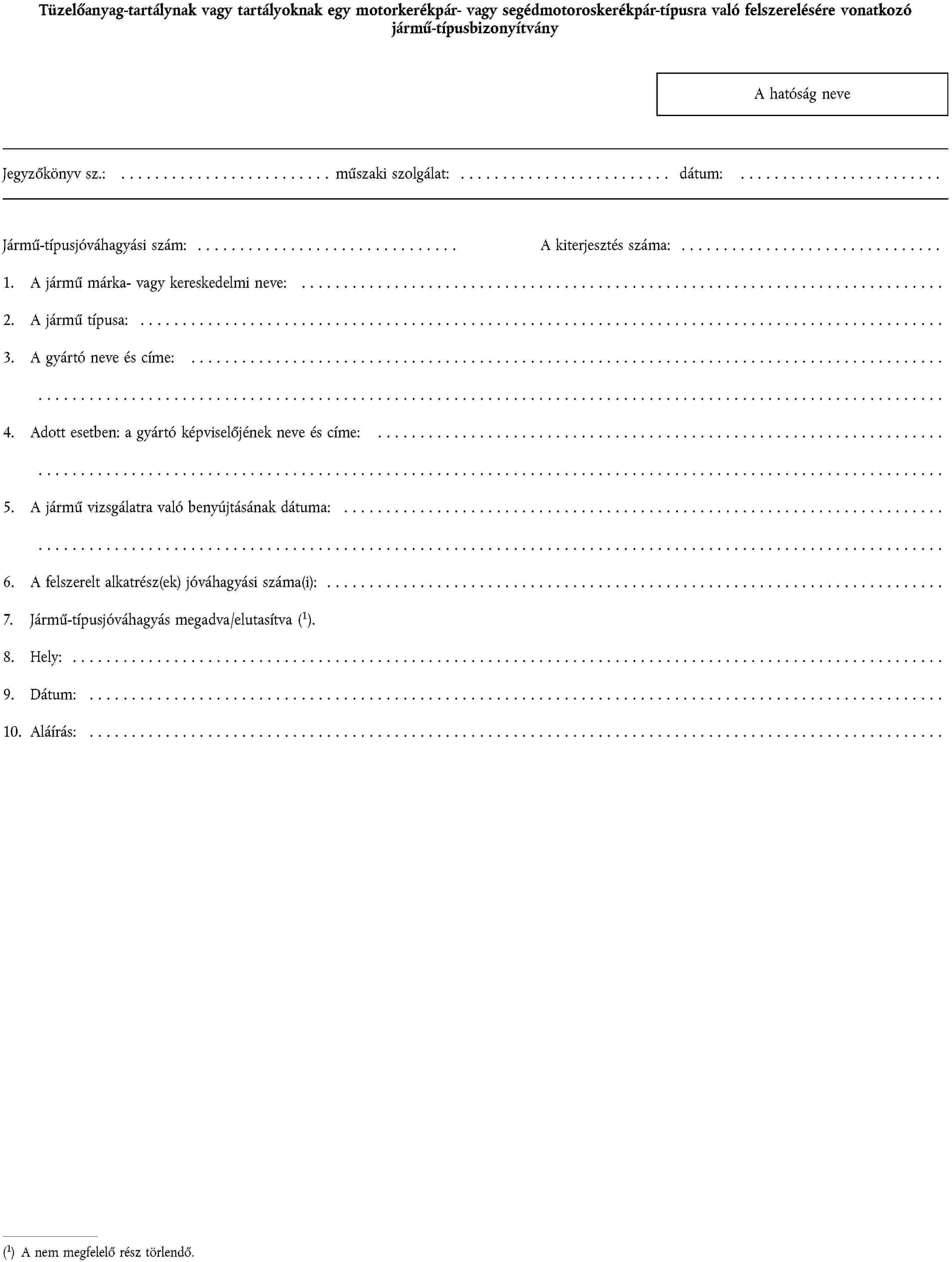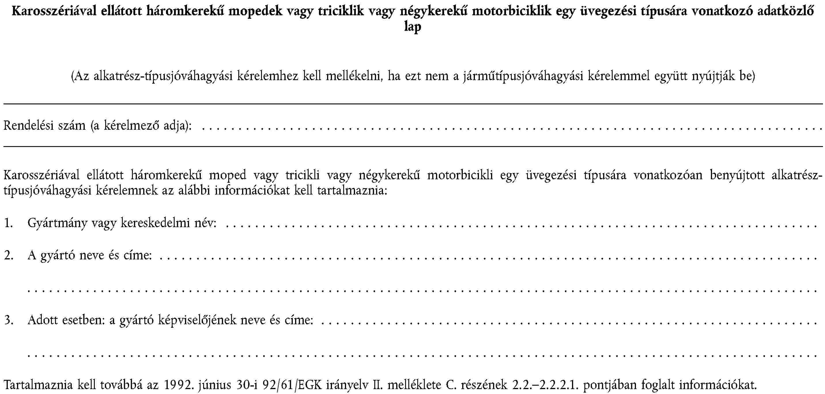 1. függelék | Egy motorkerékpárra vagy segédmotoros kerékpárra szánt gumiabroncs-típus felszerelésére vonatkozó adatközlő lap |