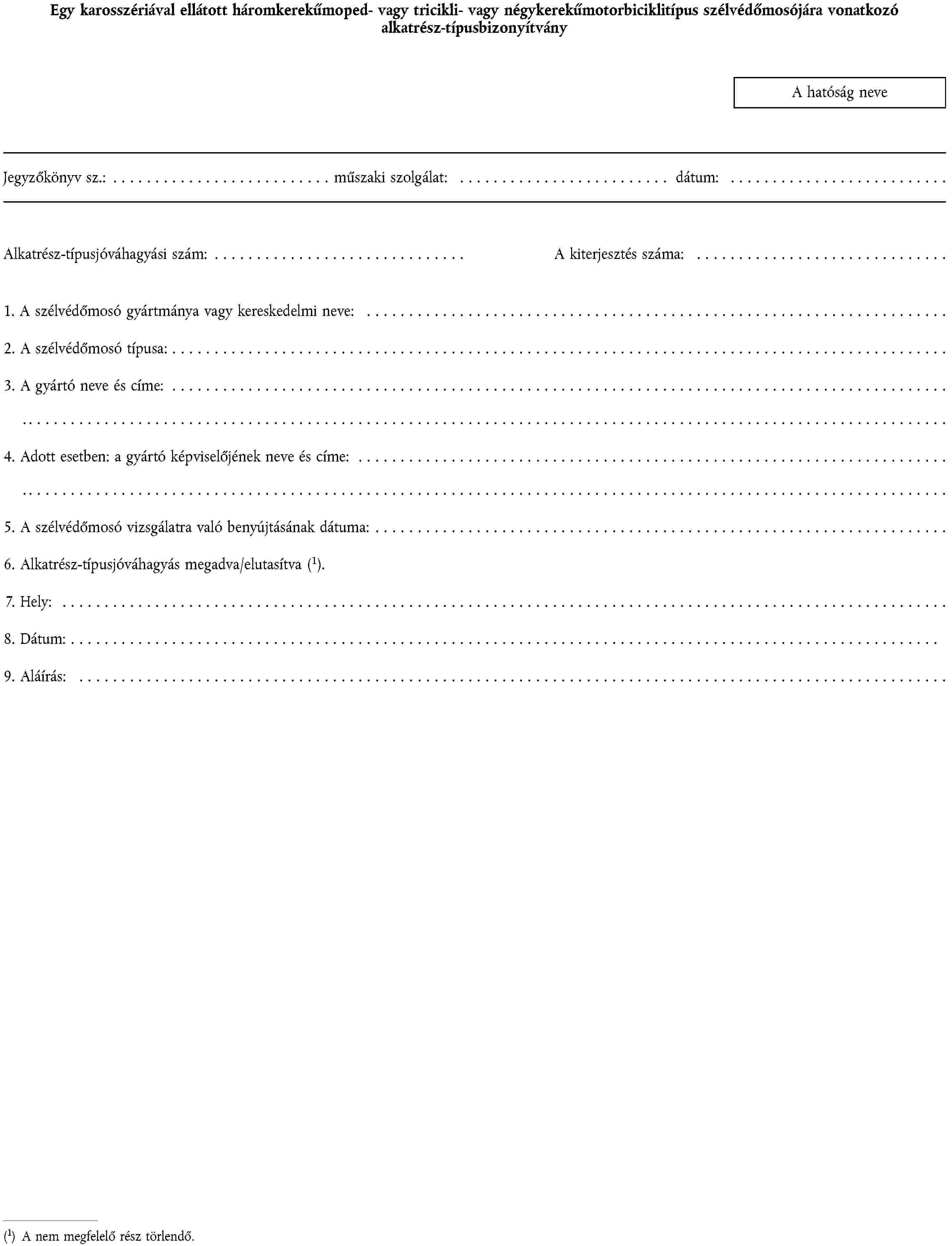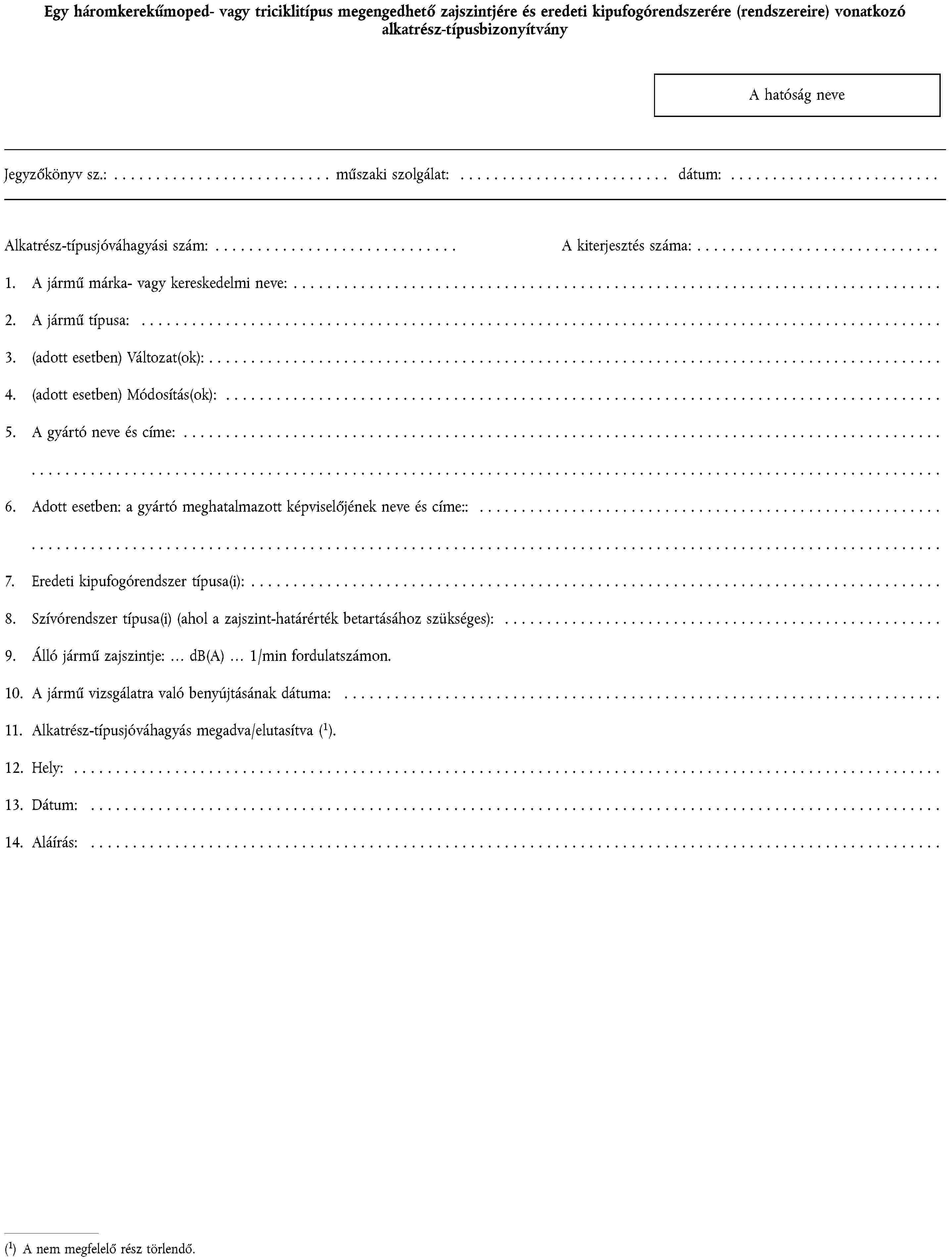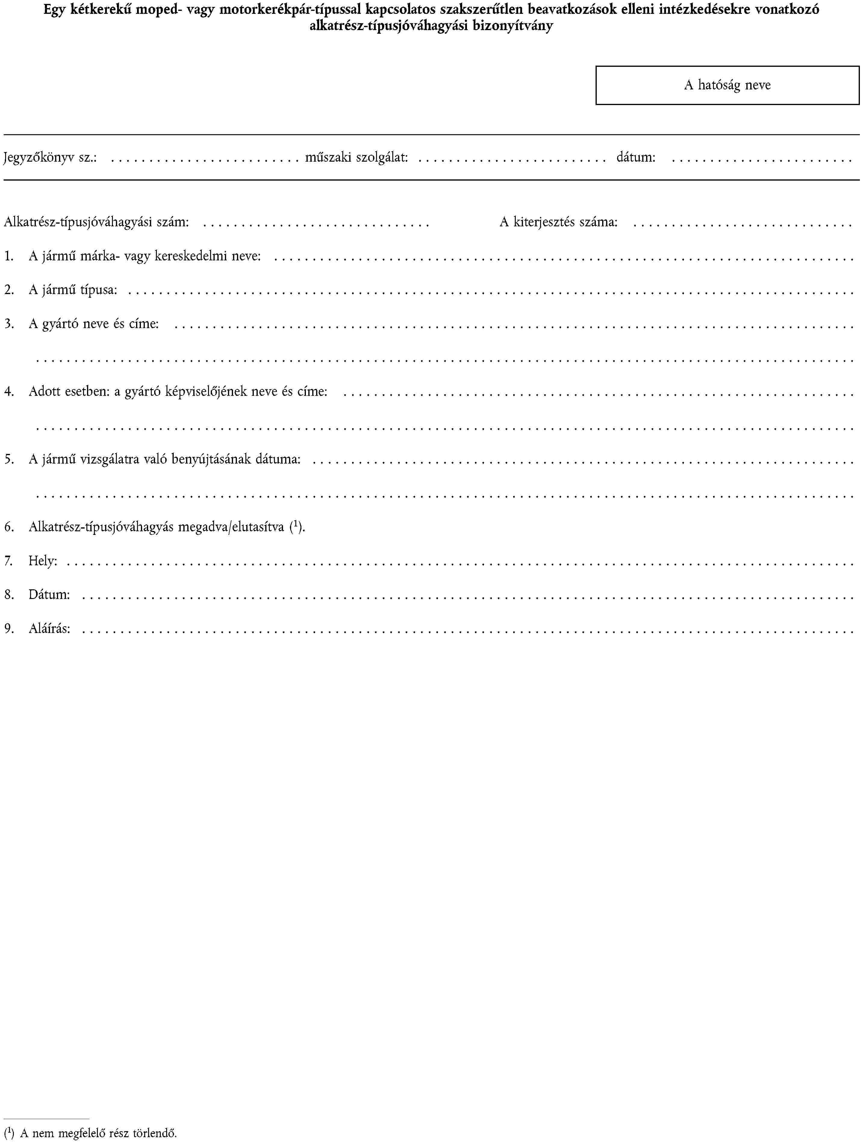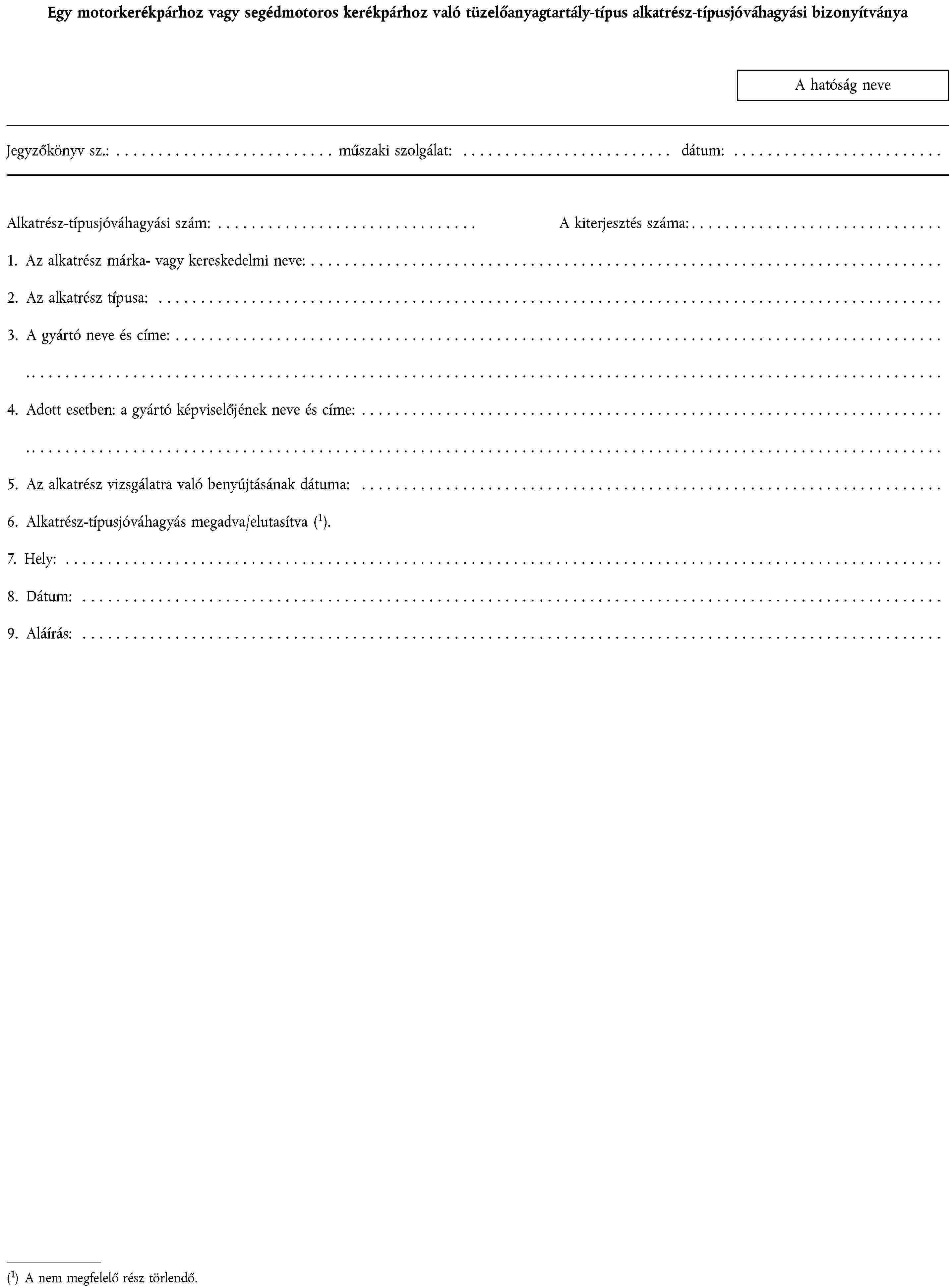 1. ALKATRÉSZ-TÍPUSJÓVÁHAGYÁSI KÉRELEM