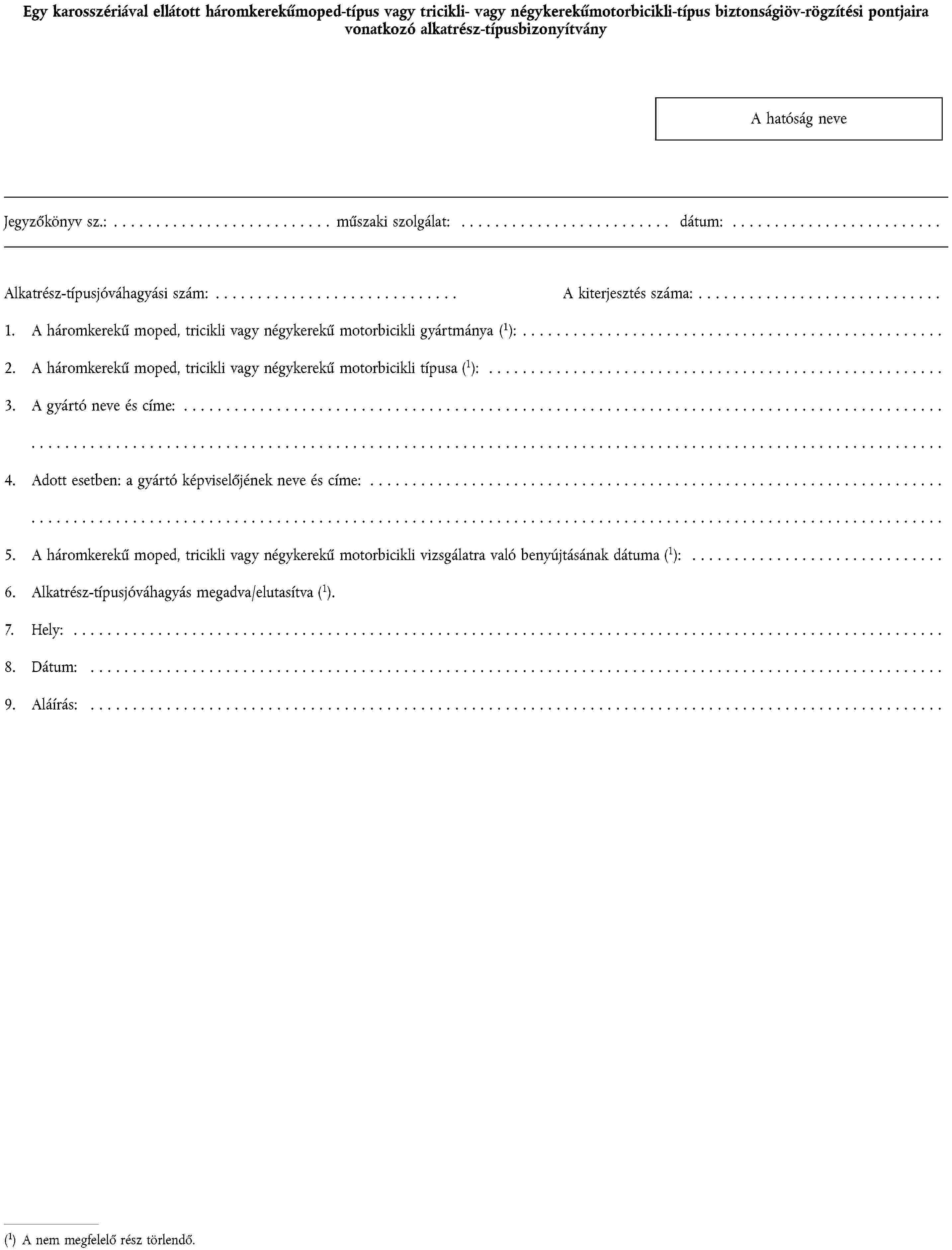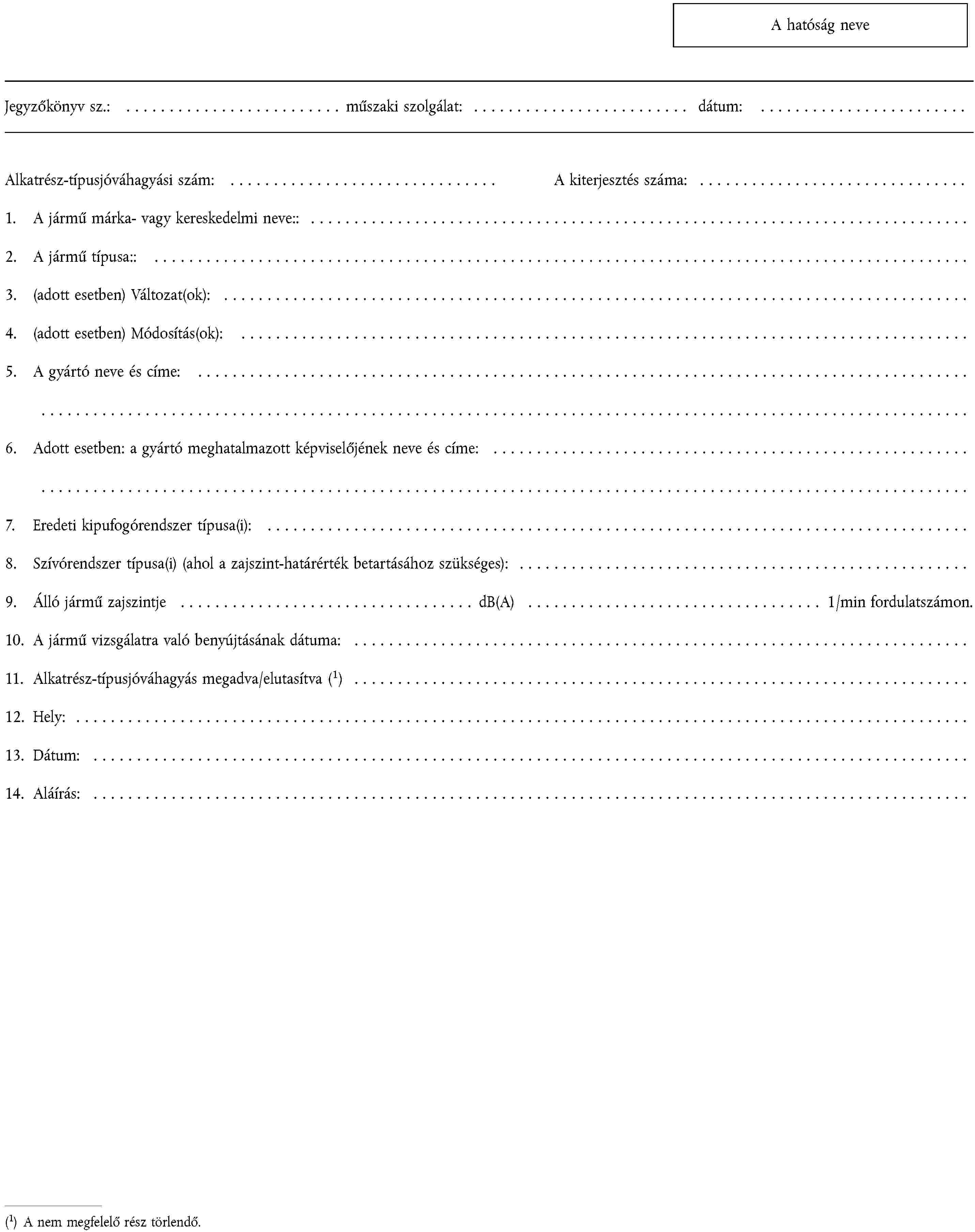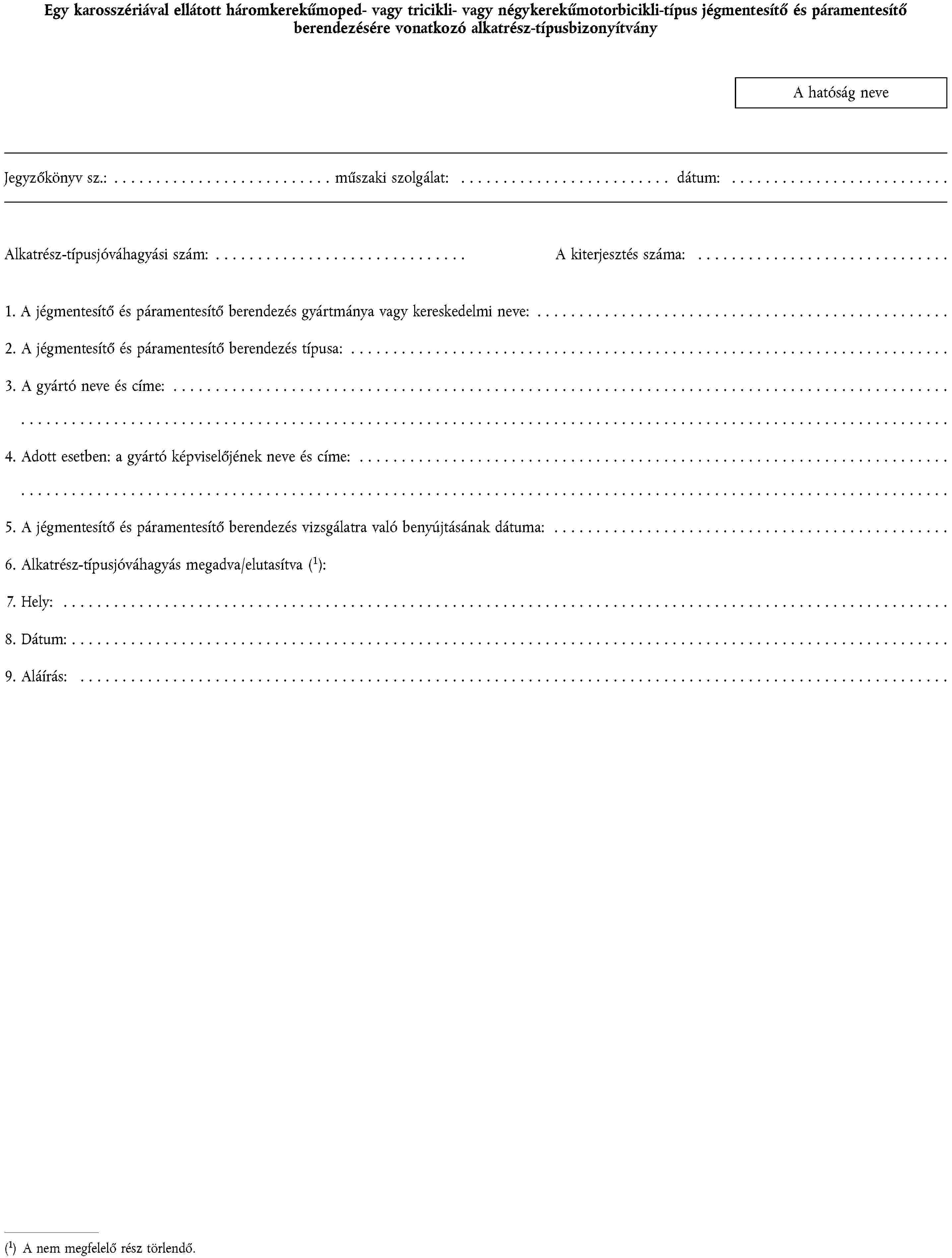 1. ALKATRÉSZ-TÍPUSJÓVÁHAGYÁSI KÉRELEM