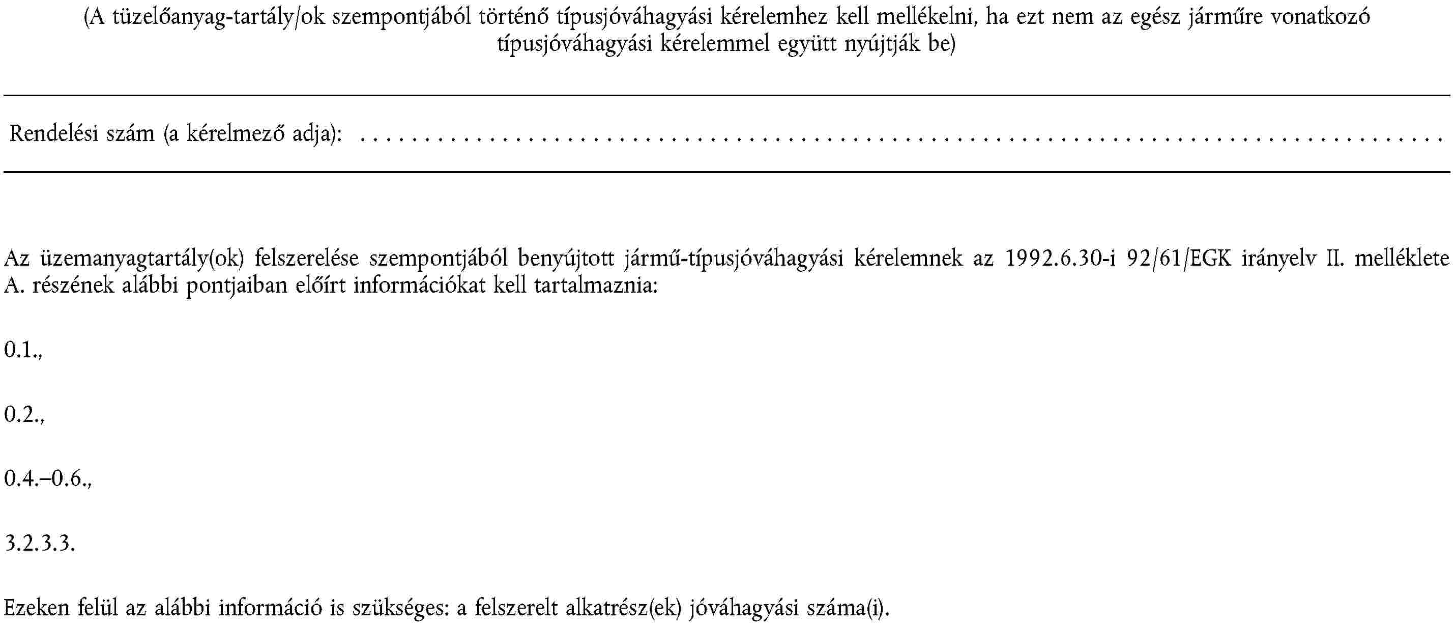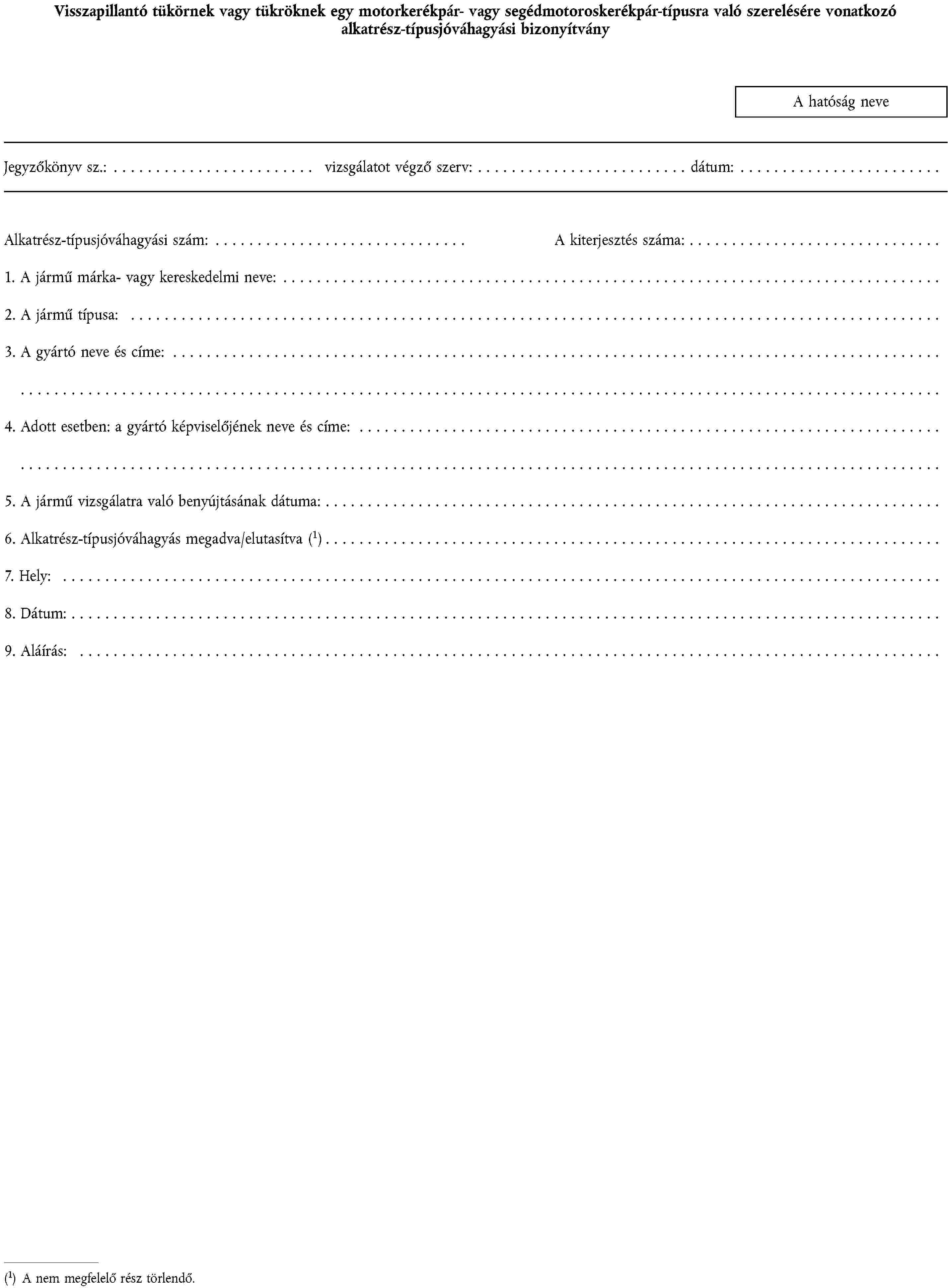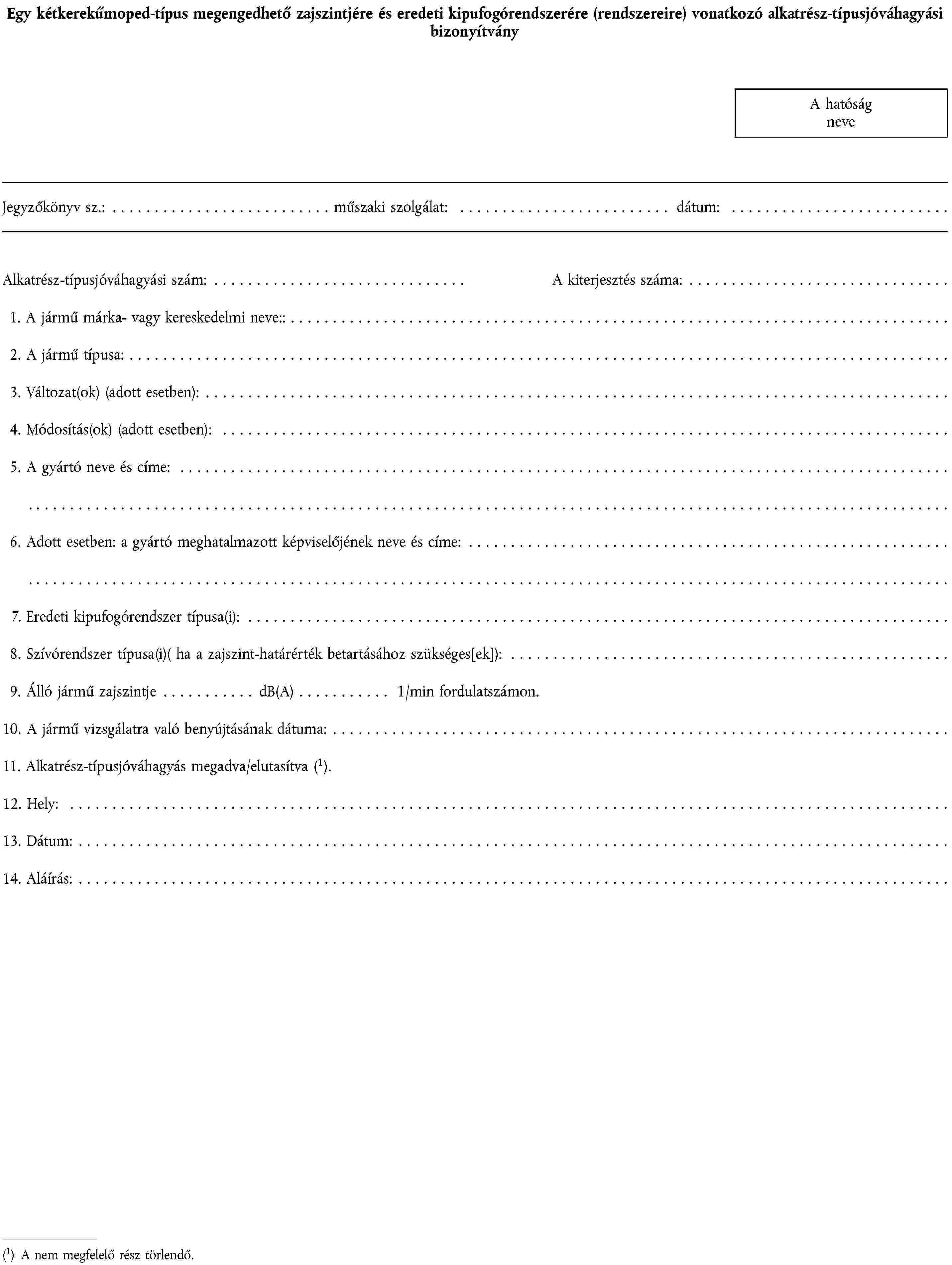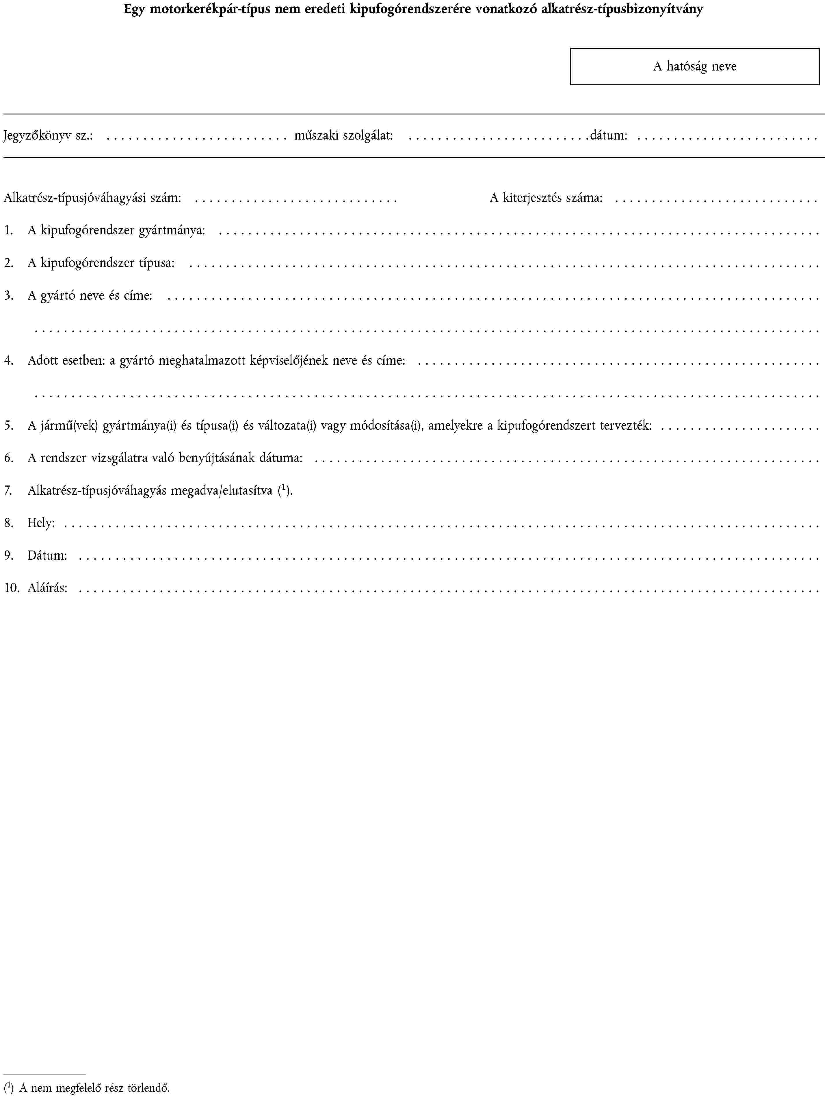 1. ALKATRÉSZ-TÍPUSJÓVÁHAGYÁSI KÉRELEM