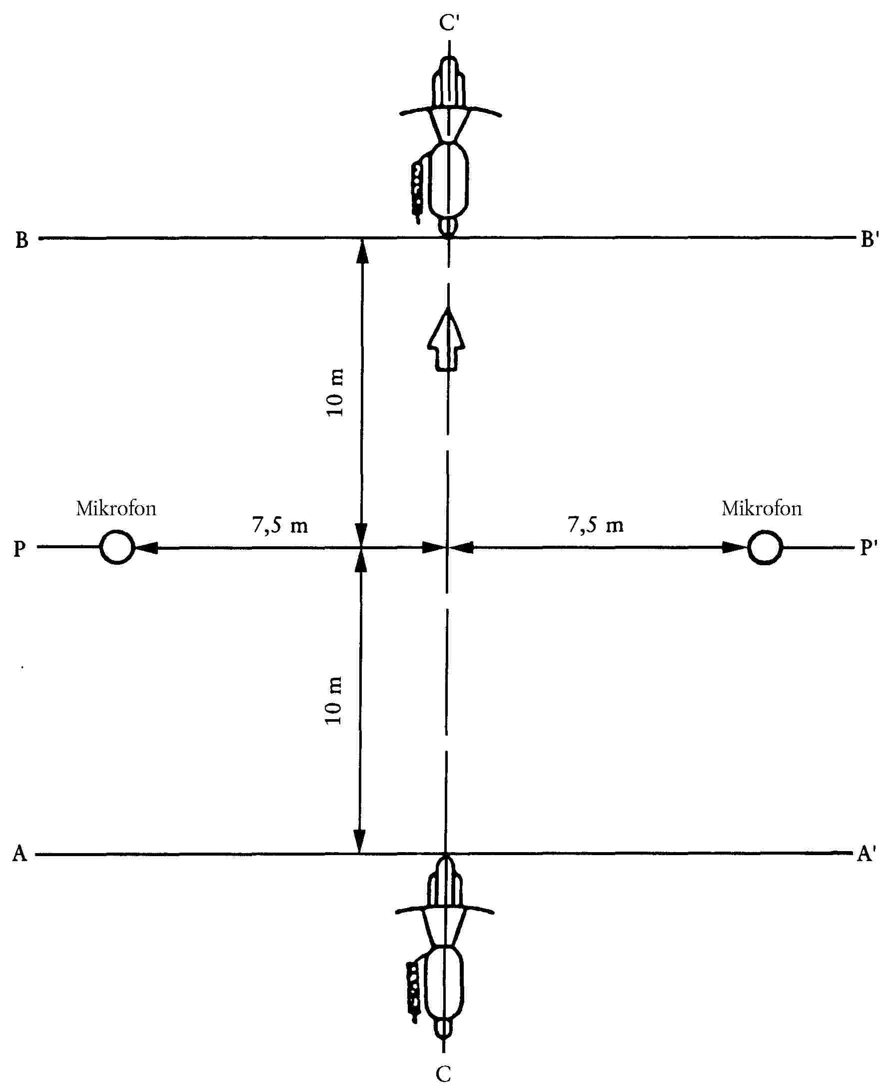 ( 44 ) 50 V a 25 méterre lévő ernyőn 375 mm-rel van a HV alatt, a v-v függőleges egyenesen.