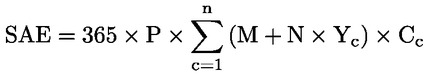 Yc = Veq c = nettó térfogatc × ((12 - Tc)/30) × CC;