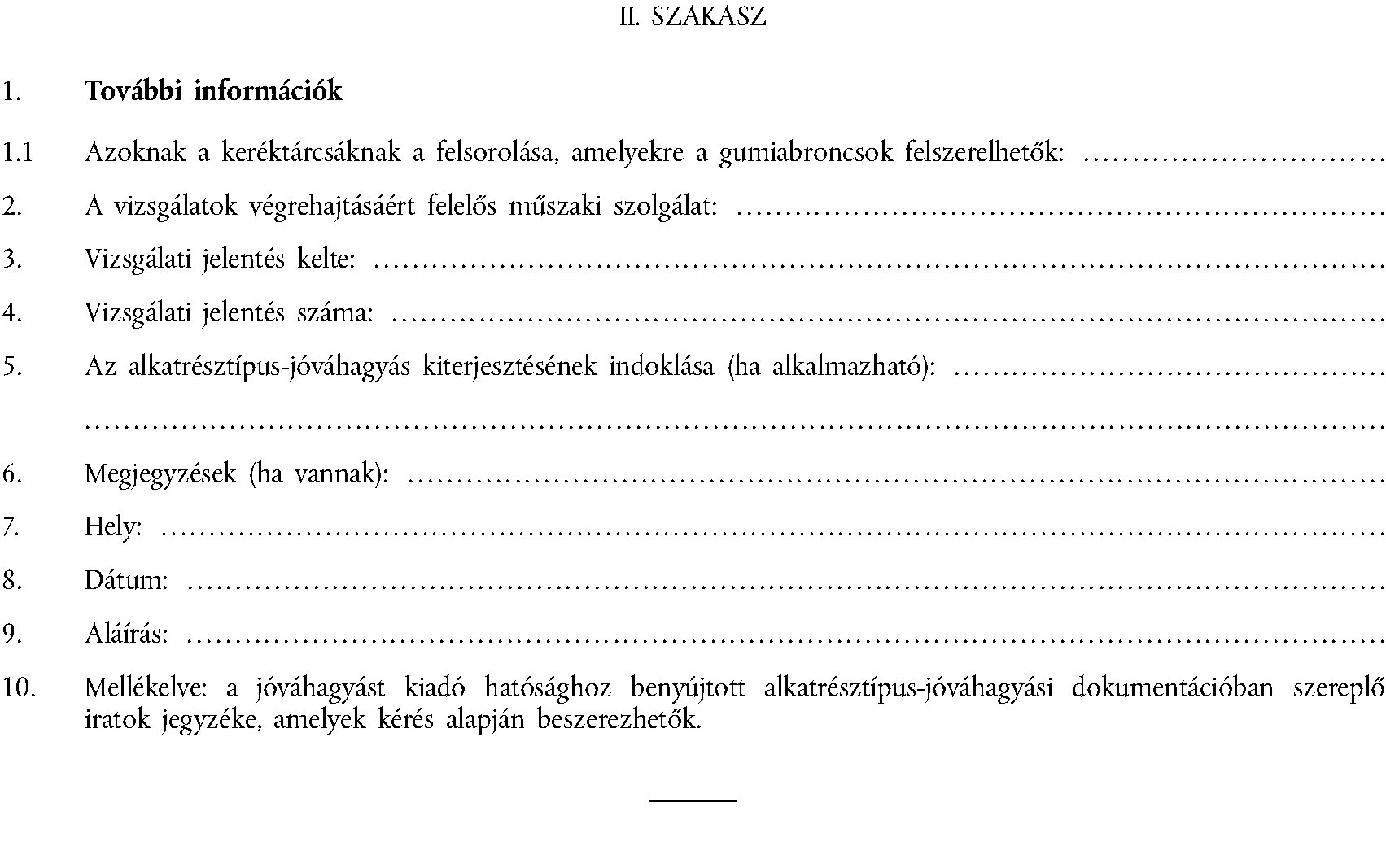 2. függelék | EK-típusbizonyítvány (gumiabroncsok) |