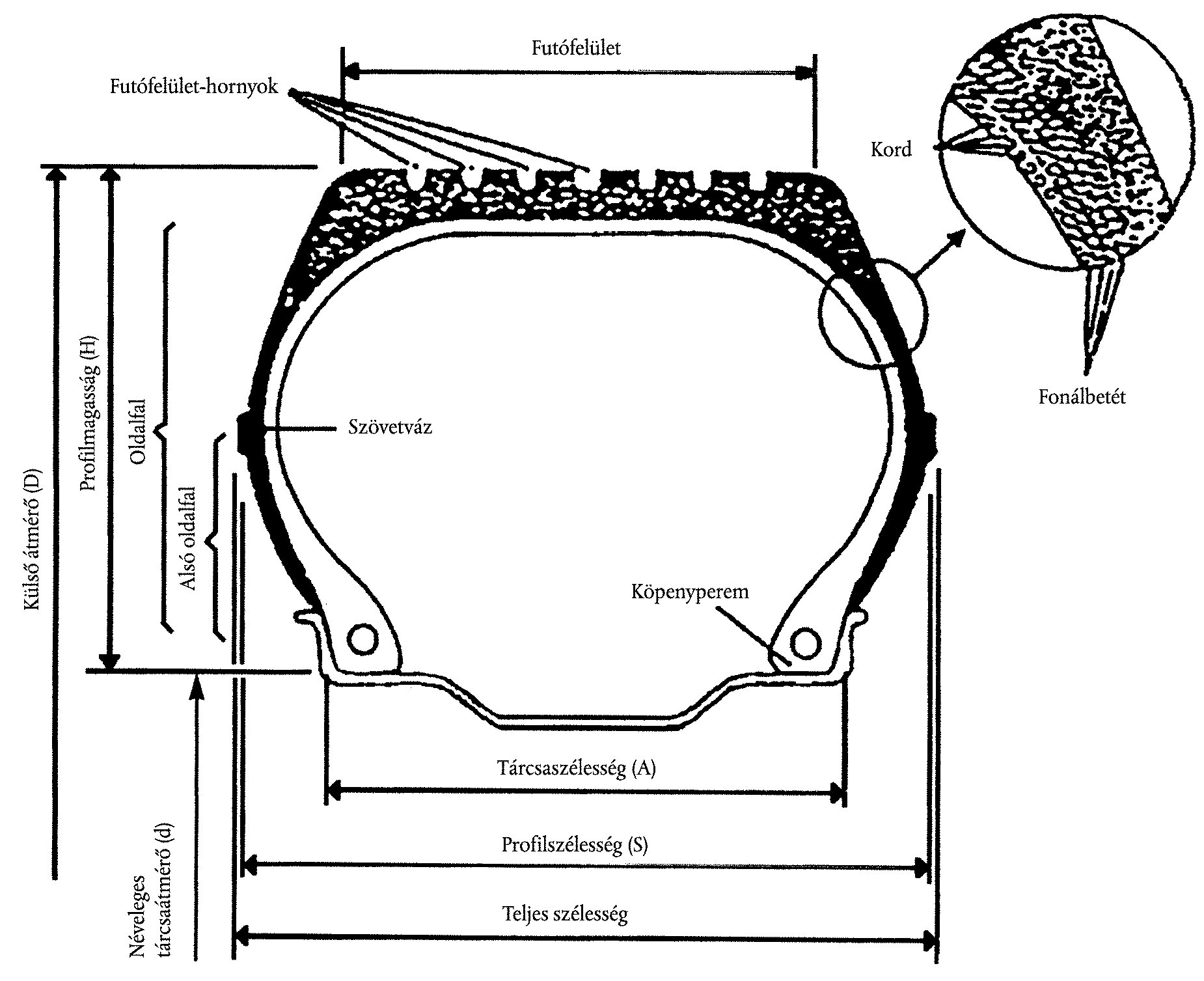 5. függelék | Bizonyos méretű gumik abroncsának, külső átmérőjének és keresztmetszete szélességének mérése |