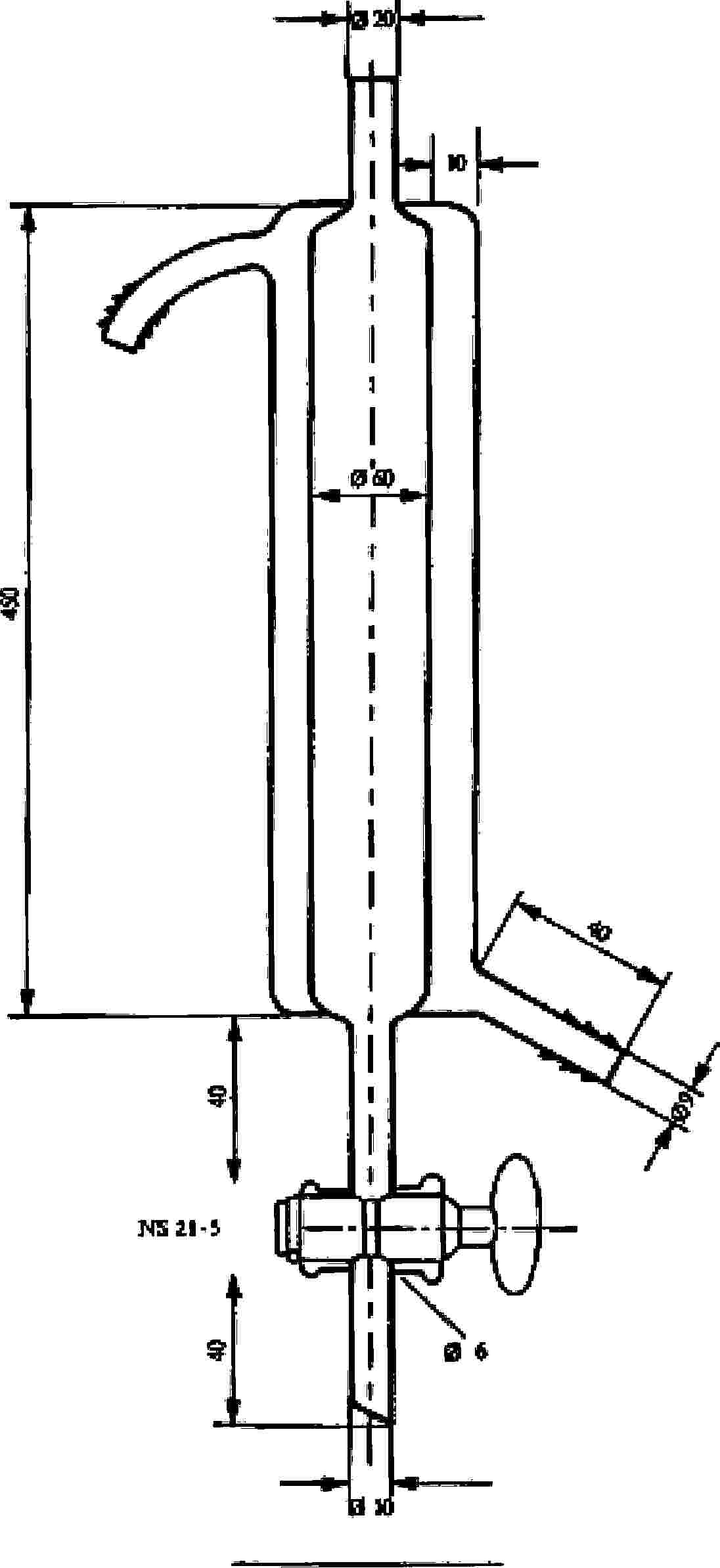 5.3.10. Ioncserélő oszlop fűtőköpennyel és elzárócsappal: A belső cső átmérője 60 mm, magassága 450 mm (lásd a 4. ábrát)