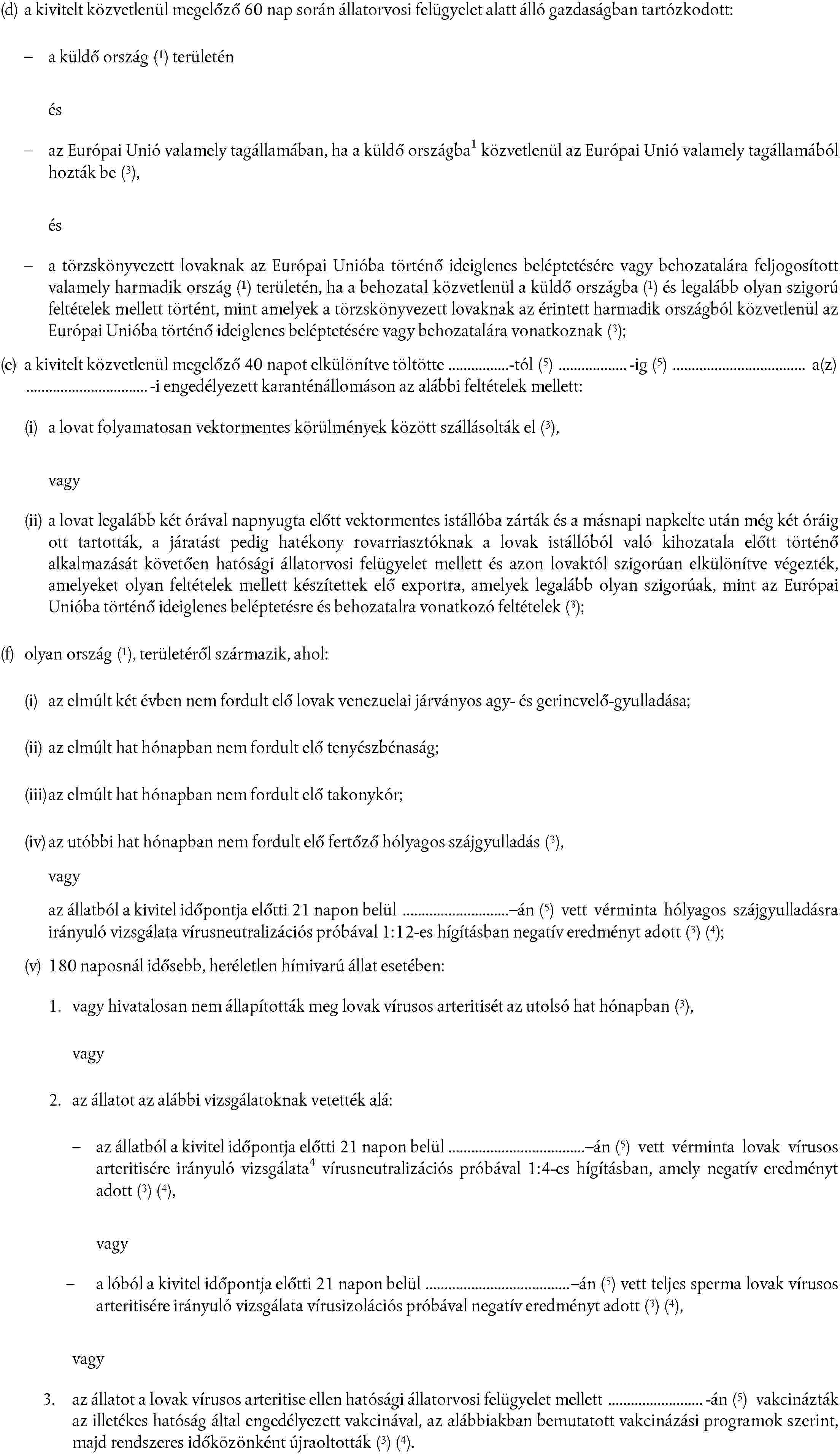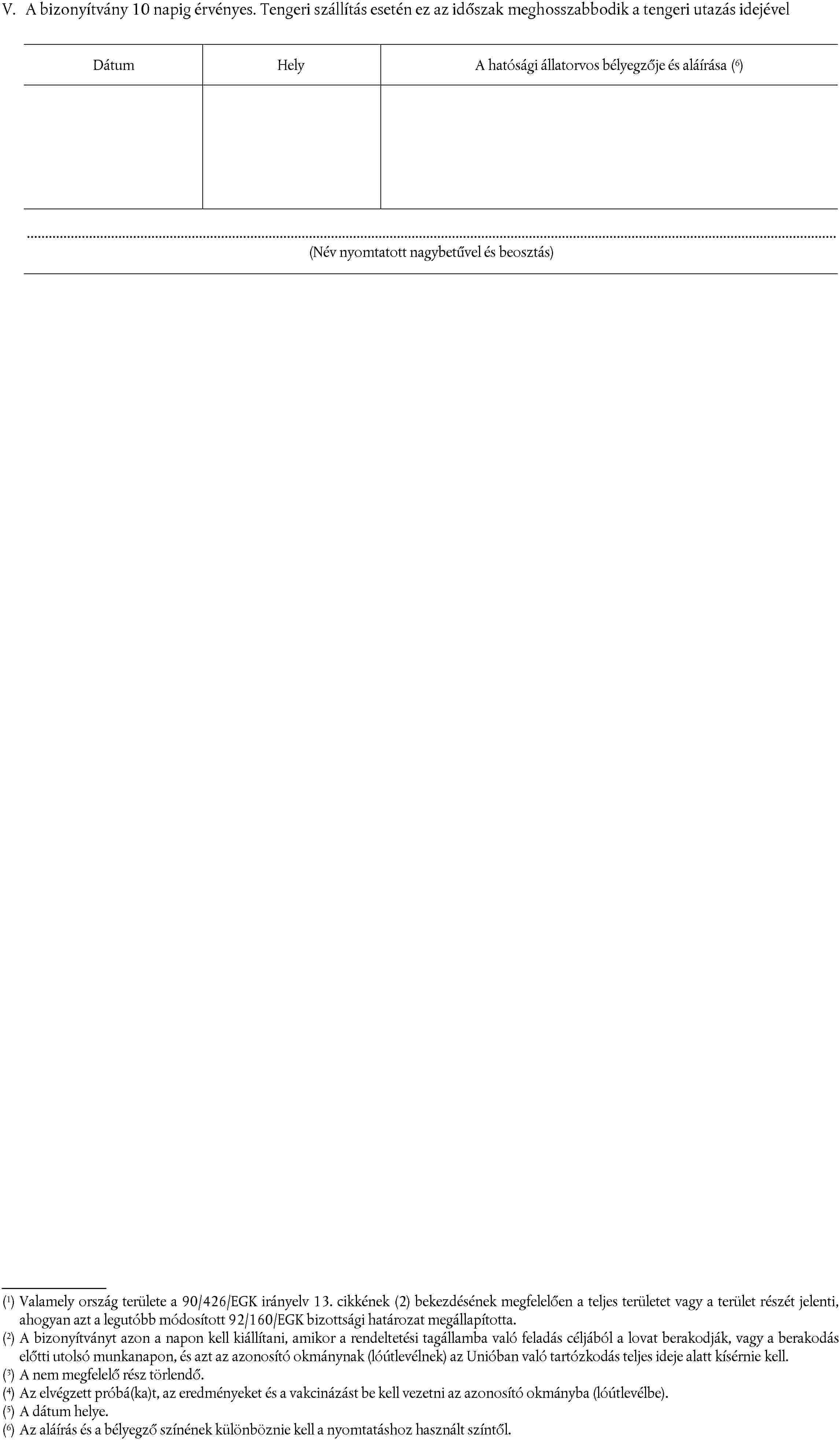 (5) Továbbá a törzskönyvezett lovak betegségtől mentes területre történő szállítását szükséges engedélykötelessé tenni olyan esetekben, amikor a lovakat nem vakcinázták, vagy állat-egészségügyi okokból a vakcinázás során nem tartották be a gyártó valamennyi utasítását.