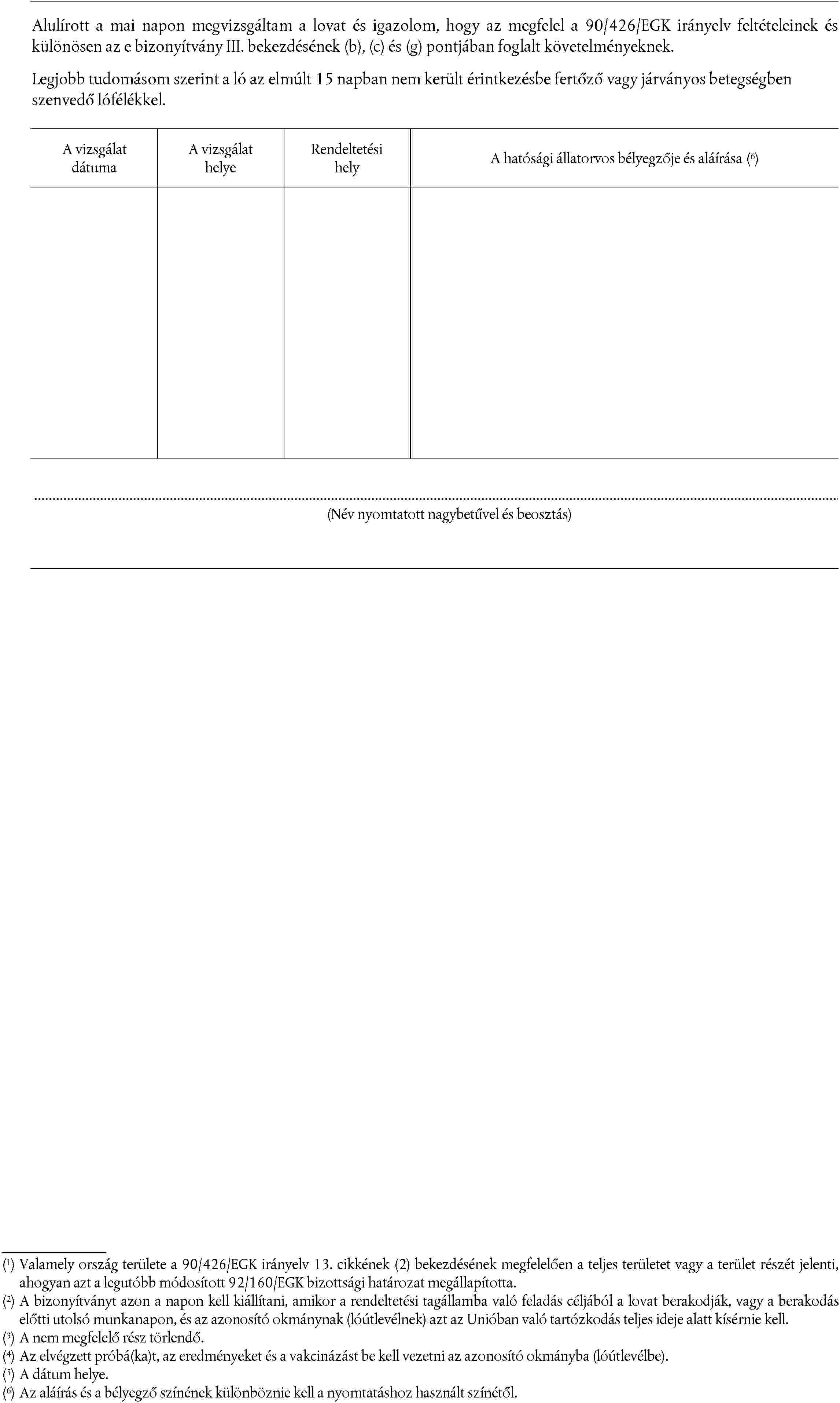 (1) A 92/260/EGK bizottsági határozat ( 2 ) megállapítja a törzskönyvezett lovak ideiglenes beléptetésére vonatkozó állat-egészségügyi feltételeket és az állatorvosi bizonyítvány kiállítását.