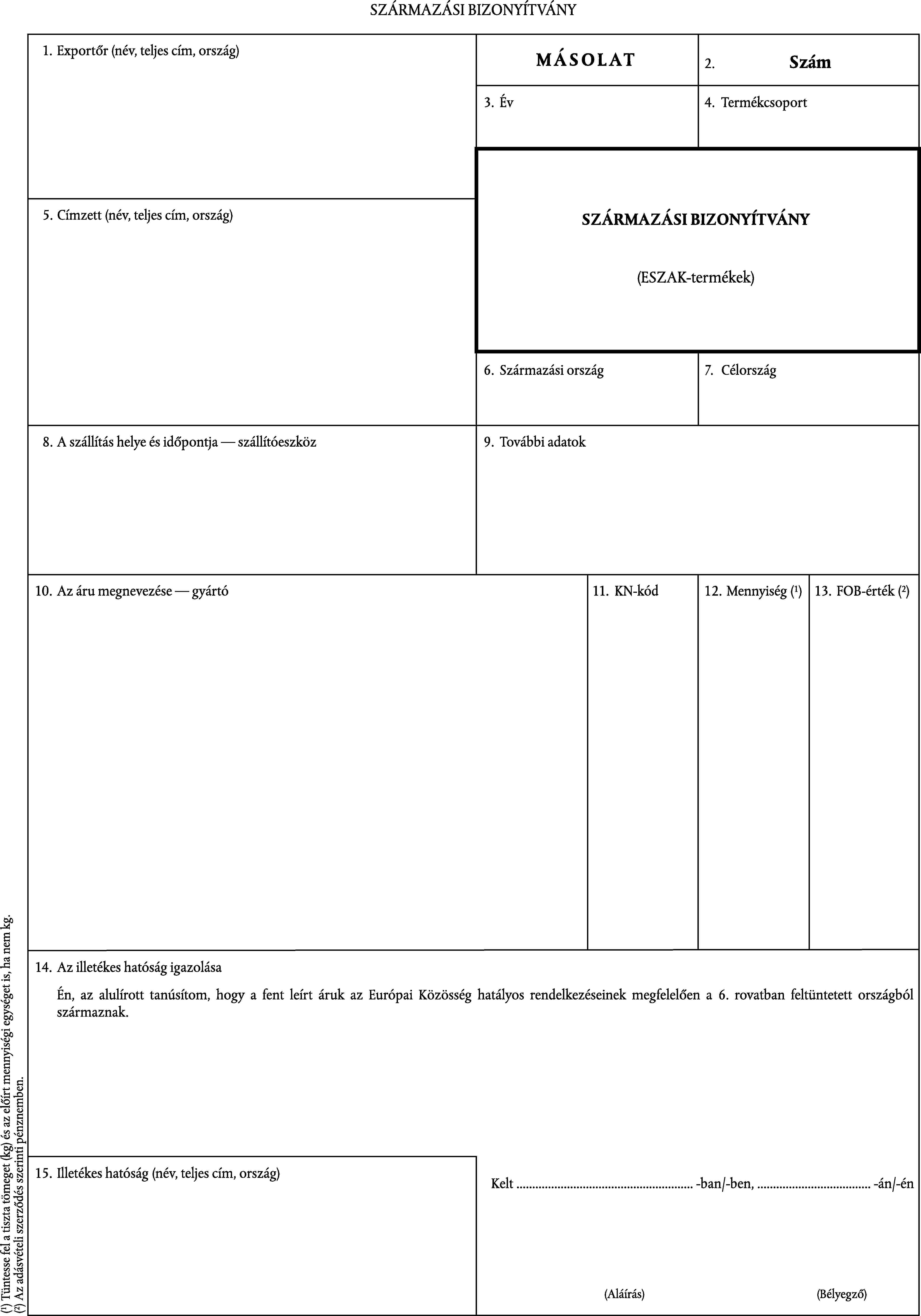 Megjegyzések: SA és SB termékkategóriák. SA1–SA6 és SB1–SB3 termékcsoportok. |