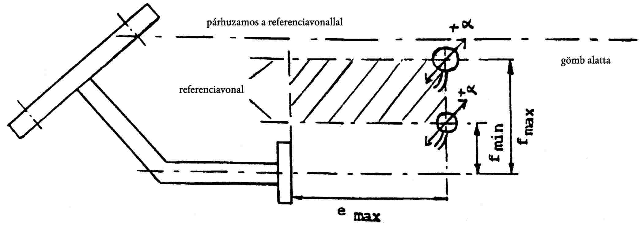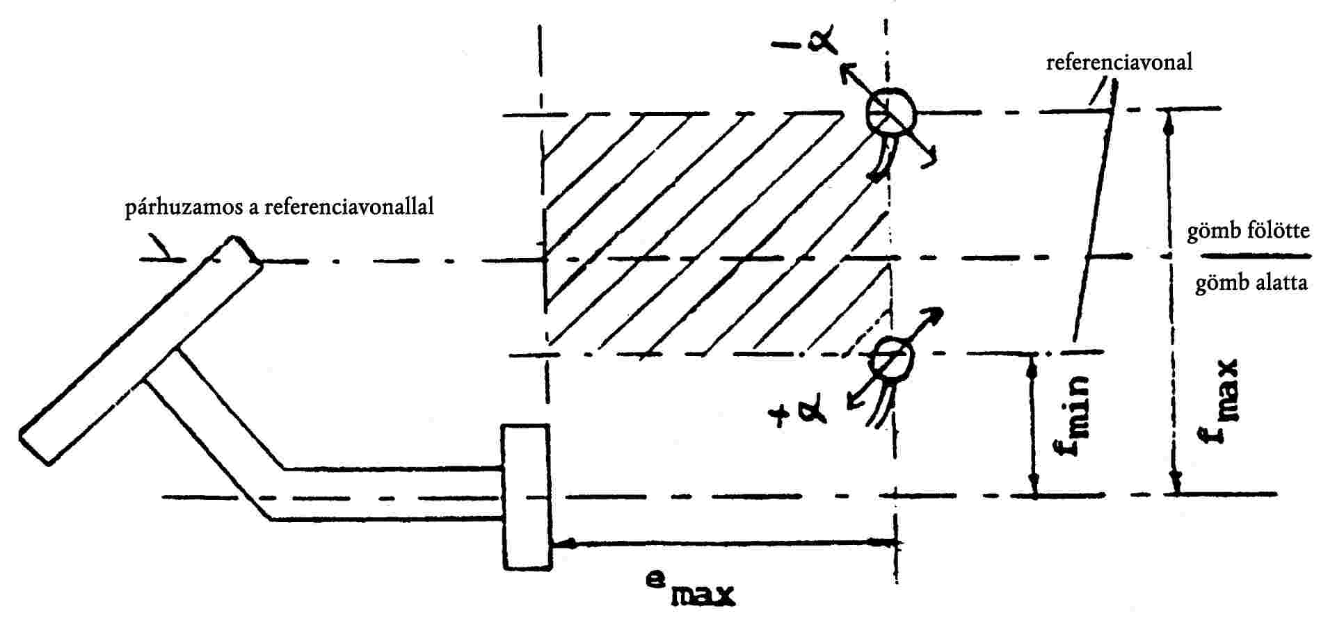 b) függőlegesen α = 10°-kal elbillent felfelé vagy lefelé (lásd 30. ábra),