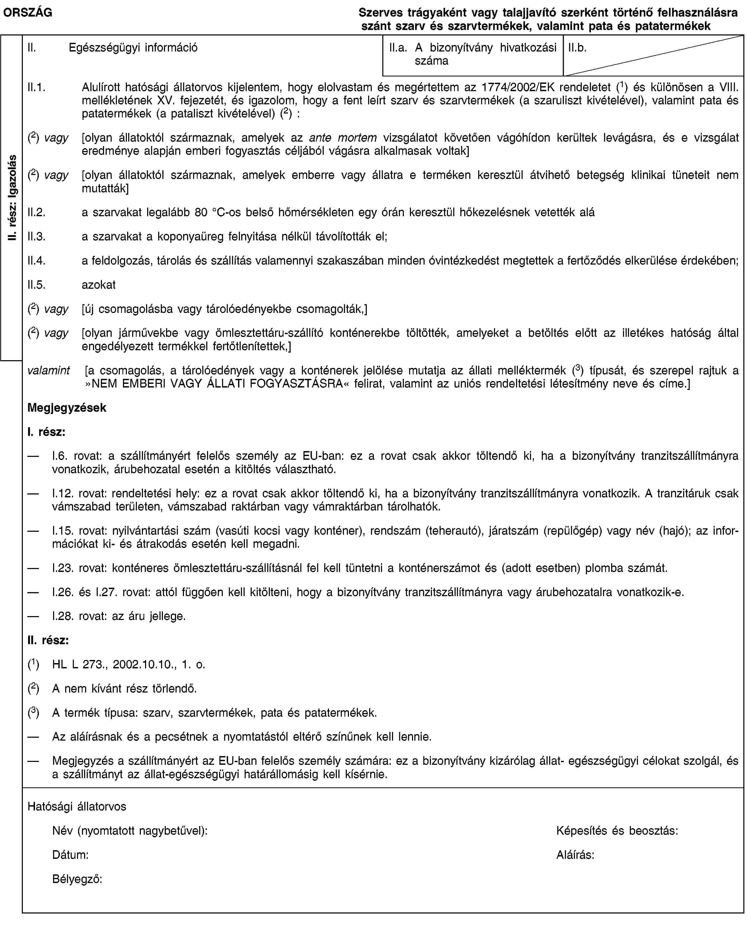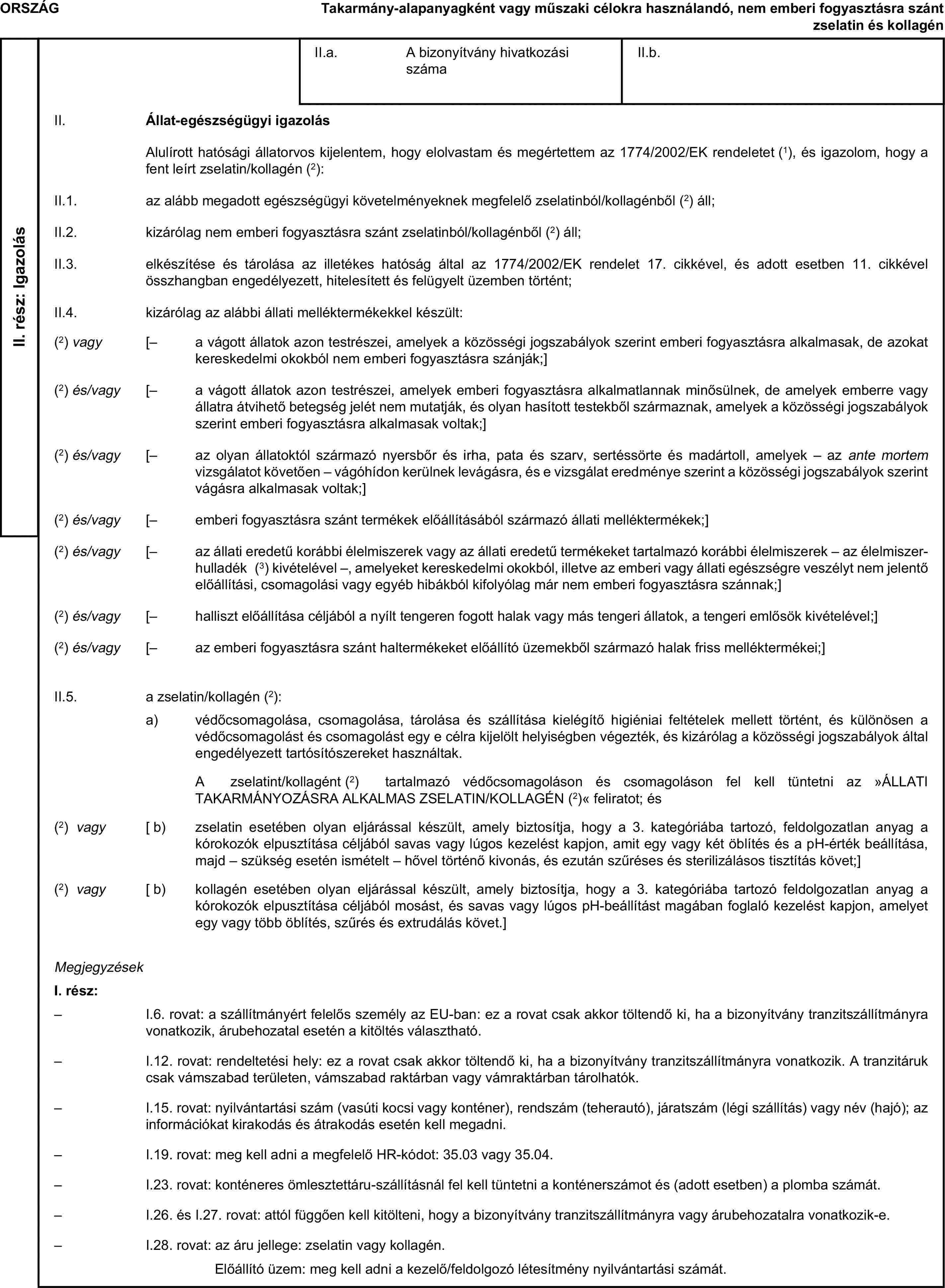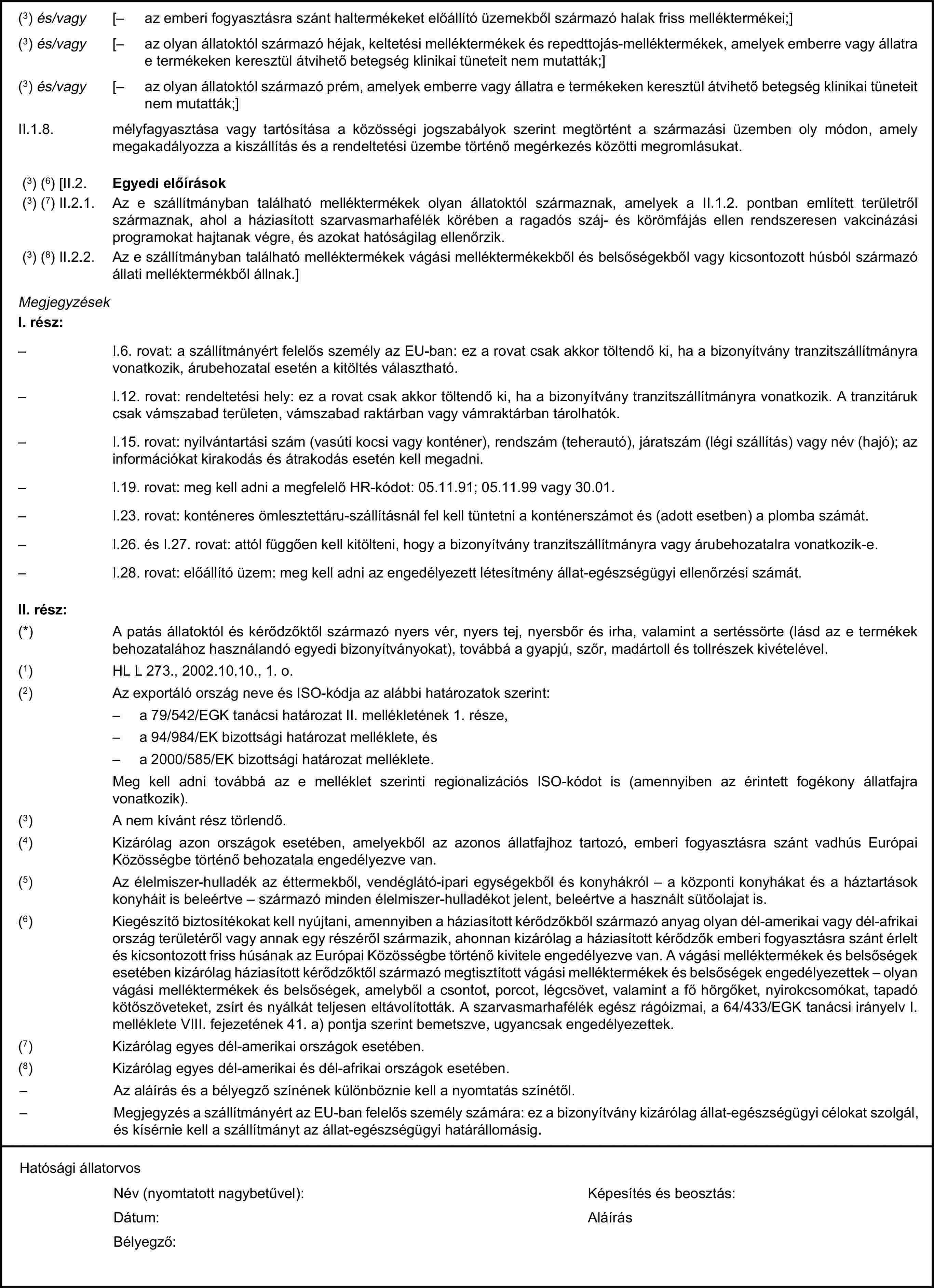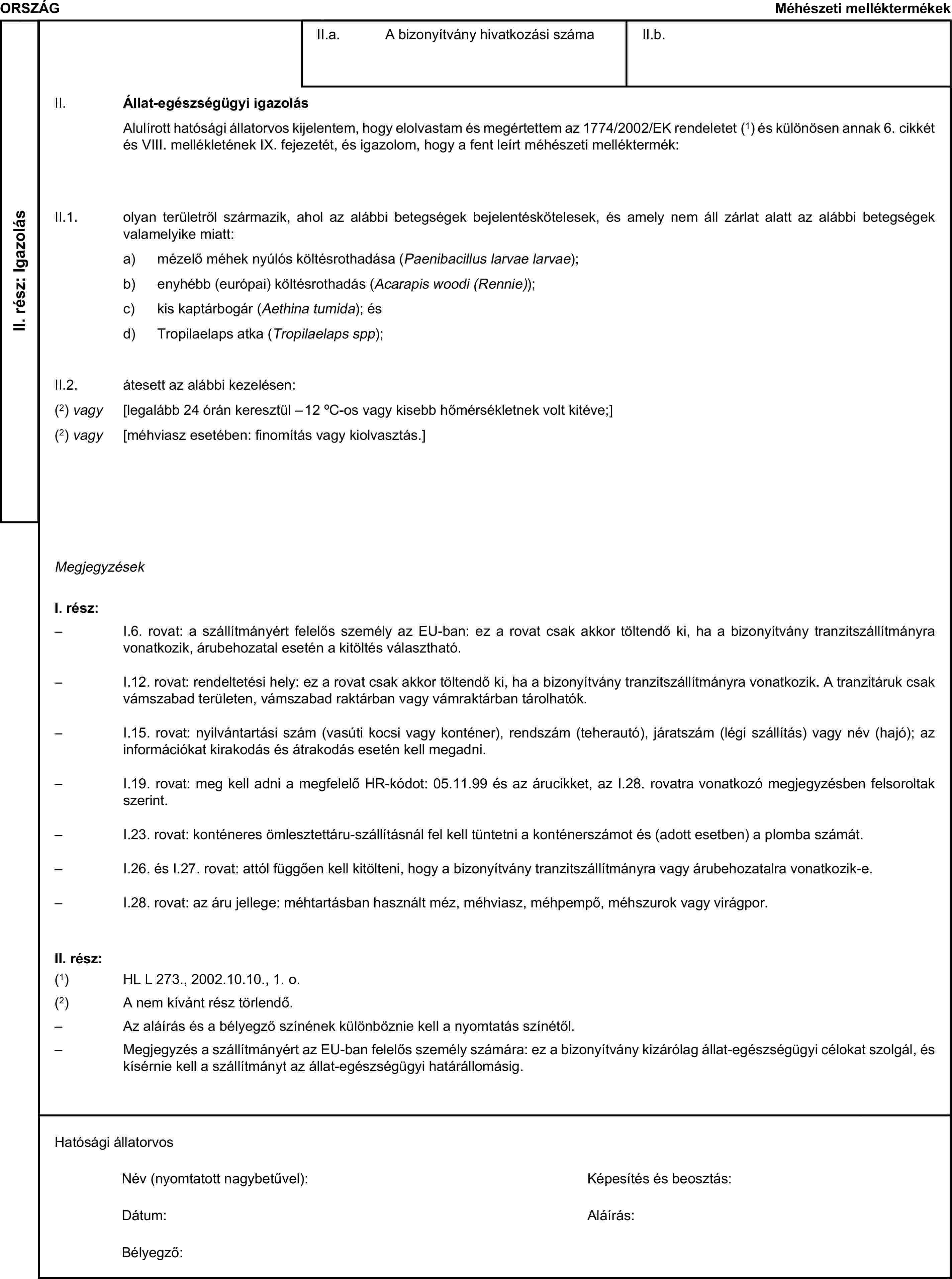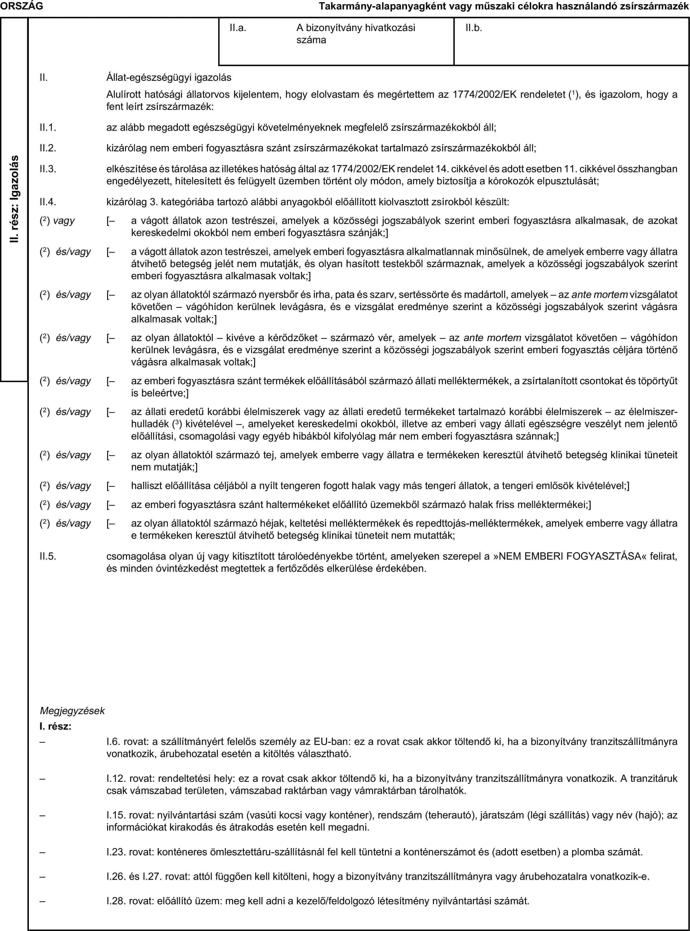 [1] A dokumentum eredetije megtekinthető CELEX: 32002R1774 - https://eur-lex.europa.eu/legal-content/HU/ALL/?uri=CELEX:32002R1774&locale=hu Utolsó elérhető, magyar nyelvű konszolidált változat CELEX: 02002R1774-20100928 - https://eur-lex.europa.eu/legal-content/HU/ALL/?uri=CELEX:02002R1774-20100928&locale=hu