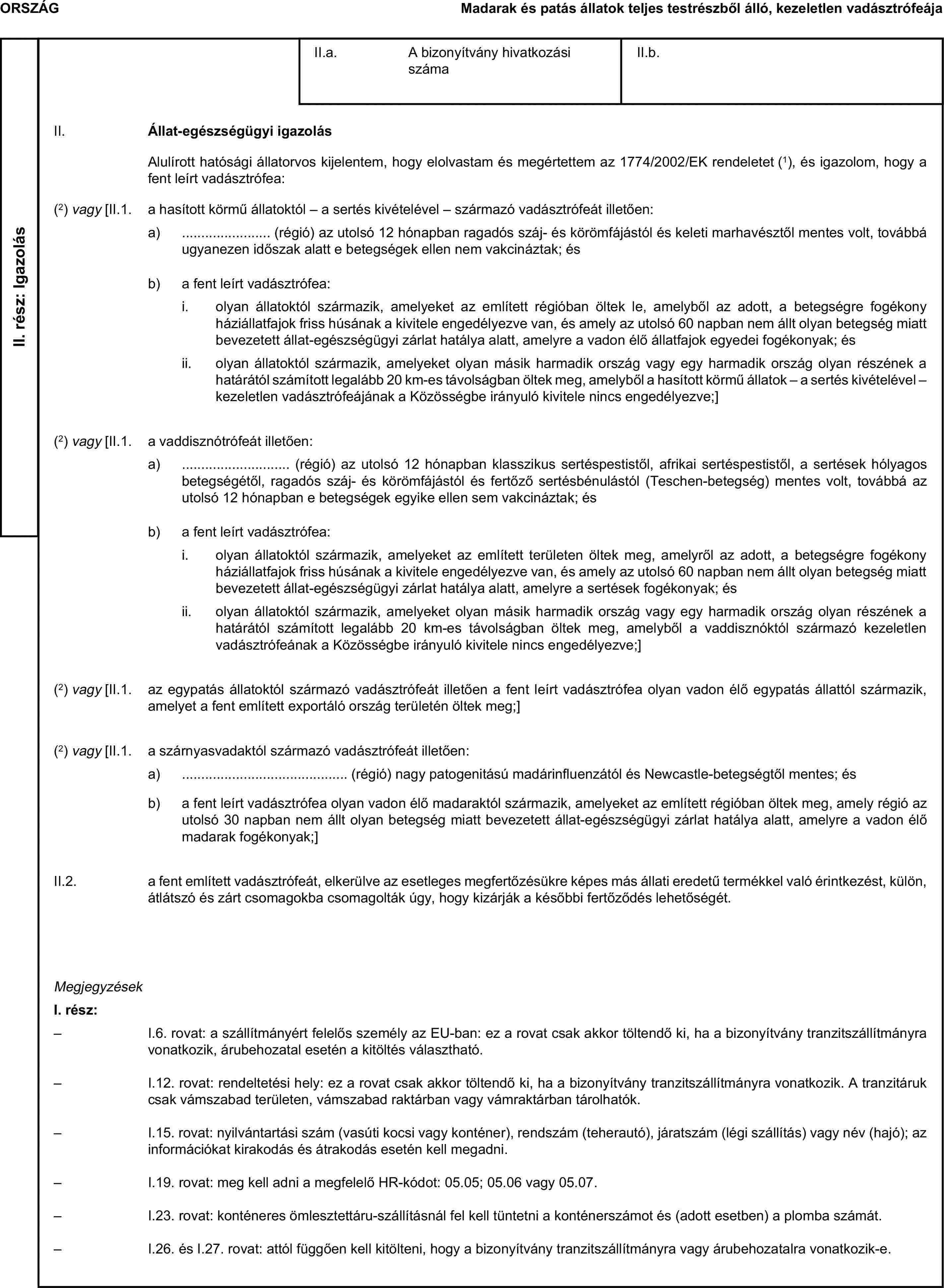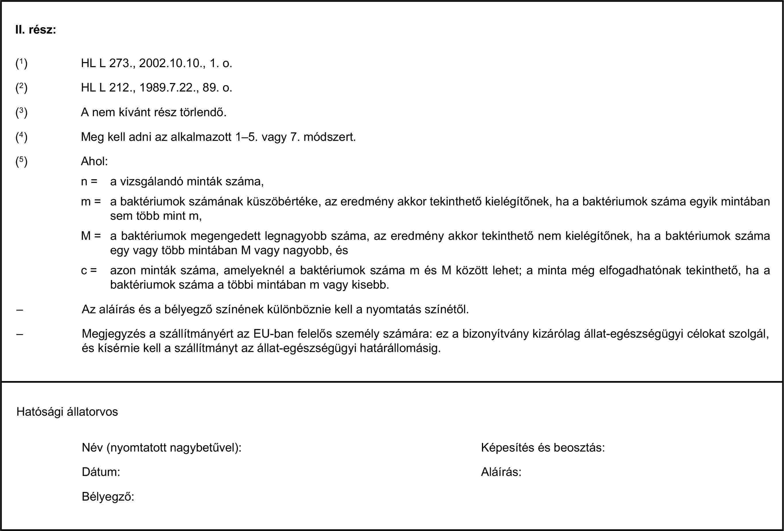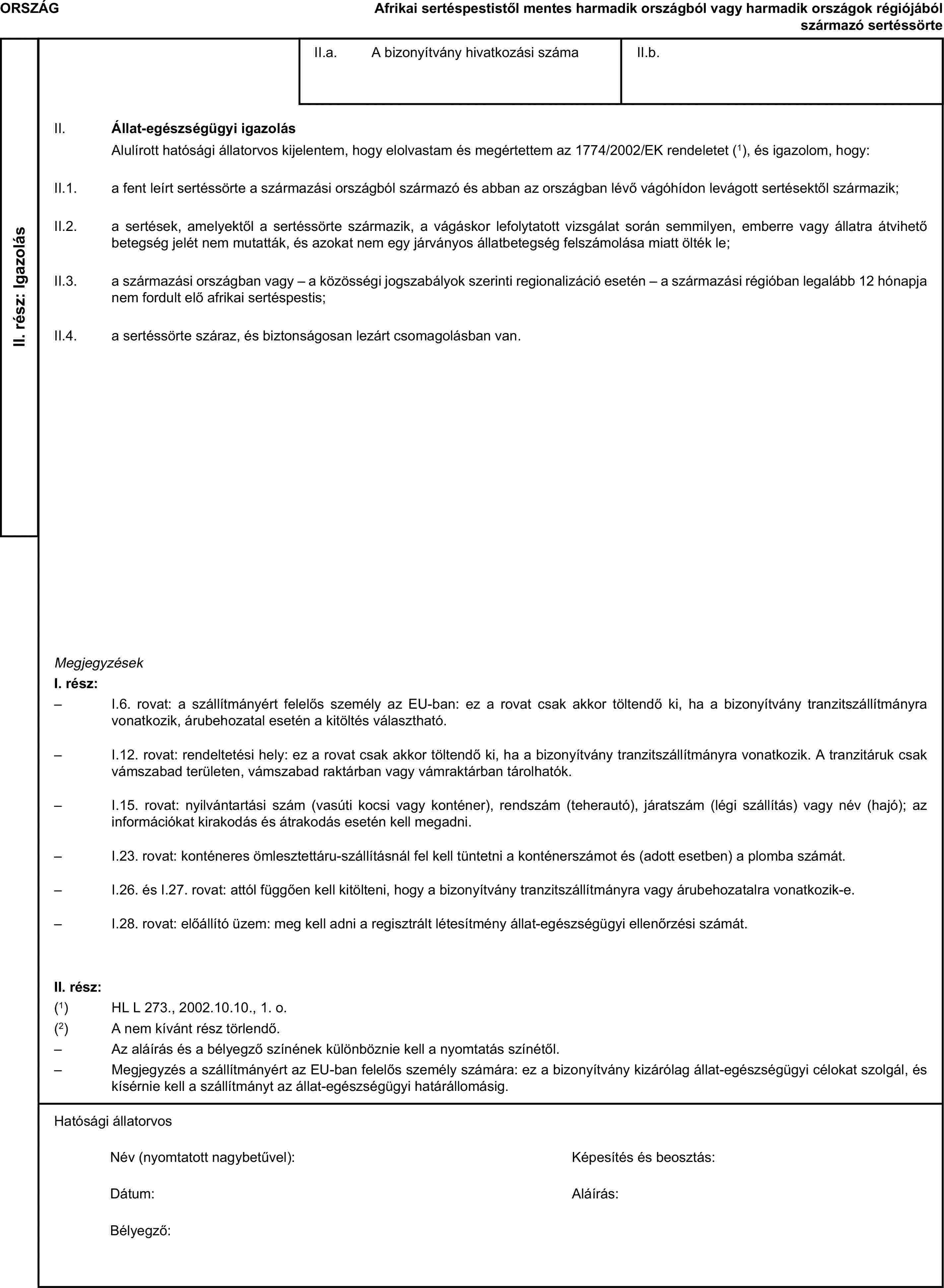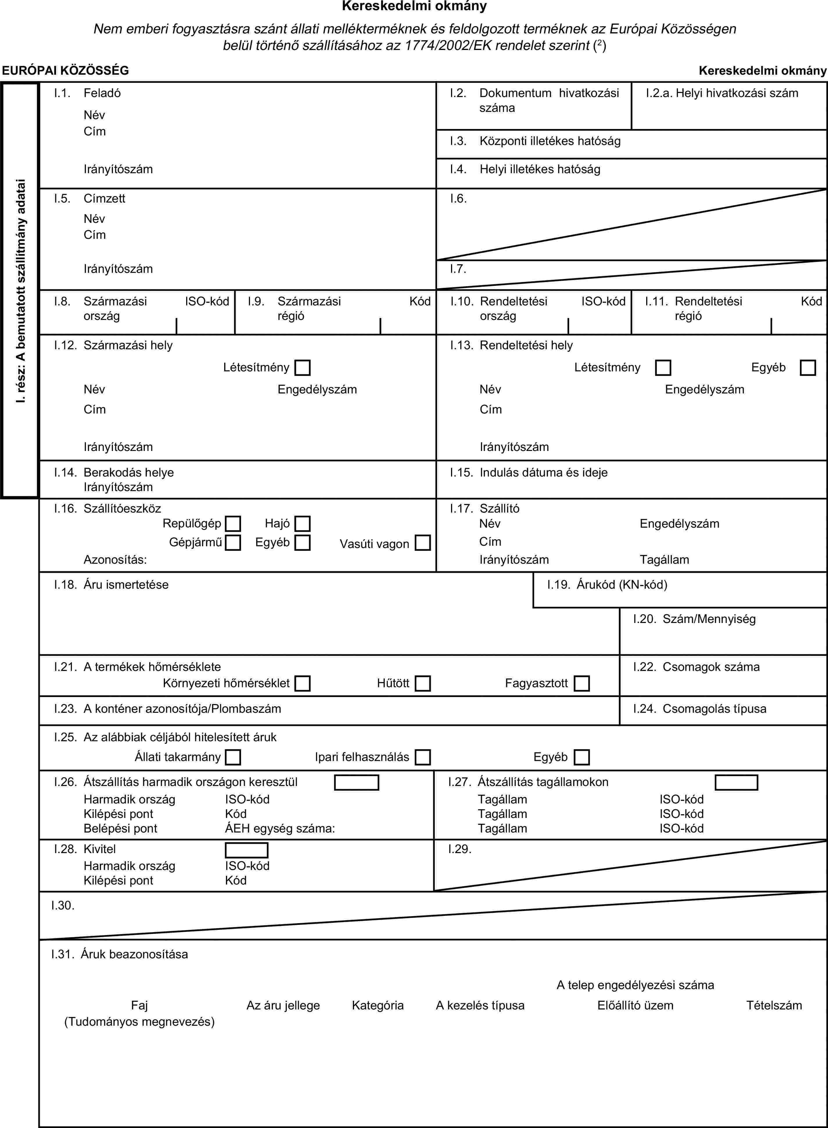 [1] A dokumentum eredetije megtekinthető CELEX: 32002R1774 - https://eur-lex.europa.eu/legal-content/HU/ALL/?uri=CELEX:32002R1774&locale=hu Utolsó elérhető, magyar nyelvű konszolidált változat CELEX: 02002R1774-20100928 - https://eur-lex.europa.eu/legal-content/HU/ALL/?uri=CELEX:02002R1774-20100928&locale=hu