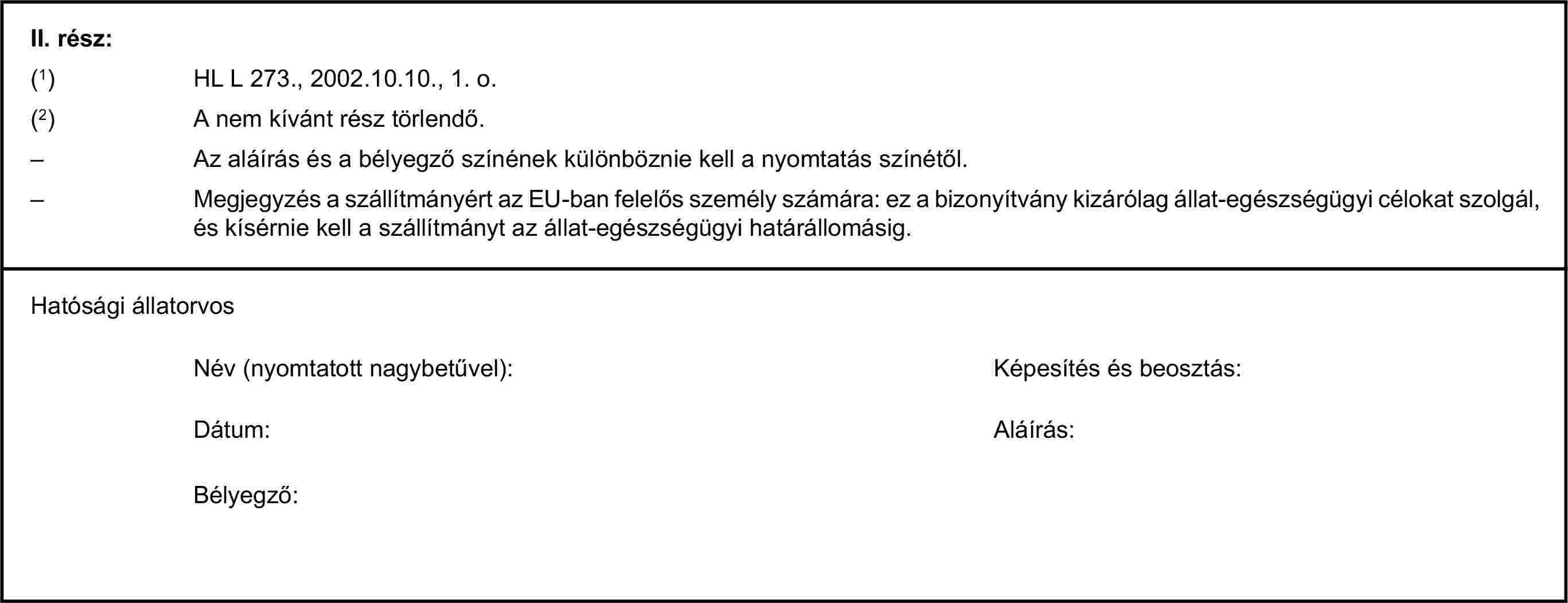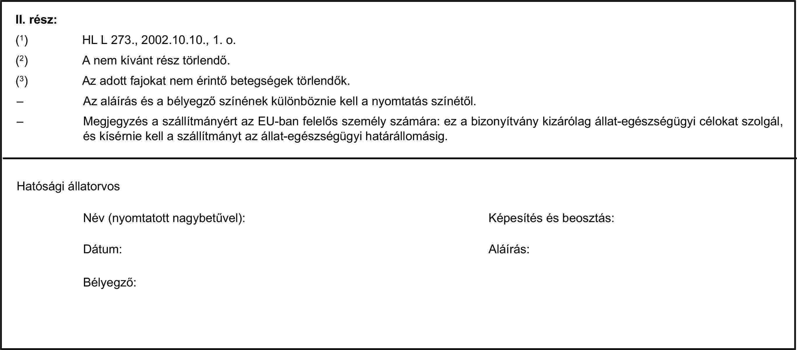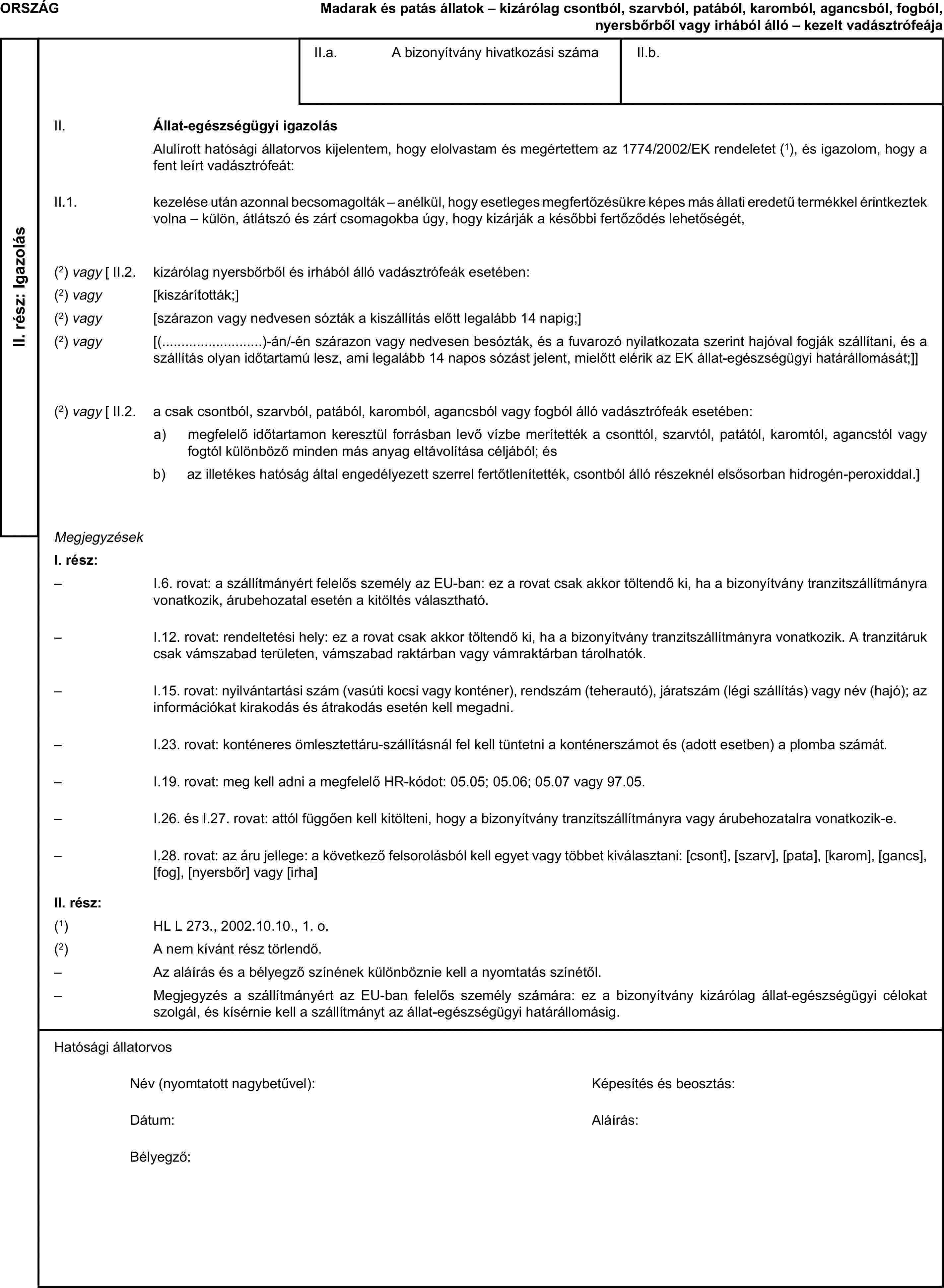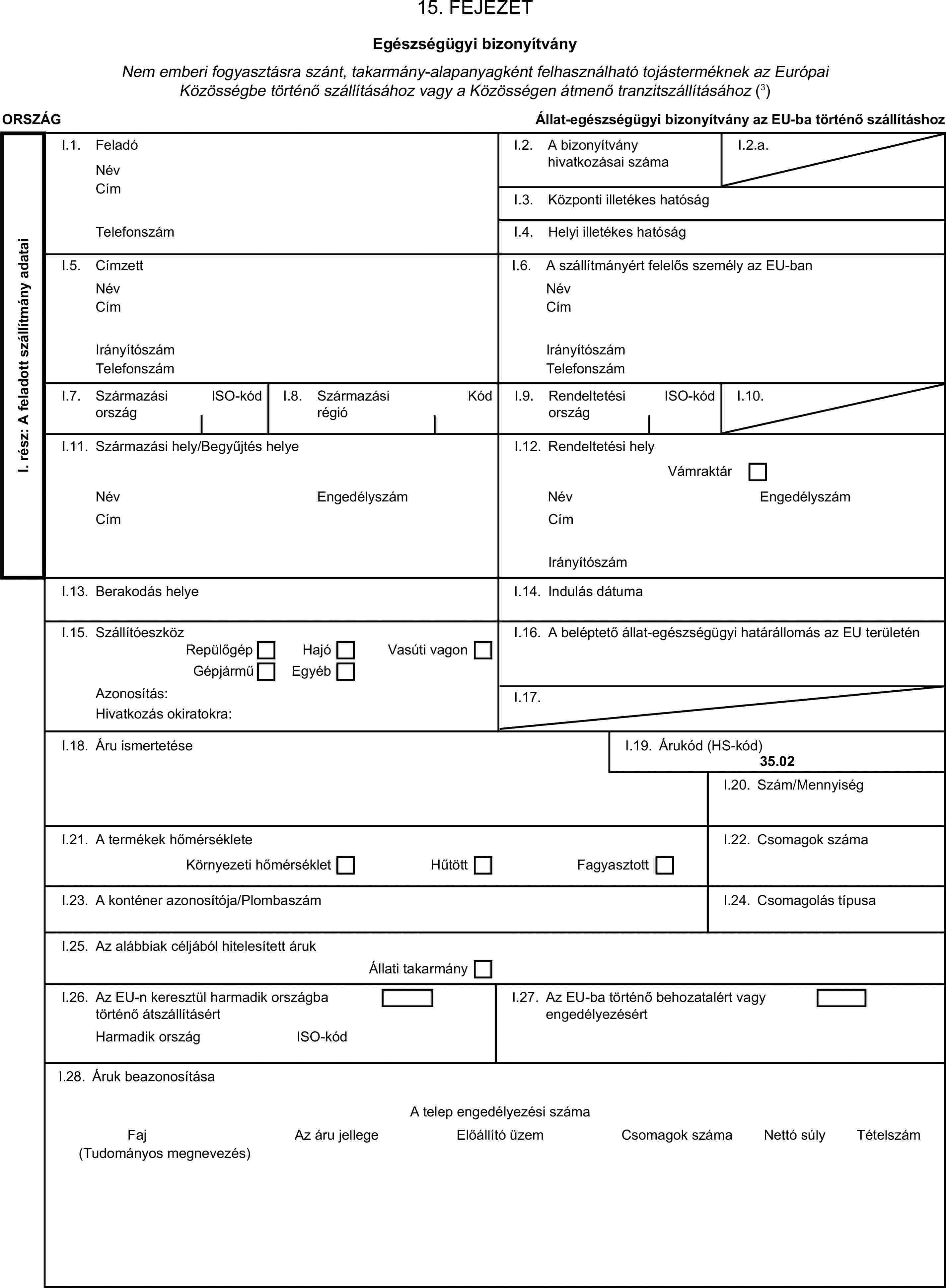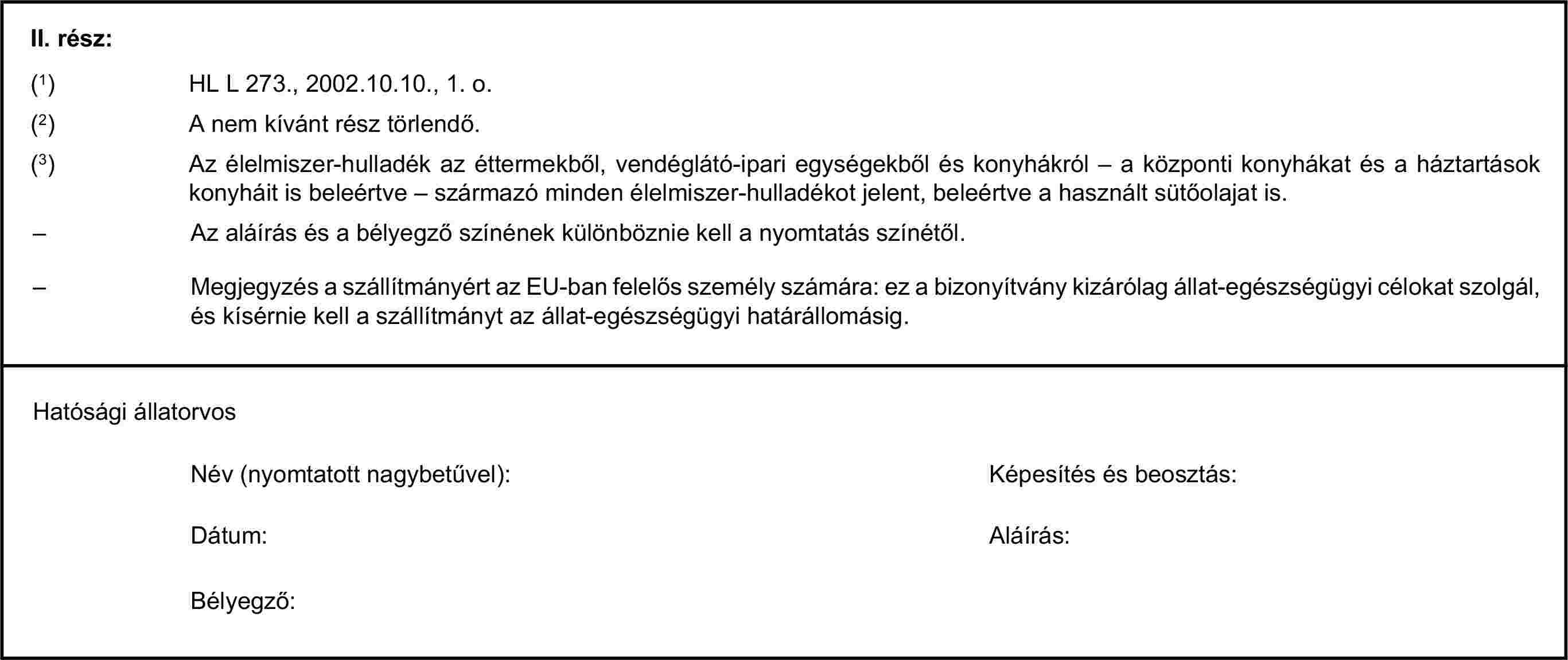 [1] A dokumentum eredetije megtekinthető CELEX: 32002R1774 - https://eur-lex.europa.eu/legal-content/HU/ALL/?uri=CELEX:32002R1774&locale=hu Utolsó elérhető, magyar nyelvű konszolidált változat CELEX: 02002R1774-20100928 - https://eur-lex.europa.eu/legal-content/HU/ALL/?uri=CELEX:02002R1774-20100928&locale=hu