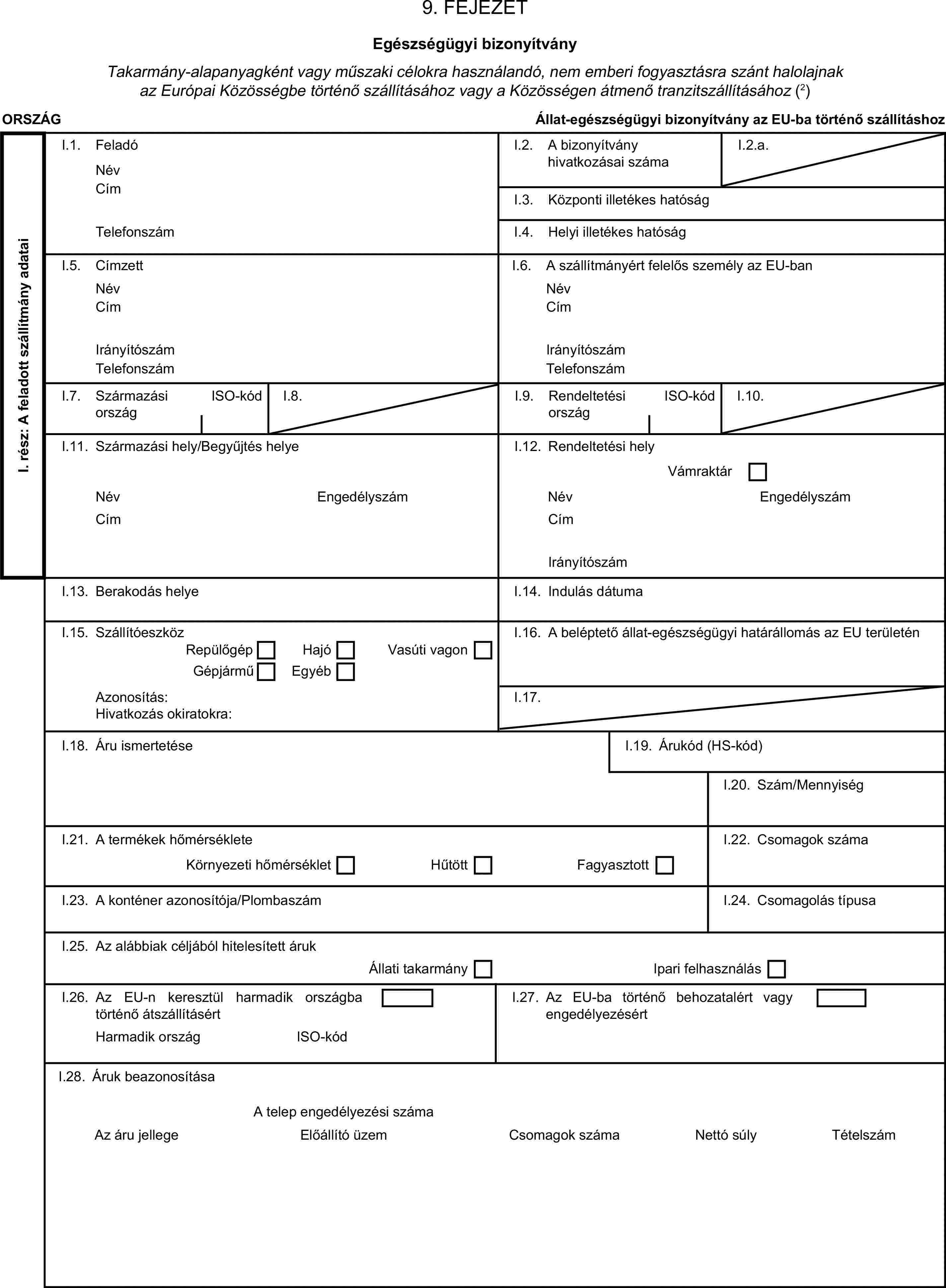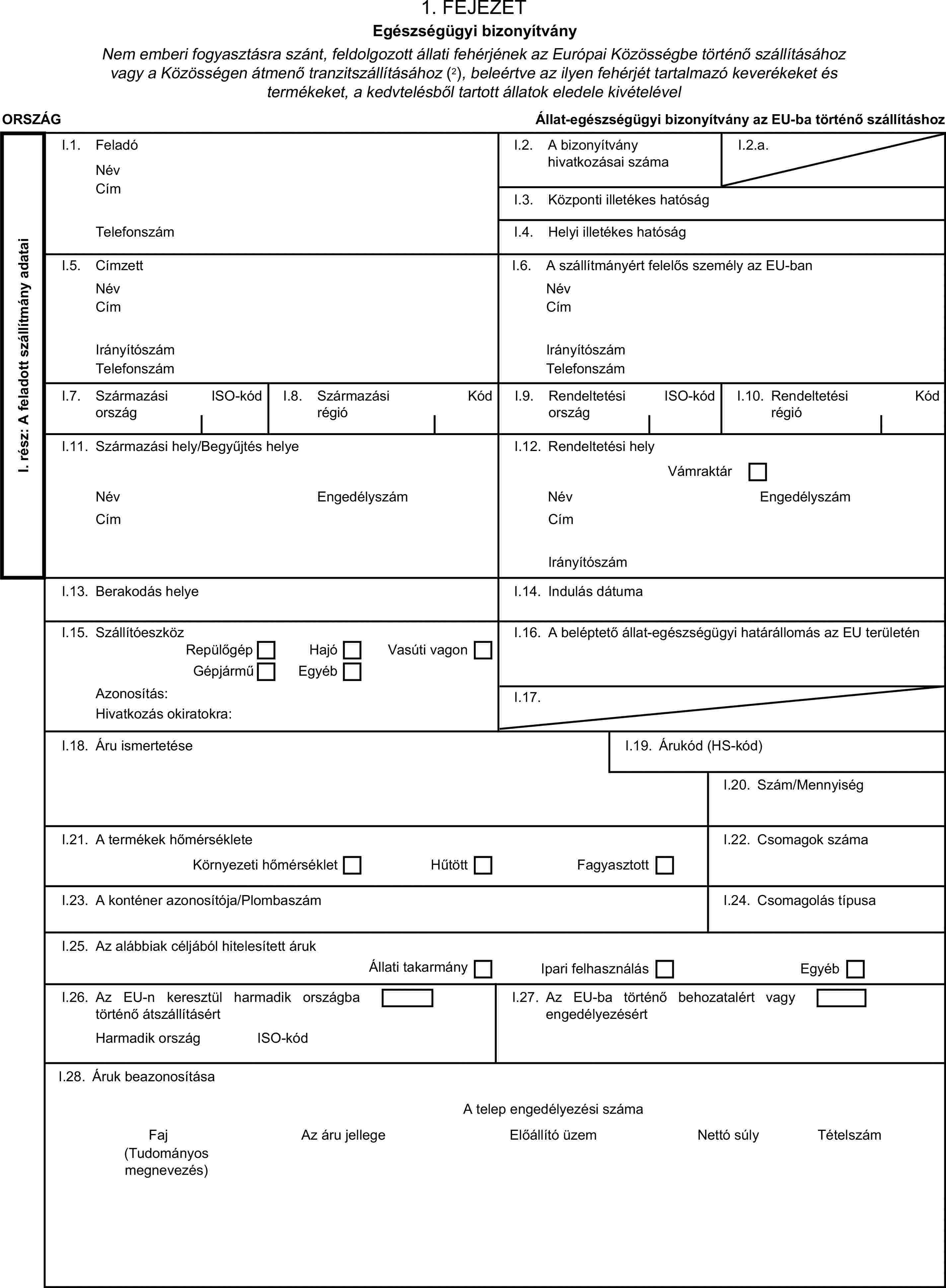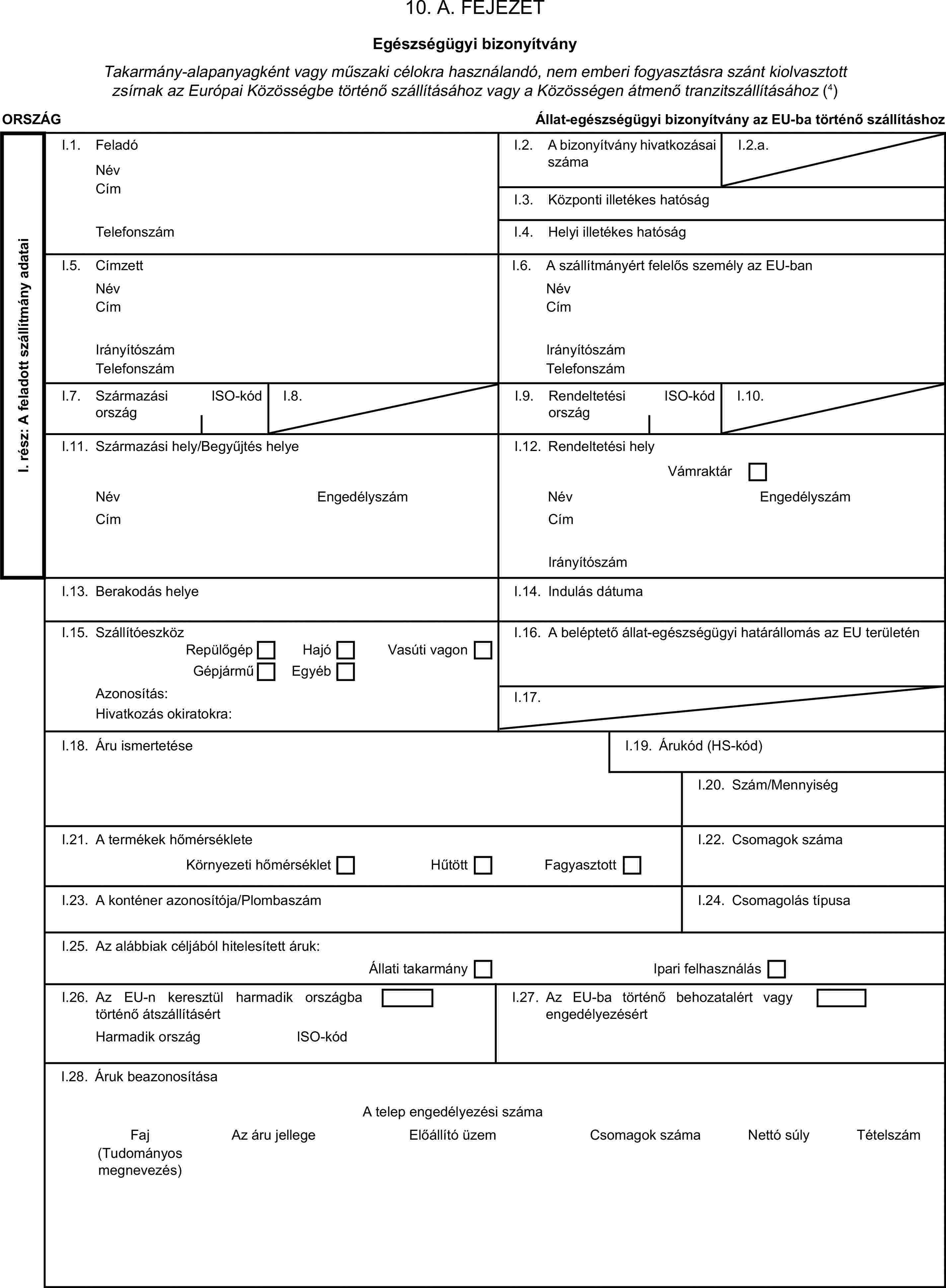 a) a 206/2010/EU rendelet II. mellékletének 1. része;