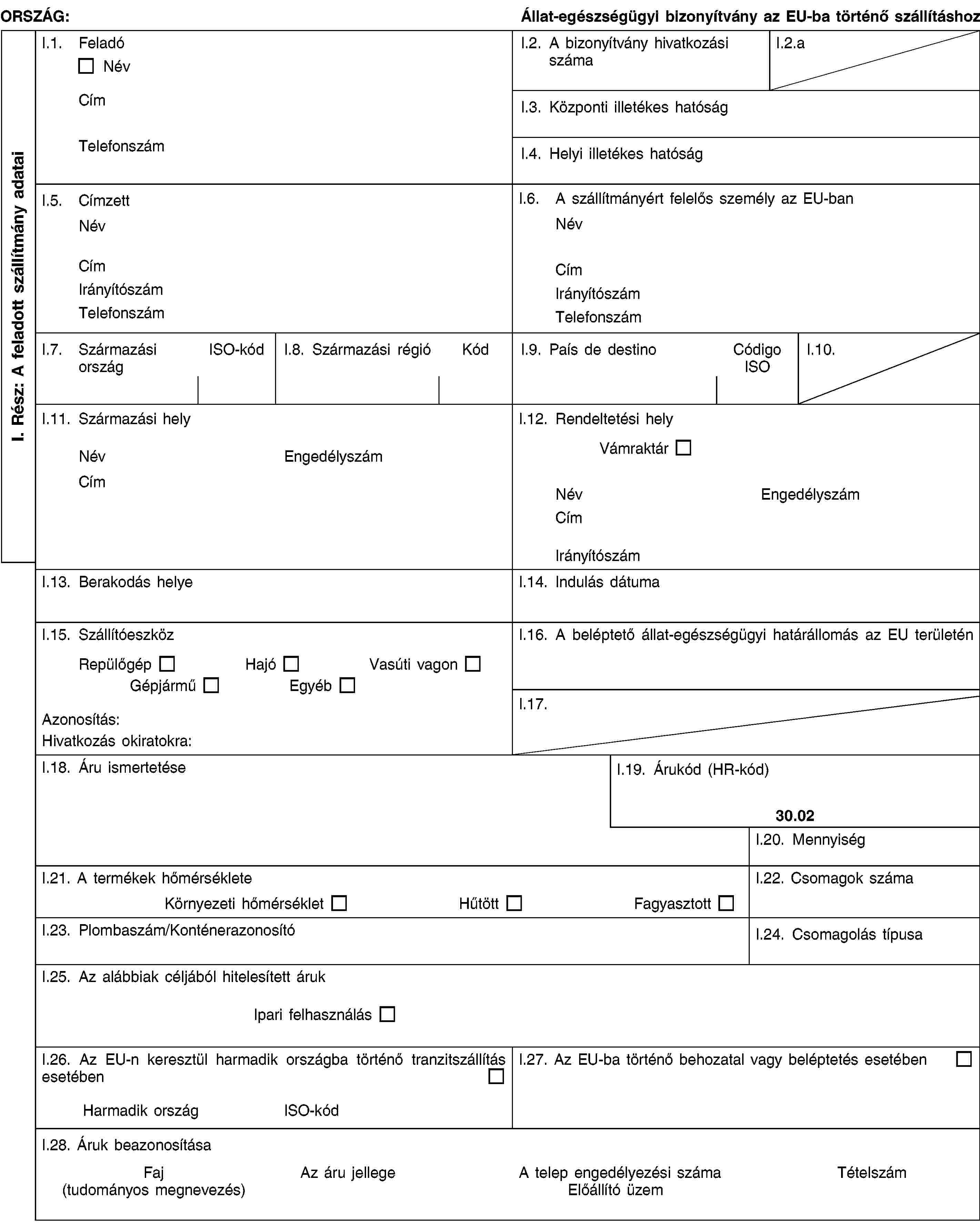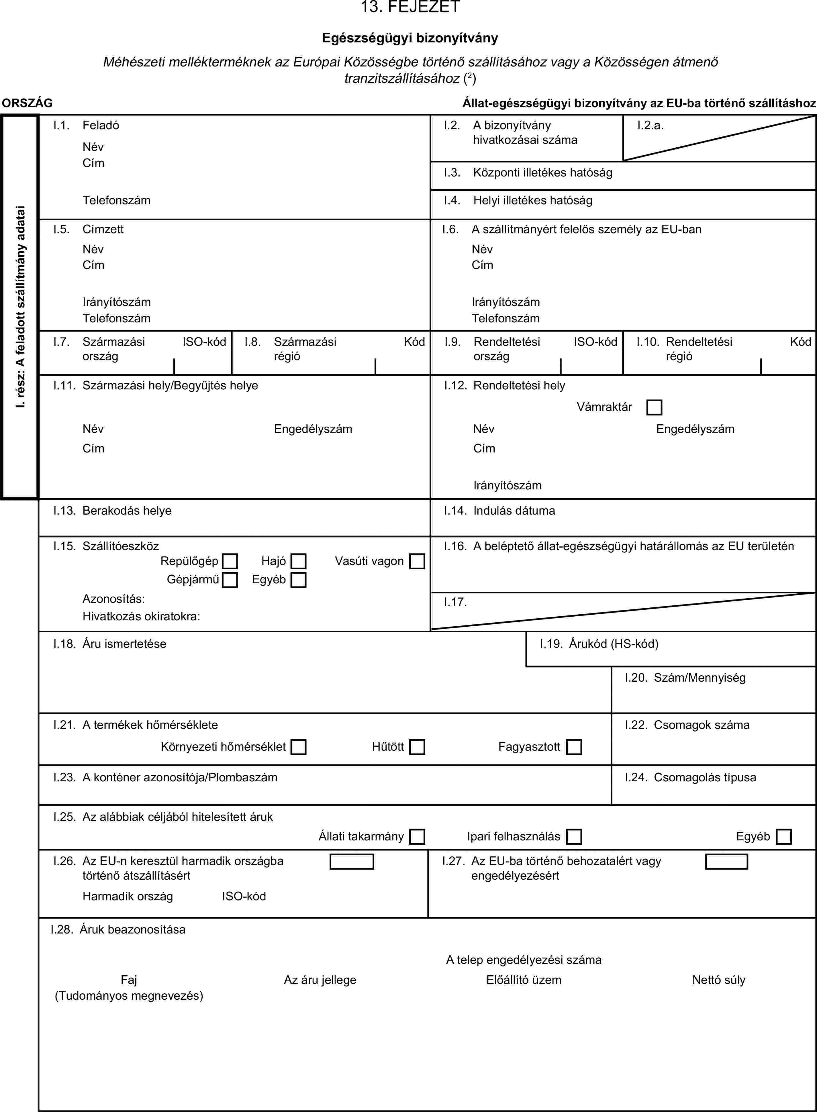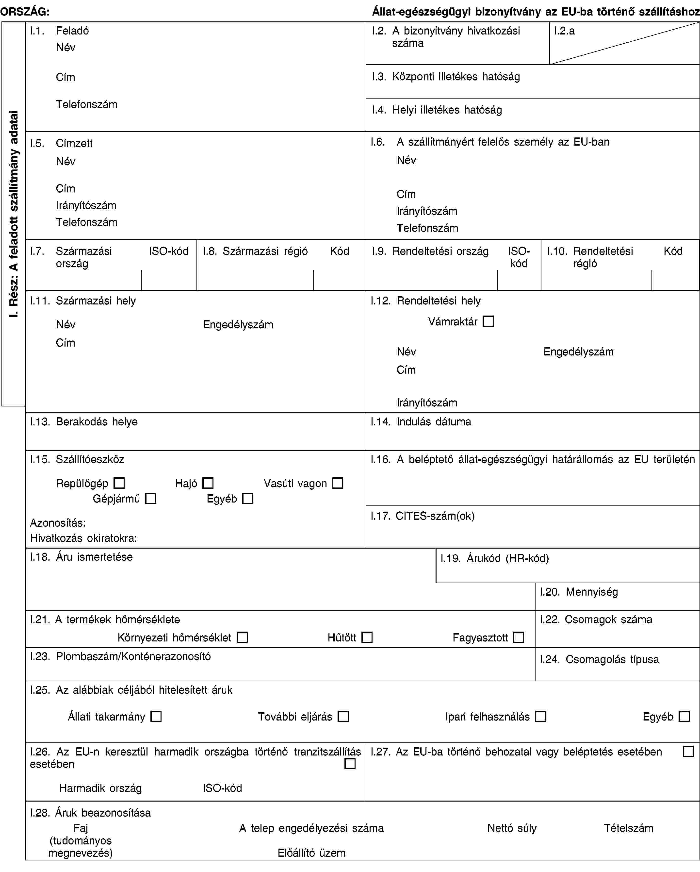 a) a 206/2010/EU rendelet II. mellékletének 1. része;