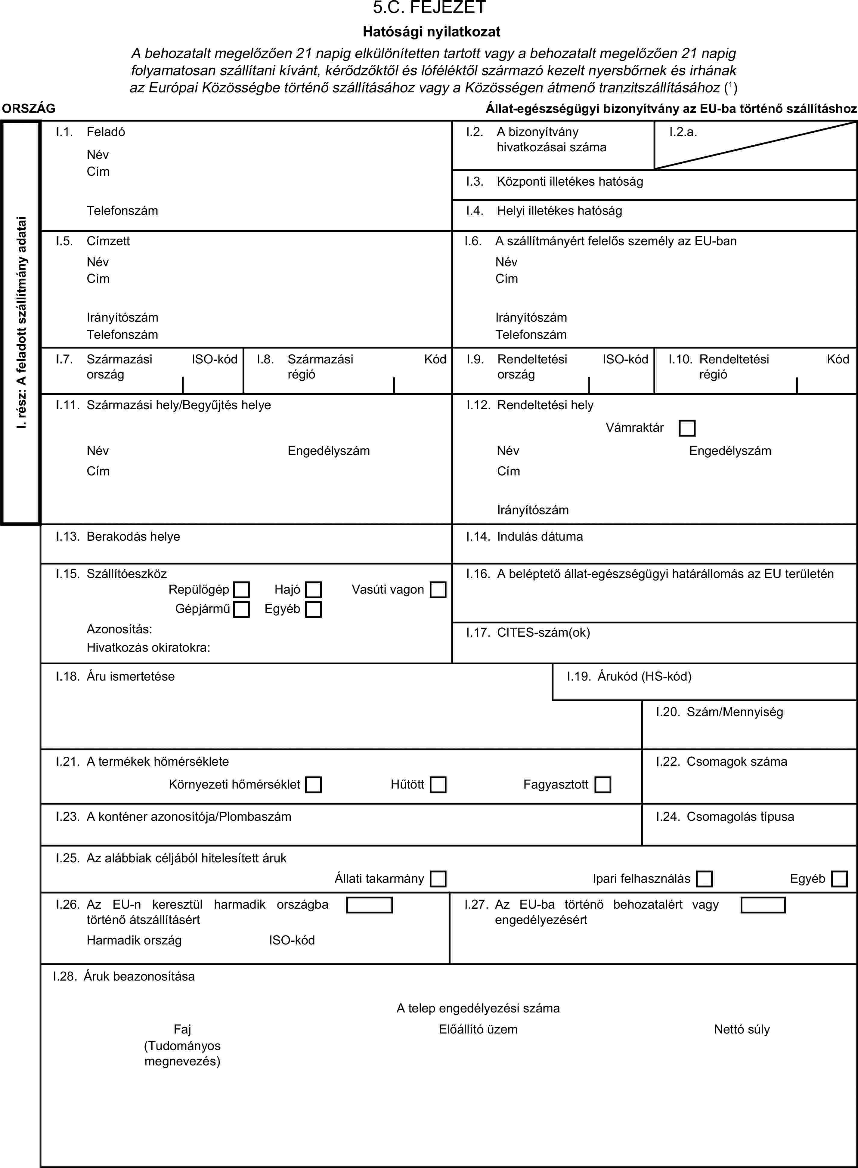 c) A 798/2008/EK rendelet I. mellékletének 1. pontja.