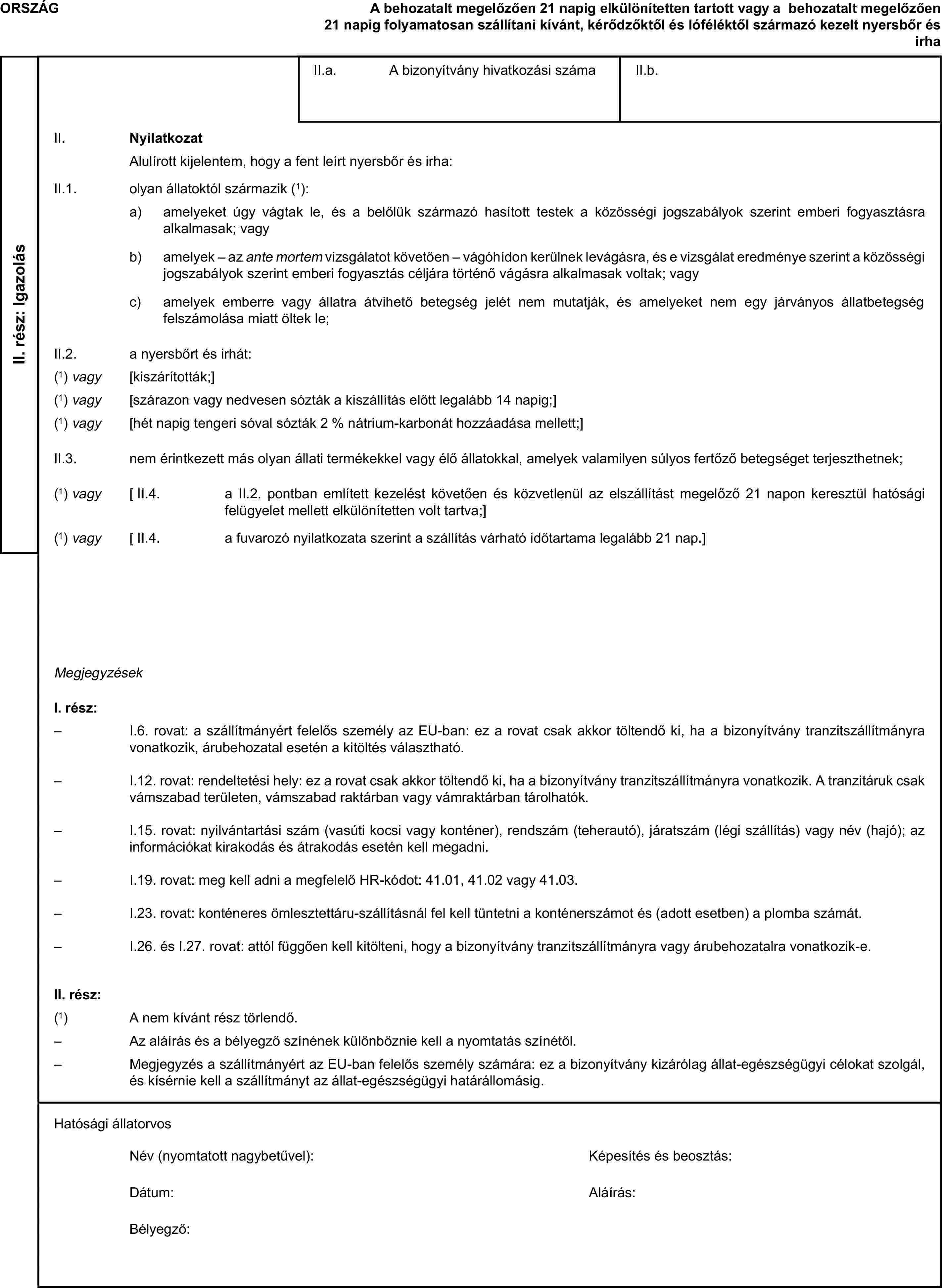 C. A behozatalt megelőzően 21 napig elkülönítetten tartott vagy a behozatalt megelőzően 21 napig folyamatosan szállítani kívánt, kérődzőkből származó, az Európai Unióba történő szállításra szánt kezelt nyersbőrök és irhák tekintetében bármely harmadik ország.