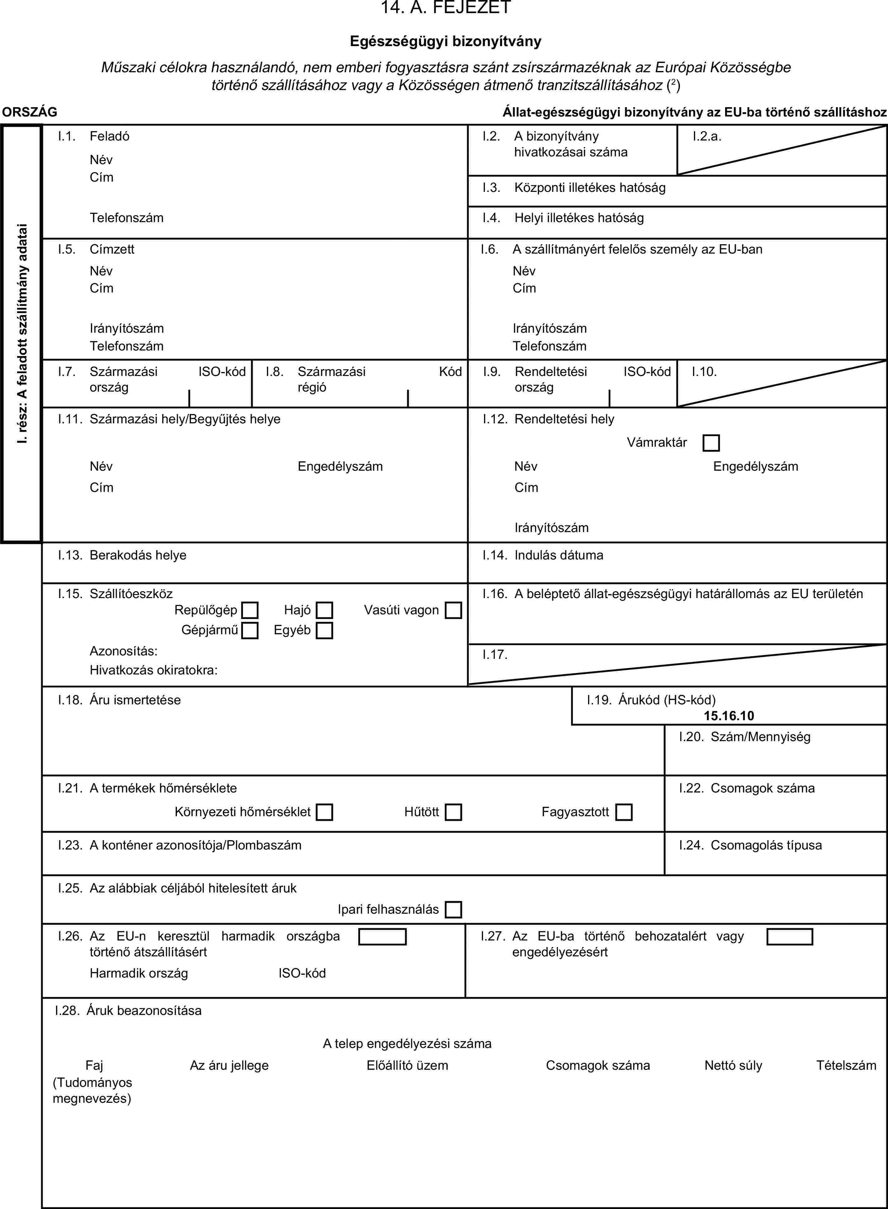 AZ ÁLLATI MELLÉKTERMÉKEK OSZTÁLYOZÁSA, ÖSSZEGYŰJTÉSE, SZÁLLÍTÁSA, ÁRTALMATLANÍTÁSA, FELDOLGOZÁSA, FELHASZNÁLÁSA ÉS KÖZBENSŐ TÁROLÁSA