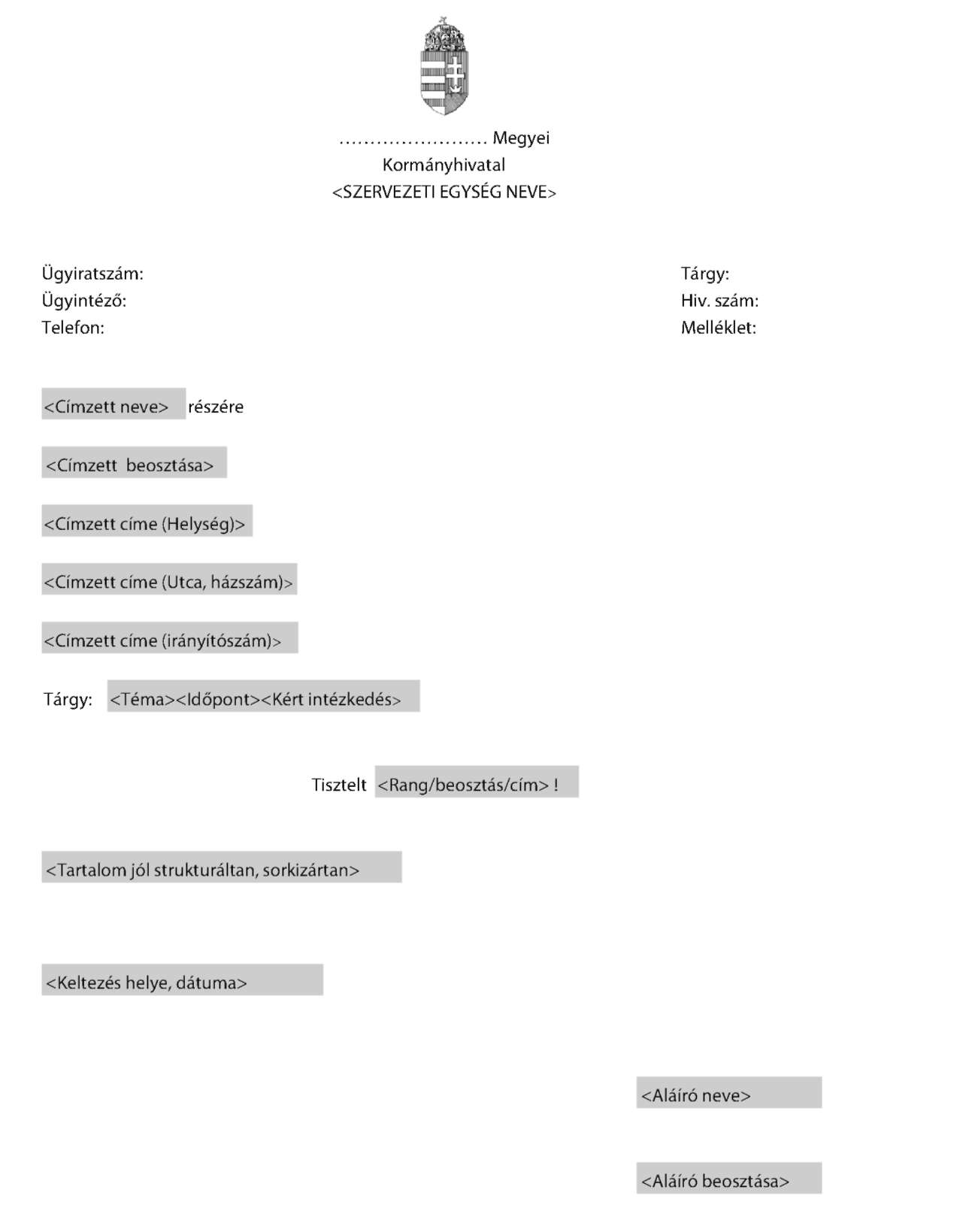 (2) A Kormányhivatal alapadatai a következők: