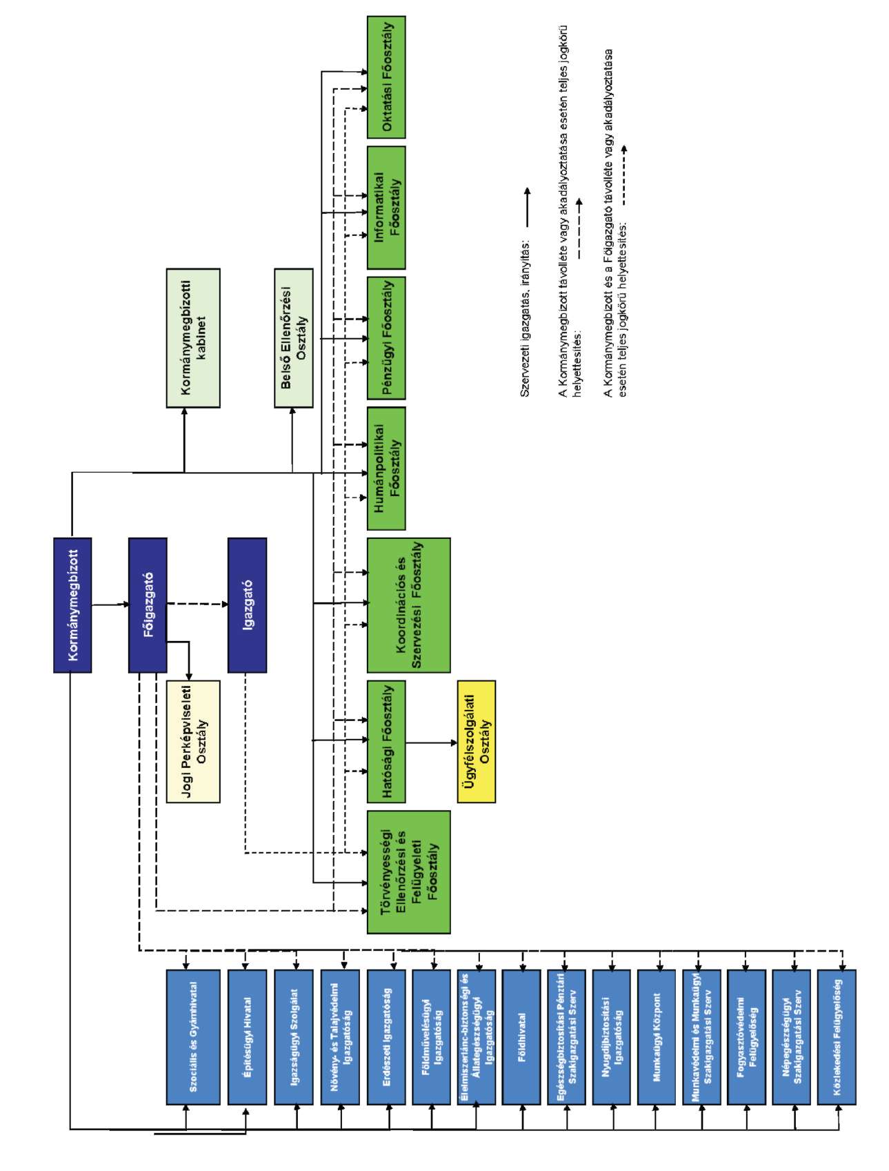 (2) A törzshivatal szervezeti egységei: a főosztályok, valamint az osztály jogállású Kormánymegbízotti Kabinet, a Jogi Perképviseleti Osztály és a Belső Ellenőrzési Osztály. A főosztályok osztályokra tagozódhatnak.