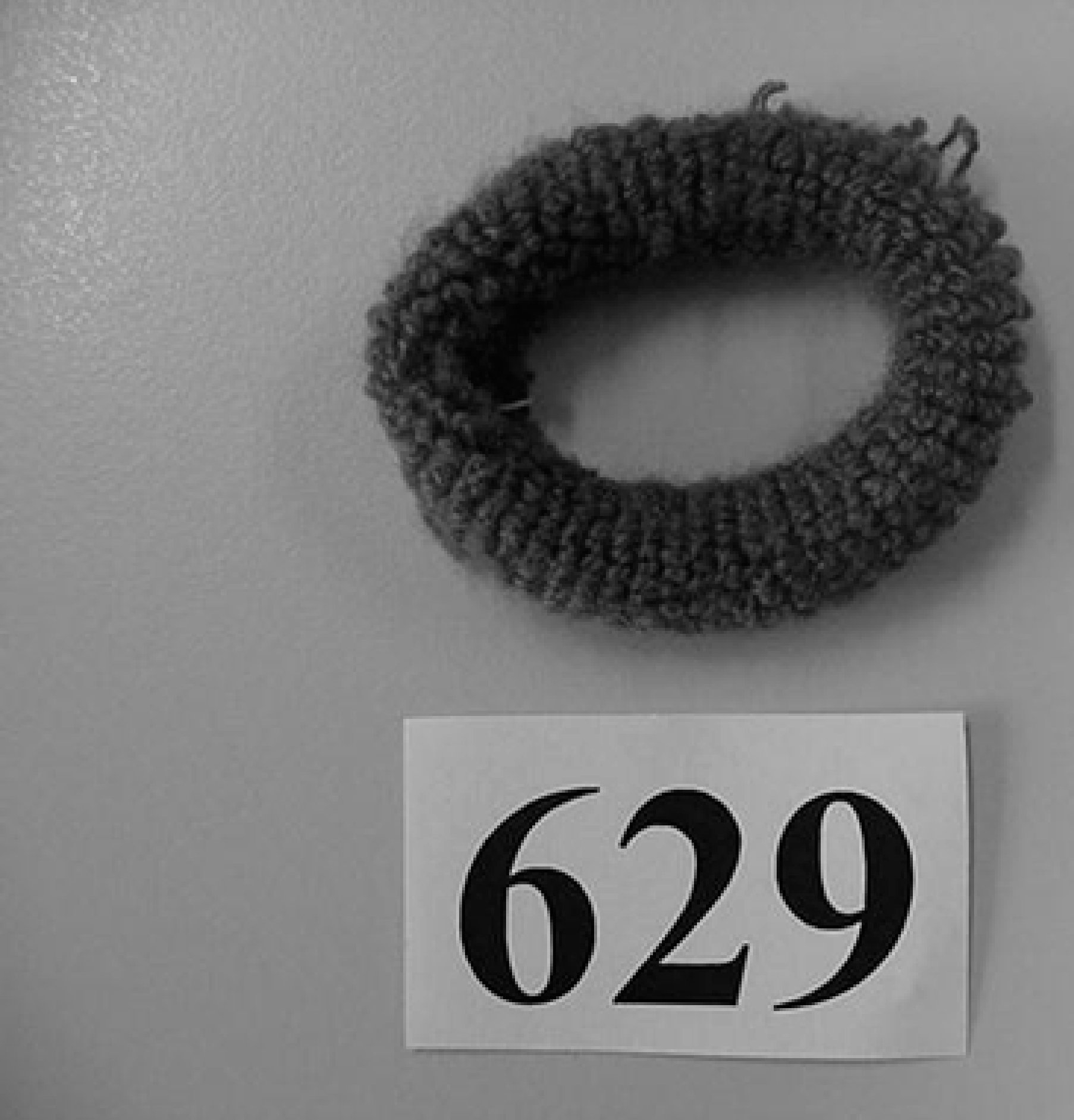 1. Hurok formájú készáru, mely gumiszállal kombinált, mesterséges szálakból hengeresen kötött, hurkolt elasztikus szövetből áll. (hajgumi) (lásd a 629. számú fényképet) (*1) | 6117 80 10 | A besorolást a Kombinált Nómenklatúra 1. és 6. általános értelmezési szabályának rendelkezései, a XI. áruosztályhoz fűzött 7. g) és 10. megjegyzés, valamint a 6117 , 6117 80 és a 6117 80 10 KN-kód megfogalmazása határozza meg. A termék textiljellegét figyelembe véve, konfekcionált ruházati kelléknek és tartozéknak kell tekinteni, hasonlóan pl. a kendőkhöz, sálakhoz, mantillákhoz (körgallérokhoz), nyakkendőkhöz, illetve csokornyakkendőkhöz. A termék 9615 vtsz. alá besorolása kizárt, mivel e vámtarifaszám alá tartozó termékek általában műanyagból, elefántcsontból, csontból, szarvból, teknősbékahéjból, fémből stb. készülnek. Lásd a HR Vámtarifa Magyarázat 9615 vámtarifaszámhoz tartozó magyarázatának (3) pontját. Ezenkívül a XI. áruosztályhoz fűzött 10. megjegyzés kifejezetten megállapítja, hogy a gumiszállal kombinált textilanyagból készült elasztikus termékeket a XI. áruosztályba kell sorolni. |