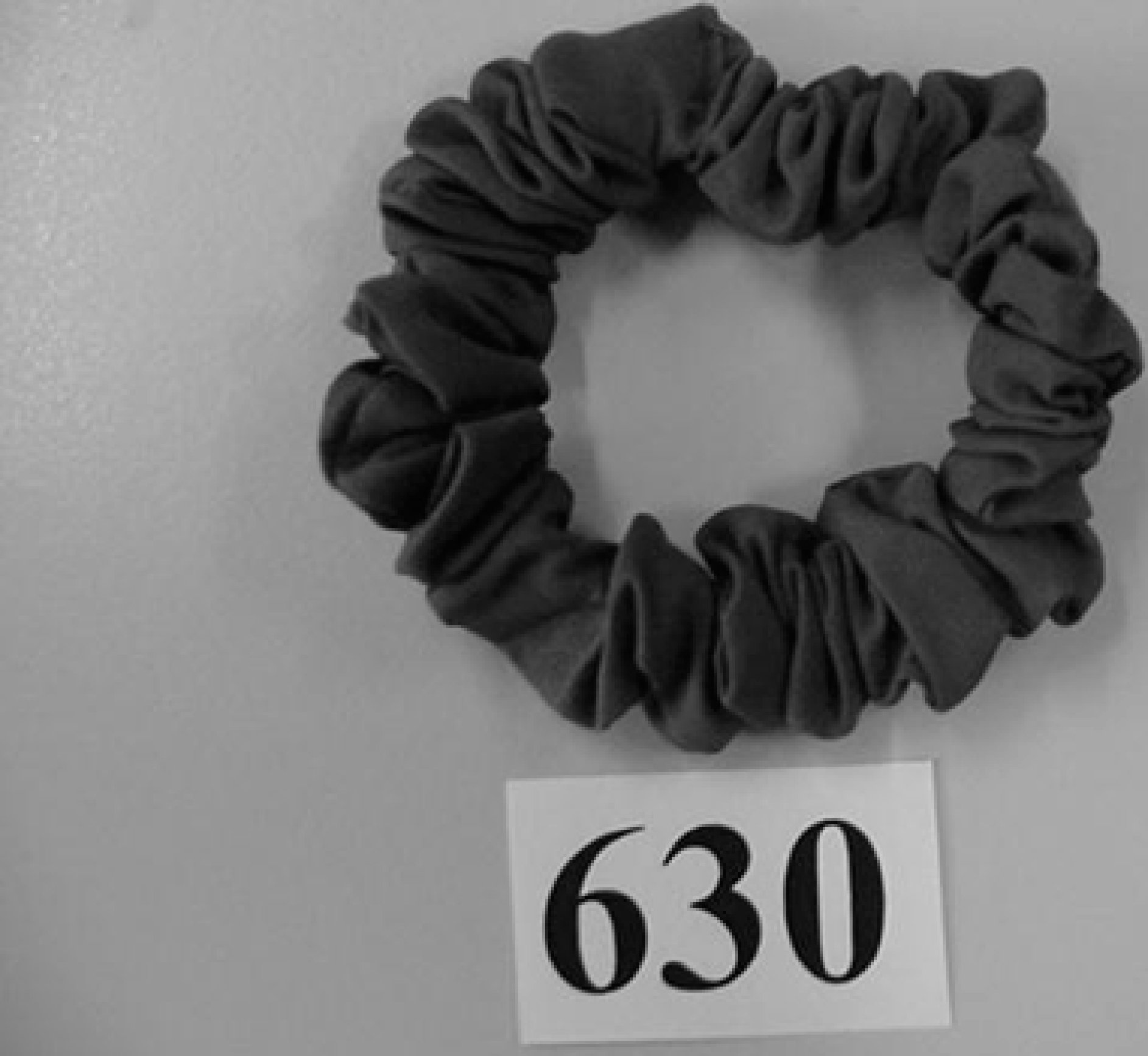 2. Hurok formára varrt készáru, mely mesterséges szálakból szőtt textilszövettel teljesen bevont gumírozott pántból áll. (hajgumi) (lásd a 630. számú fényképet) (*1) | 6217 10 00 | A besorolást a Kombinált Nómenklatúra 1. és 6. általános értelmezési szabályának rendelkezései, a XI. áruosztályhoz fűzött 7. f) megjegyzés, valamint a 6217 és a 6217 10 00 KN-kód megfogalmazása határozza meg. A terméket textiljellegére tekintettel konfekcionált ruházati kelléknek és tartozéknak kell tekinteni, hasonlóan pl. a kendőkhöz, sálakhoz, man-tillákhoz (körgallérokhoz), nyakkendőkhöz, illetve csokornyakkendőkhöz, ami jelen esetben máshol nincs pontosabban meghatározva vagy feltüntetve. A termék 9615 vtsz. alá történő besorolása kizárt, mivel e vámtarifaszám alá tartozó termékek általában műanyagból, elefántcsontból, csontból, szarvból, teknősbékahéjból, fémből stb. készülnek. Lásd a HR Vámtarifa Magyarázat 9615 vámtarifaszámhoz tartozó magyarázatának (3) pontját. |