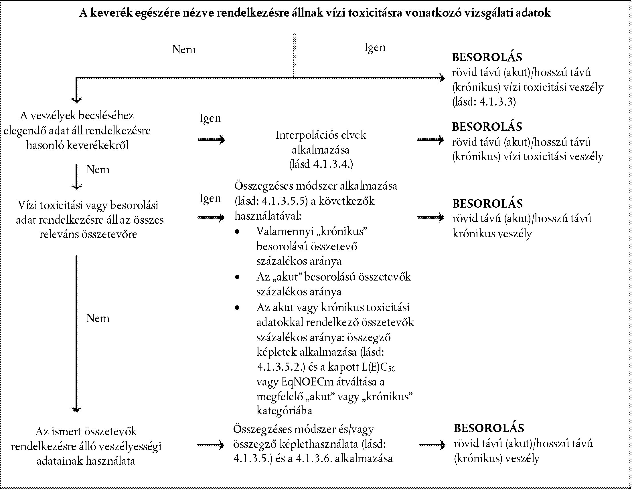 ( 5 ) Amennyiben a keverékek olyan összetevőket tartalmaznak, amelyekre nincsenek akut toxicitási adatok minden expozíciós útvonalra, akkor a rendelkezésre álló adatokból extrapolálni lehet a vonatkozó becsült akut toxicitási értékeket, és azokat lehet a megfelelő útvonalakra alkalmazni (lásd a 3.1.3.2. szakaszt). Ugyanakkor egyedi jogszabályok előírhatják a bevizsgálást egy adott útvonalra. Ezekben az esetekben a besorolást arra az útvonalra az adott jogszabályban foglalt követelmények szerint kell elvégezni.