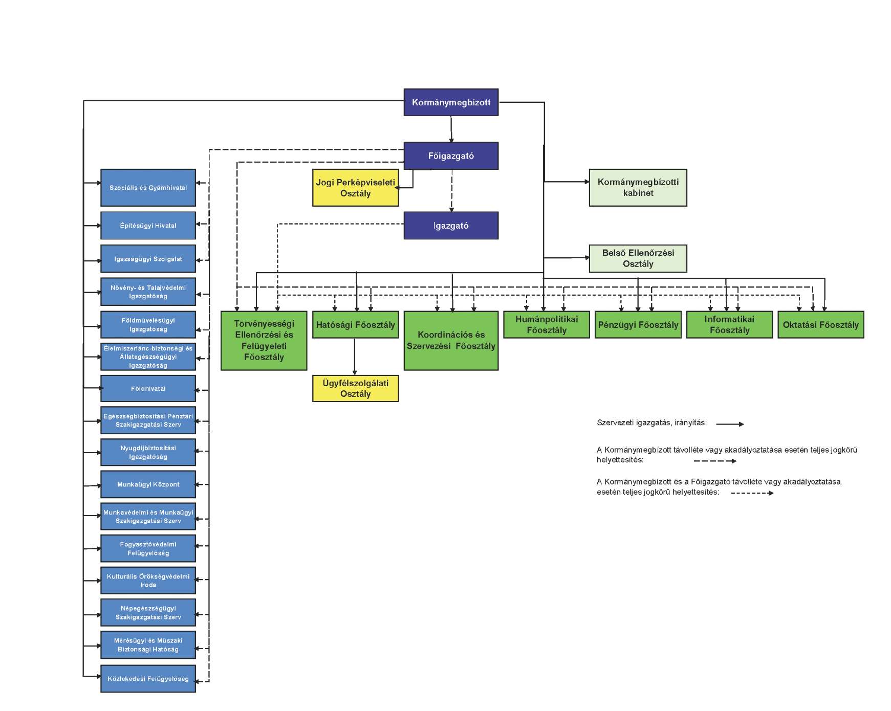 (2) A törzshivatal szervezeti egységei: a főosztályok, valamint az osztály jogállású Kormánymegbízotti Kabinet, a Jogi Perképviseleti Osztály és a Belső Ellenőrzési Osztály. A főosztályok osztályokra tagozódhatnak.