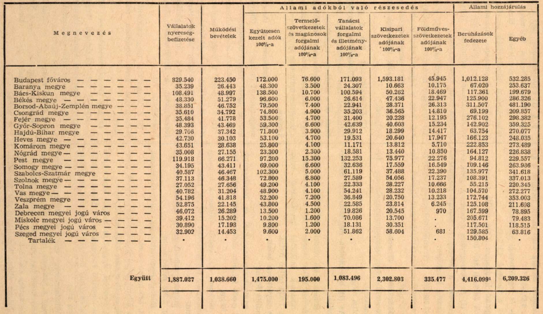 a) a tanácsok alá rendelt vállalatok nyereségbefizetésének teljes összege 1.887 millió forint,