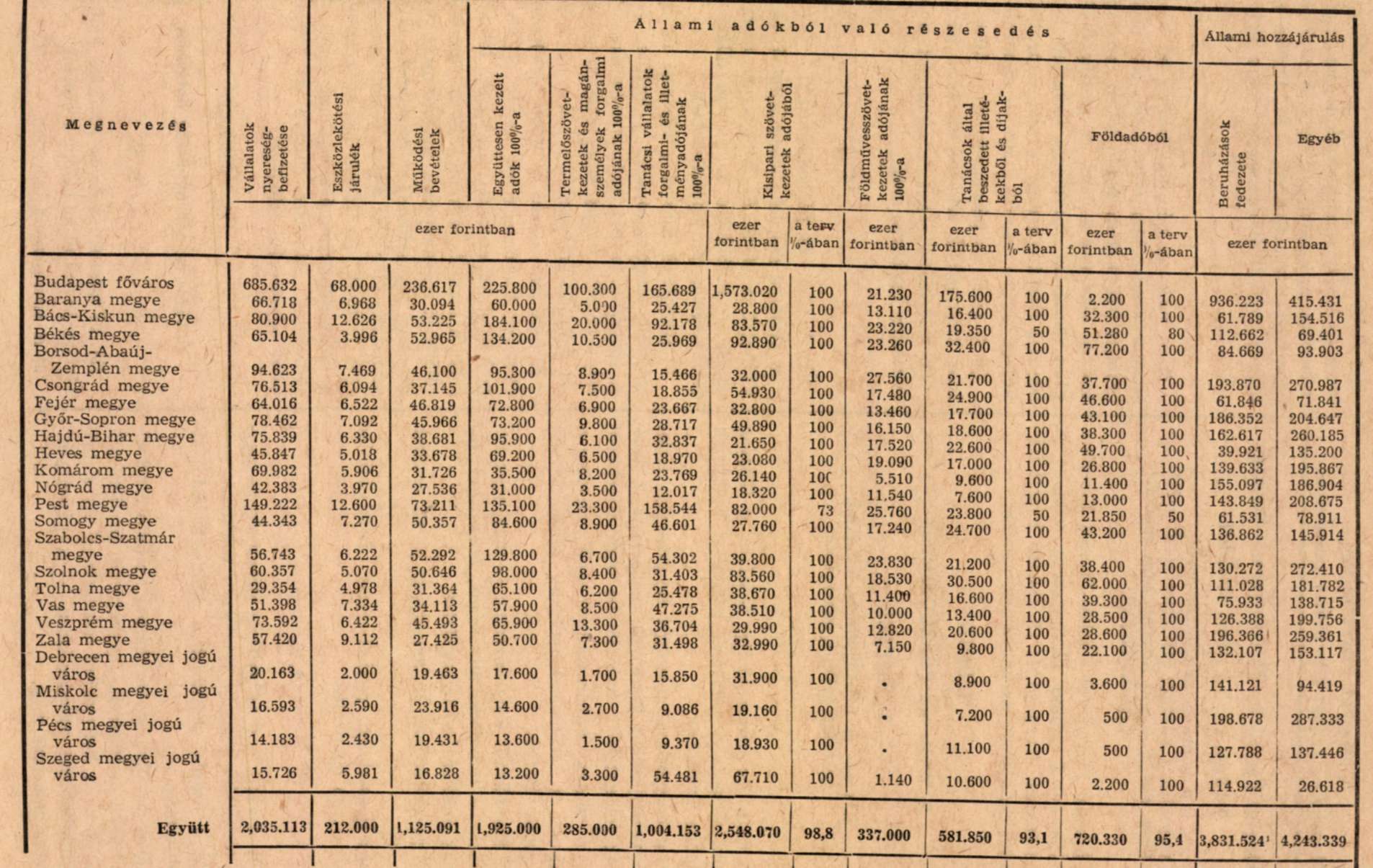 a) a tanácsok alá rendelt vállalatok nyereség-befizetésének teljes összege, 2.035 millió forint,