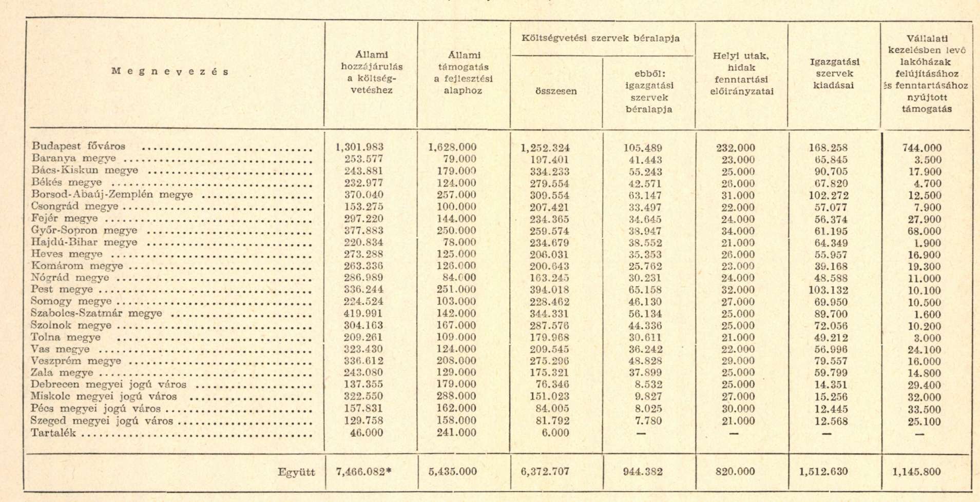 10. § A költségvetéshez megállapított állam hozzájárulást és kötelező előirányzatokat, valamint a tanácsok fejlesztési alapjához nyújtott állami támogatást fővárosi, megyei, megyei jogú városi tanácsok szerint részletezetten a törvény 1. számú melléklete határozza meg.