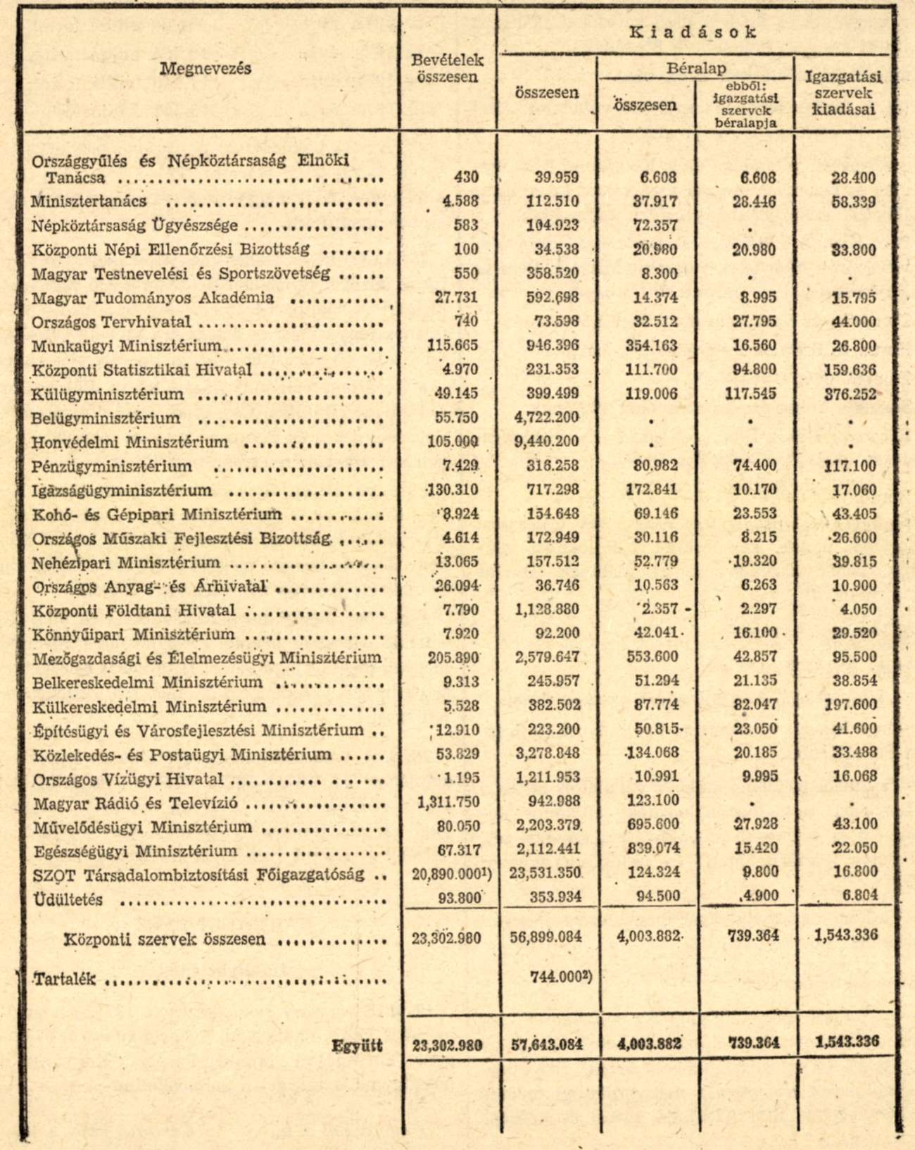 - az e törvényben meghatározott bevételek beszedését és a kiadások teljesítéséhez szükséges pénzellátást a népgazdaság érdekeinek megfelelően szabályozza;